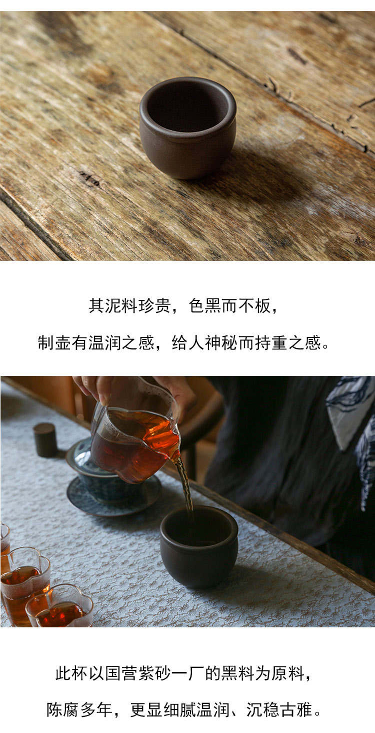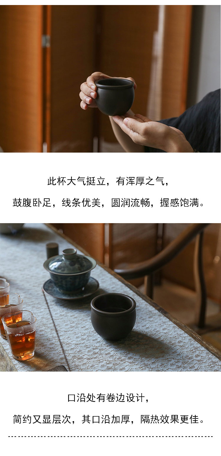 茶香记 紫砂早期厂版黑料鼓缸杯主人杯180ml神秘古雅大气圆融茶杯