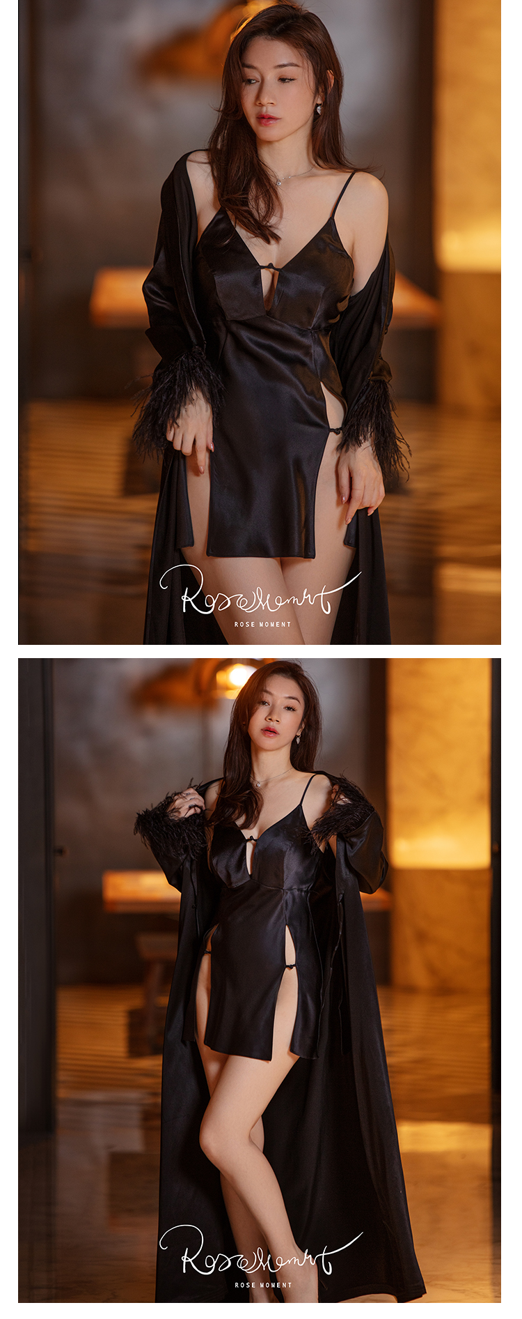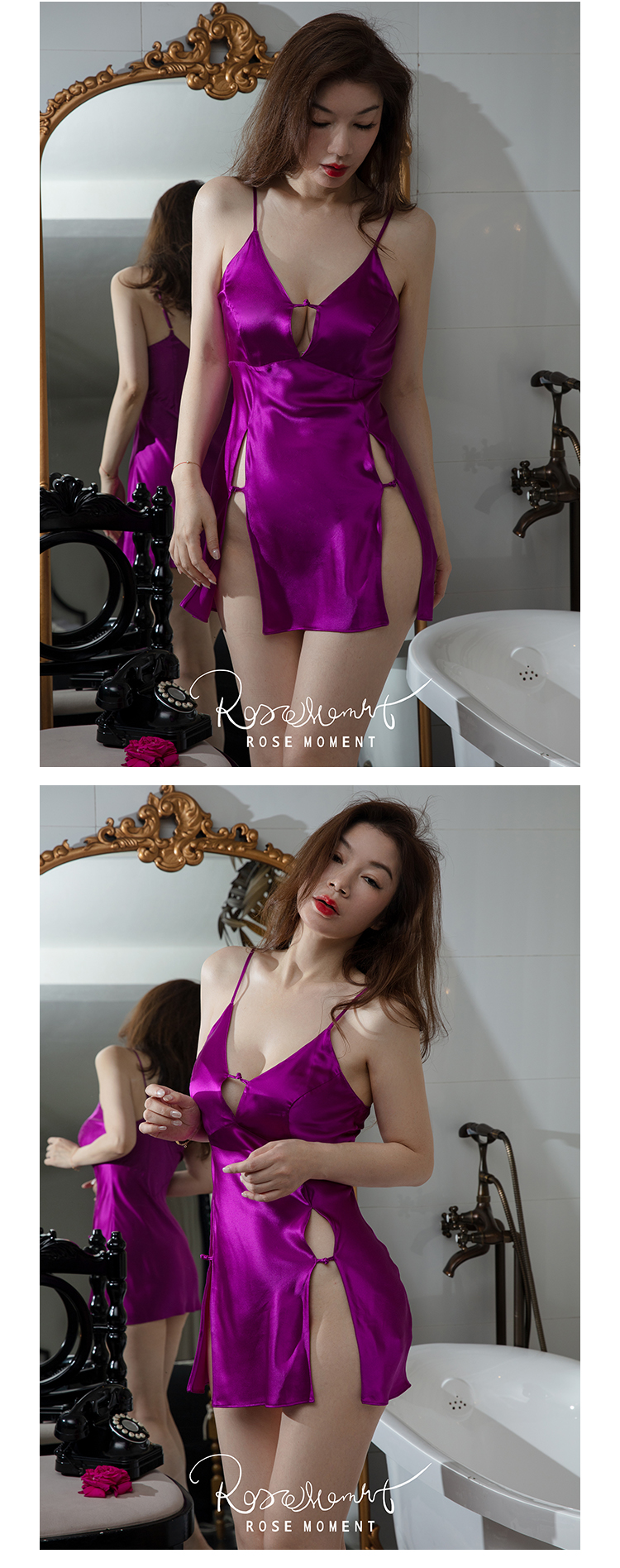 性感魅惑高级比月色还撩人的真丝开叉中裙 A230506