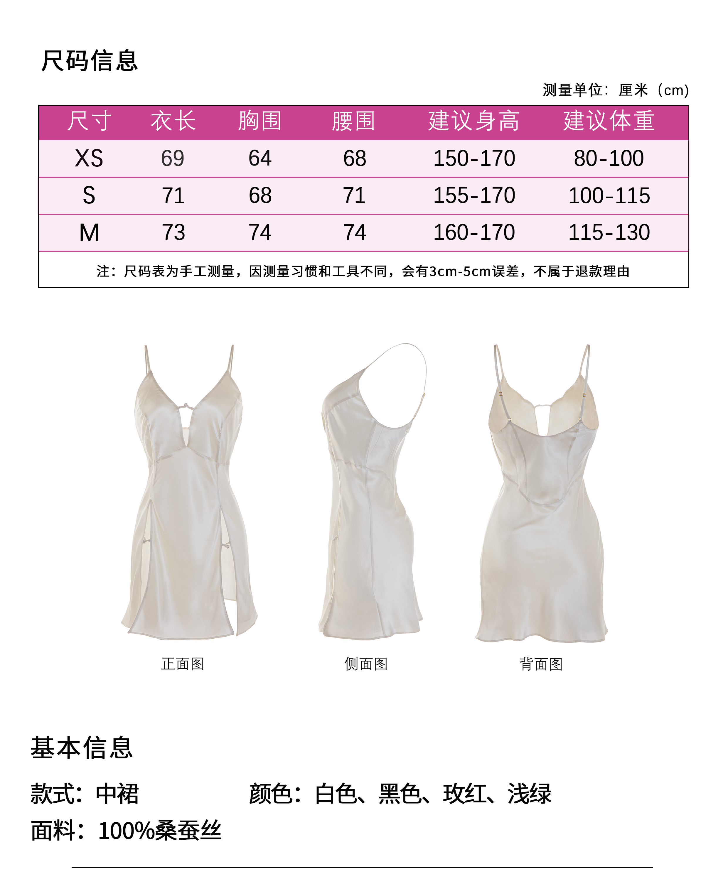 可插杯垫真丝中款吊裙 A250312