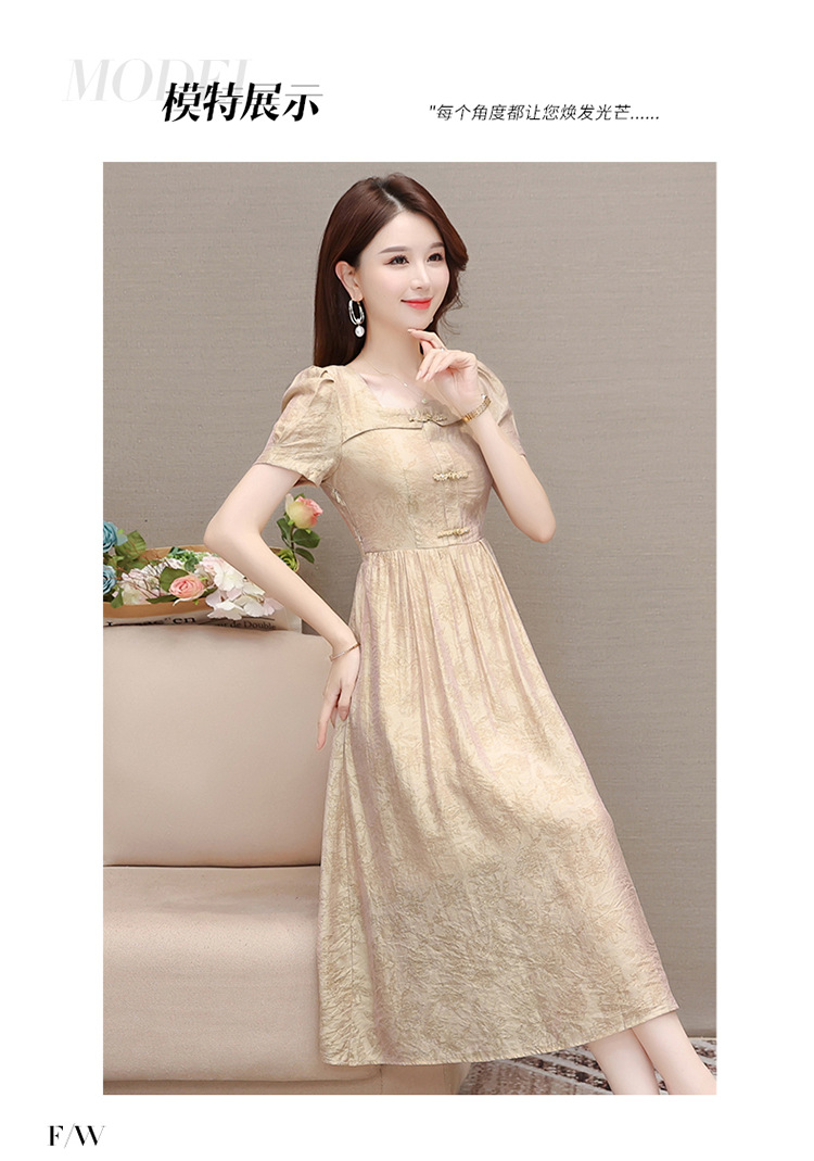 QYM LZC2368-Y复古旗袍裙改良印花连衣裙时尚高腰裙