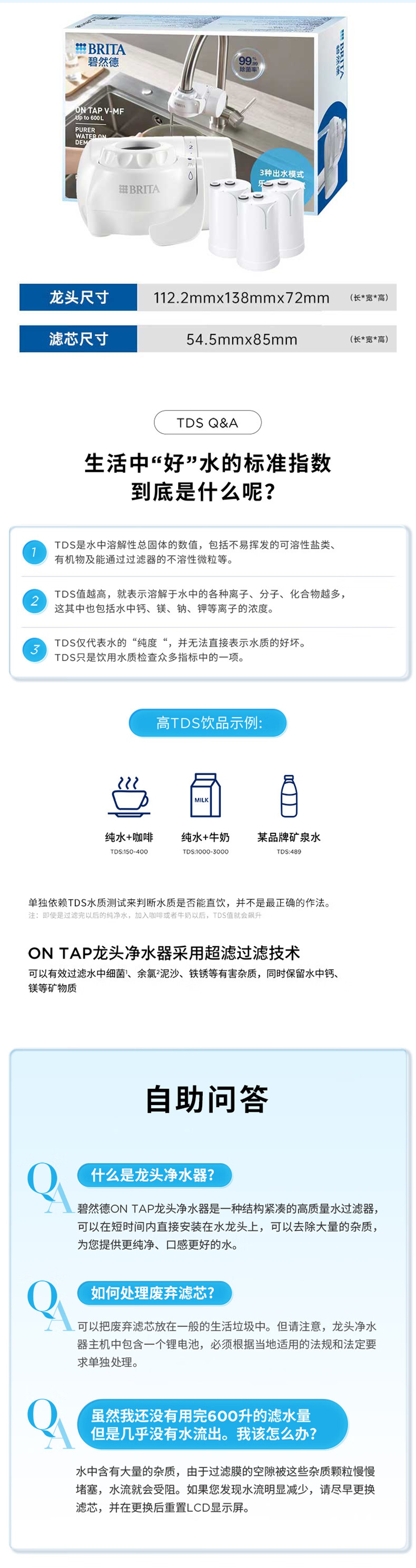 【BRITA碧然德】On Tap MF型龙头净水器1机3芯套装