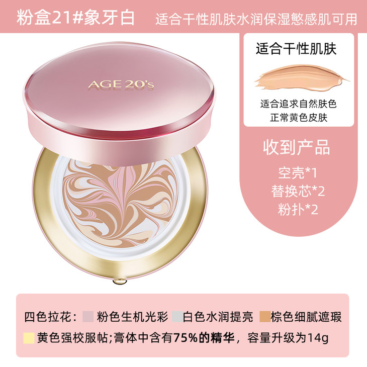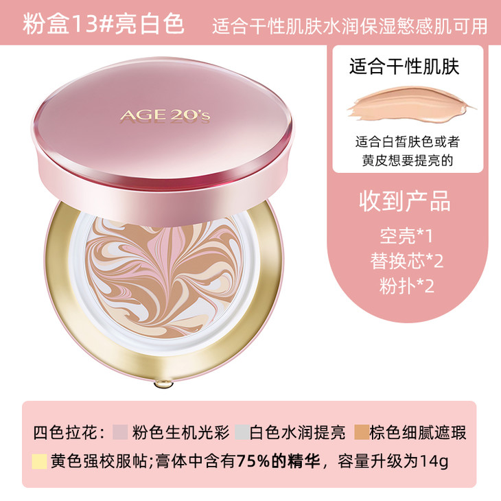👑爱敬四色拉花气垫粉金 👍“水润大师”💁——四色拉花粉金款💖。自然水润,富含高能水光精粹和7中玻尿酸💧,注入了许多的水感能量,干皮的救星啊😍!简直是无懈可击,为你打造少女感满满的水光肌😚。有75%的精华和镇静肌肤的自然成分,美肤养肤二合一😆。加强保湿更服帖,粉质超级细腻贴合,🍀不脱妆不卡粉,还能提亮肤色。👉粉金款适合干性肌肤。 #13:亮白色,适合白皙皮肤 #21:象牙白,适合黄白皮肤 #23:自然色,适合暗黄偏黑肌肤