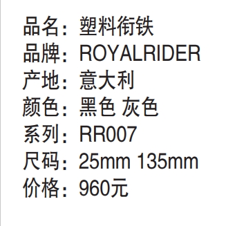 意大利精湛的制作工艺、创新的塑料材质以及 ROYALRIDER 在马术装备领域积累的卓越品牌声誉,共同赋予了这款衔铁无与伦比的品质和独特魅力。它不仅是一个衔铁,更是骑手与马匹在马术运动中沟通的重要工具,陪伴骑手度过每一次难忘的骑行时光,为骑手的马术之旅增添光彩。选择这款衔铁,就是选择对自己马术梦想的极致追求,开启专业、精彩的马术体验,是极具价值的明智之选。