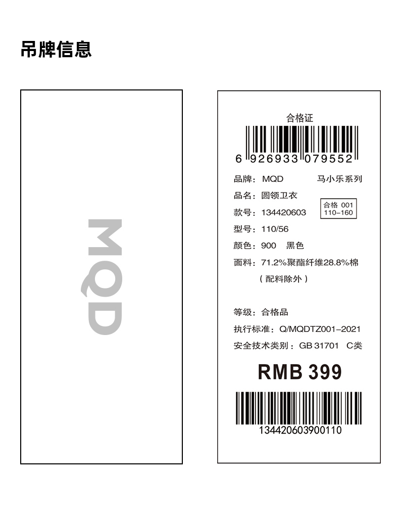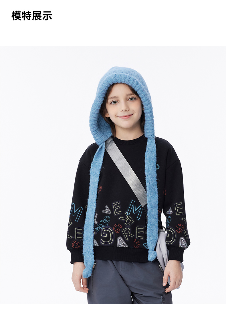 【秒3】【MQD】男童冬季潮酷字母保暖舒适休闲圆领卫衣