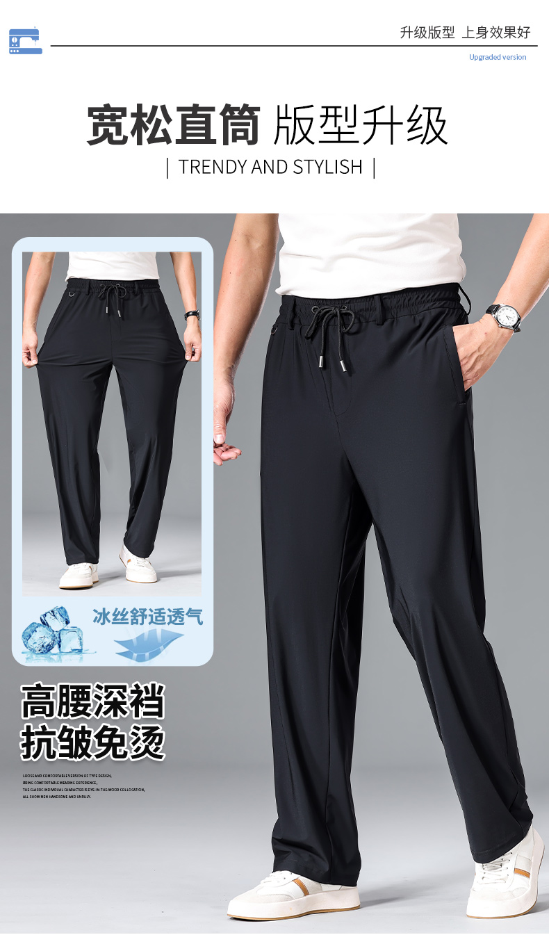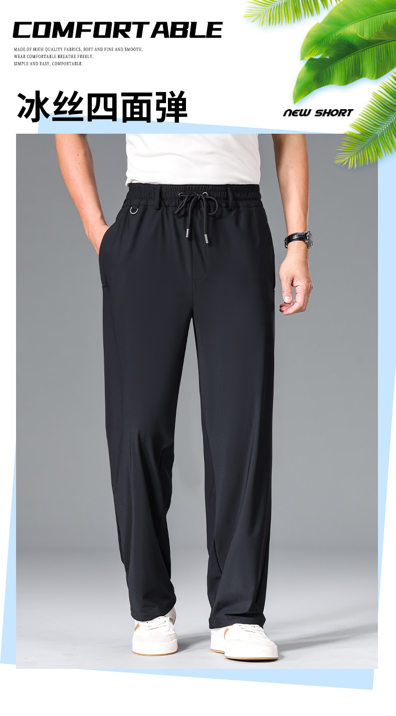 【DZP】大依优型大码男装冰丝休闲裤运动直筒加肥加大薄款裤子大号胖子