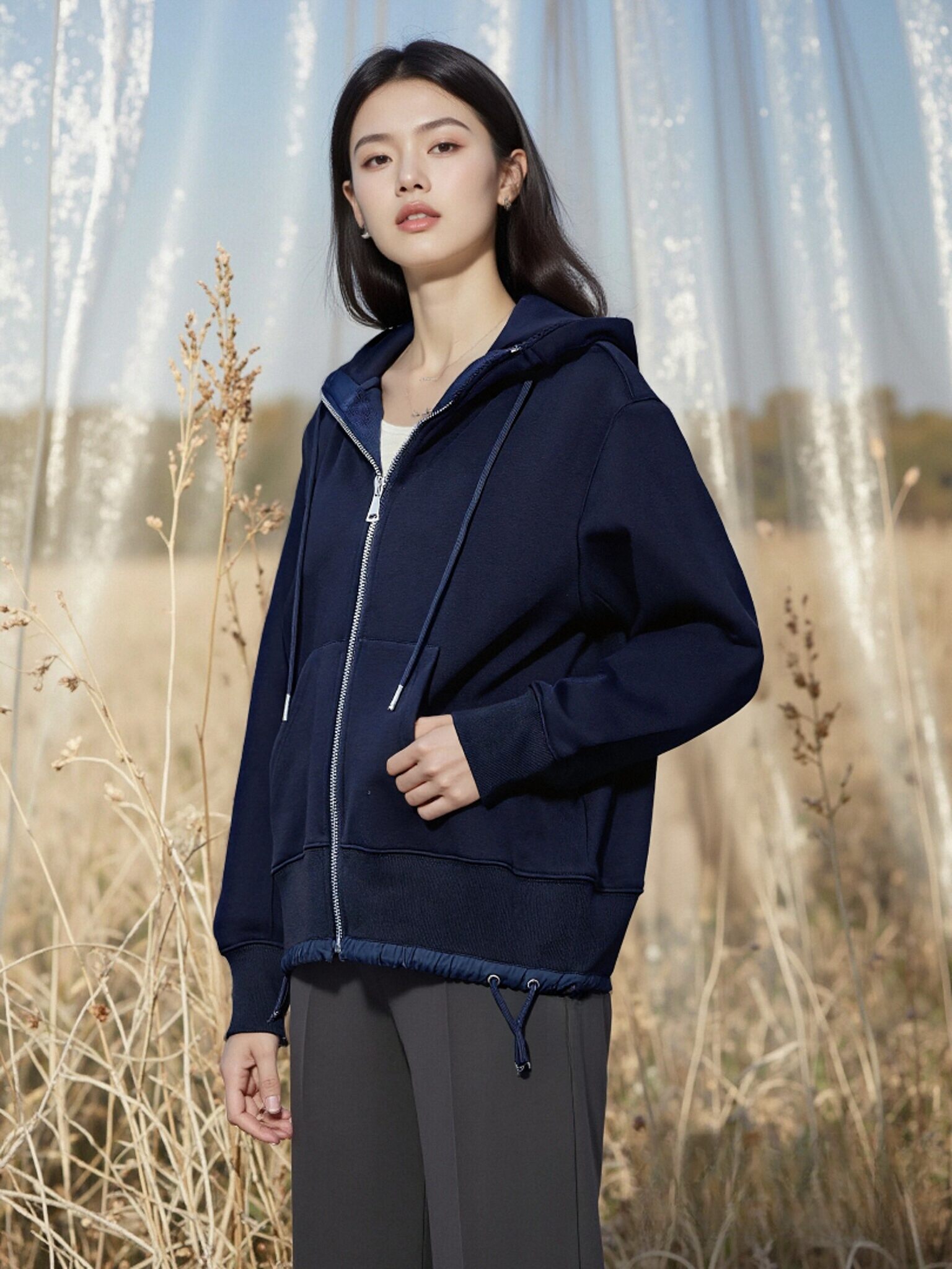 特卖!重磅品质!!【外套】宽螺纹连帽下摆抽绳卫衣外套-喜出