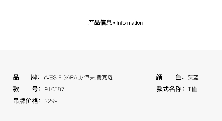 YvesFigarau伊夫·费嘉罗夏季新款舒适透气短袖休闲T恤910887