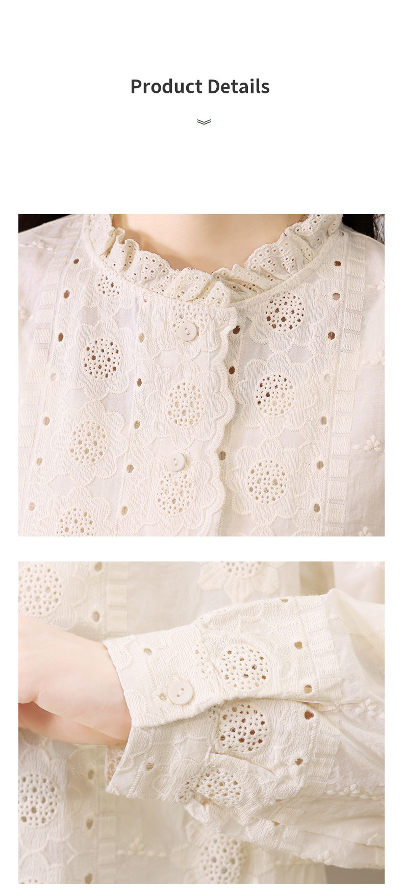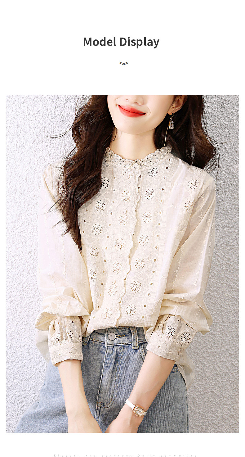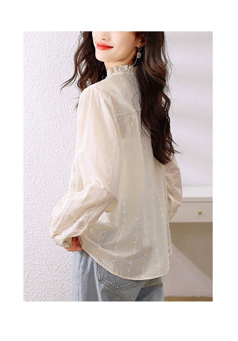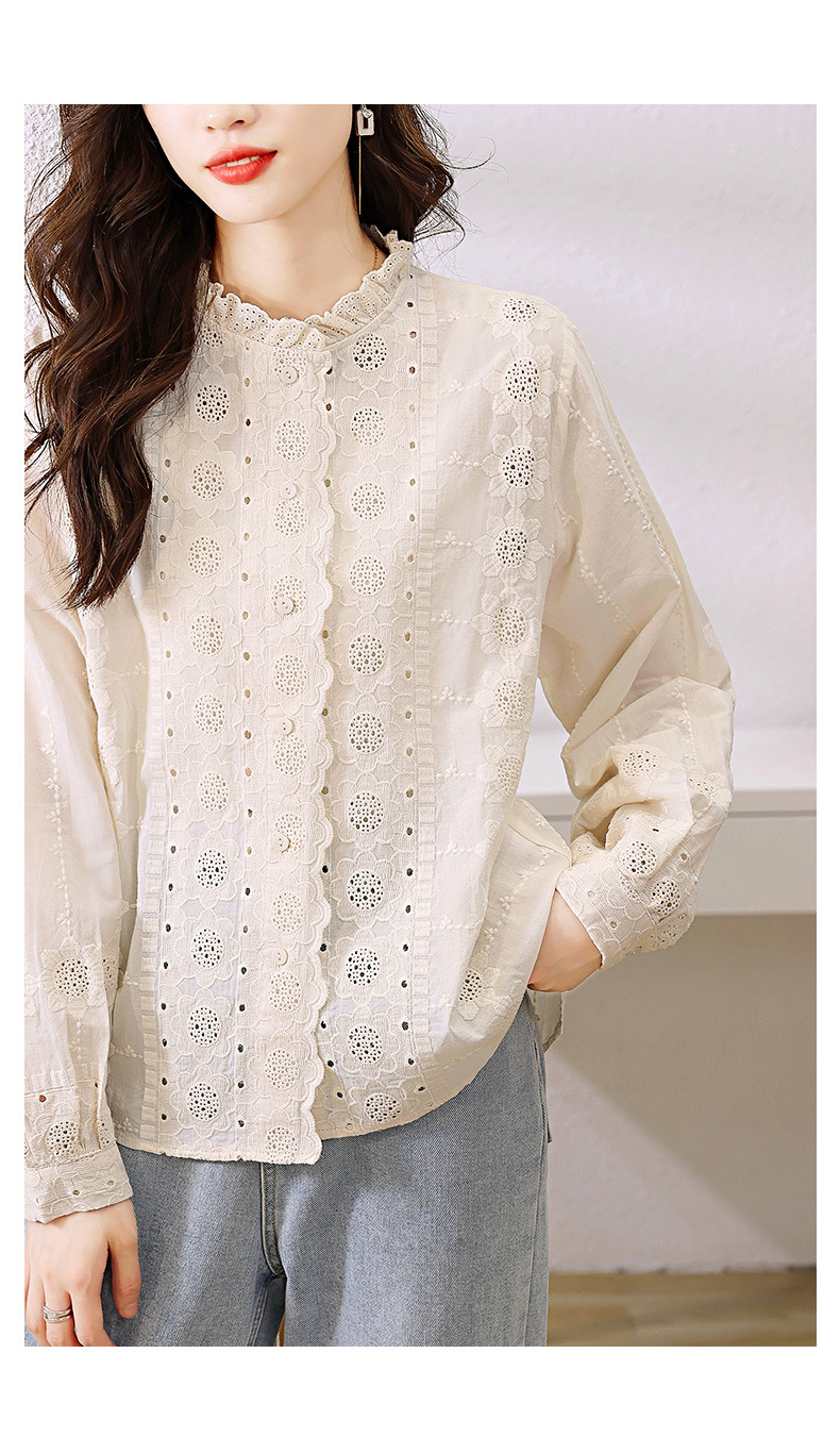 "雀说 春装蕾丝花边领杏色衬衫女刺绣花衬衣上衣4ZF- 021503"