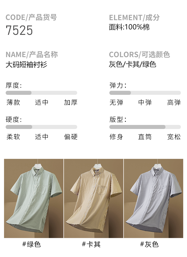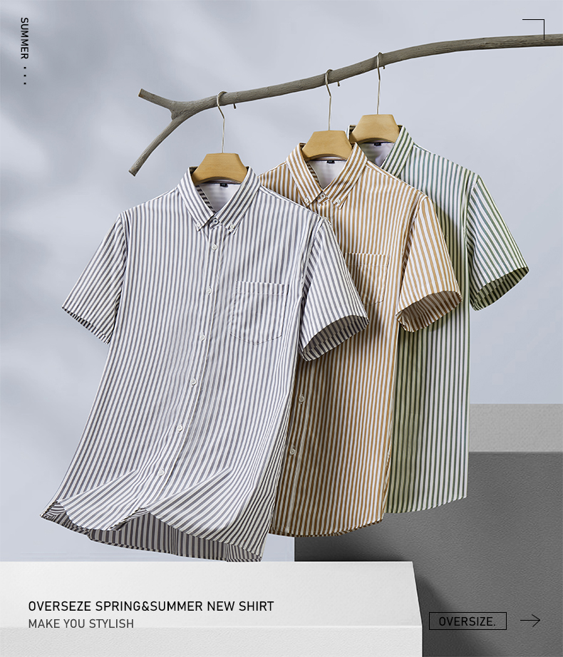 【100%棉】【DM】大依优型大码短袖衬衫加肥加大棉质半袖衬衣男夏季薄款胖子休闲宽松上衣