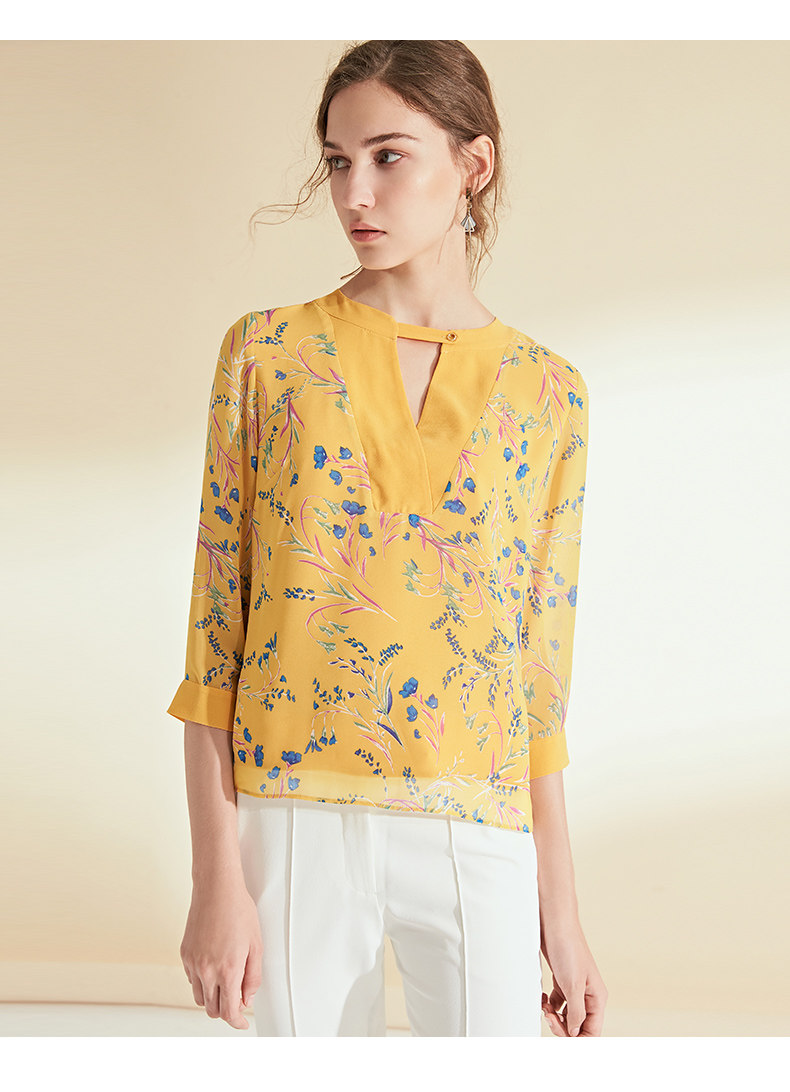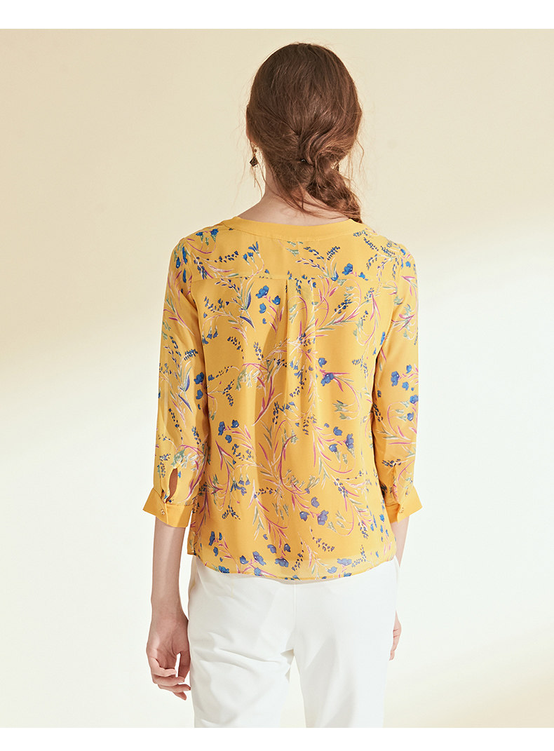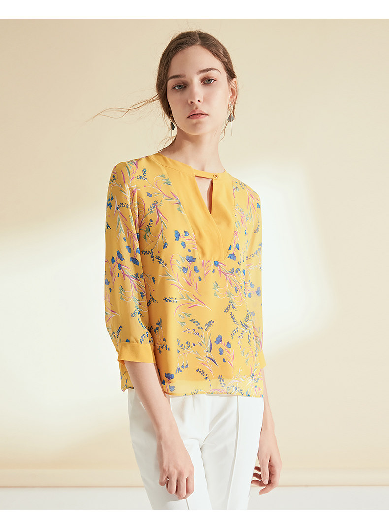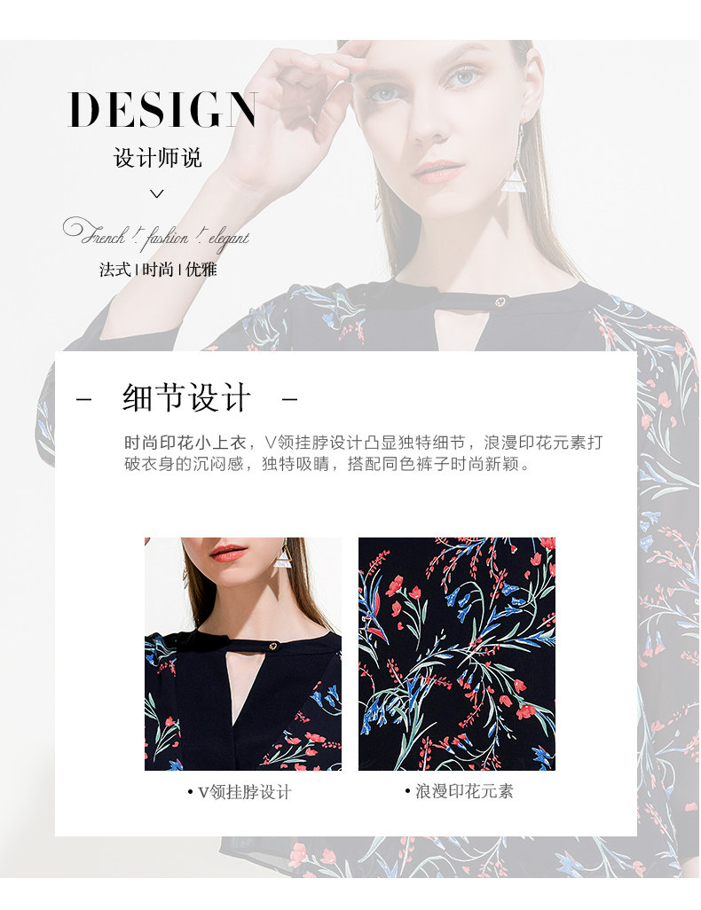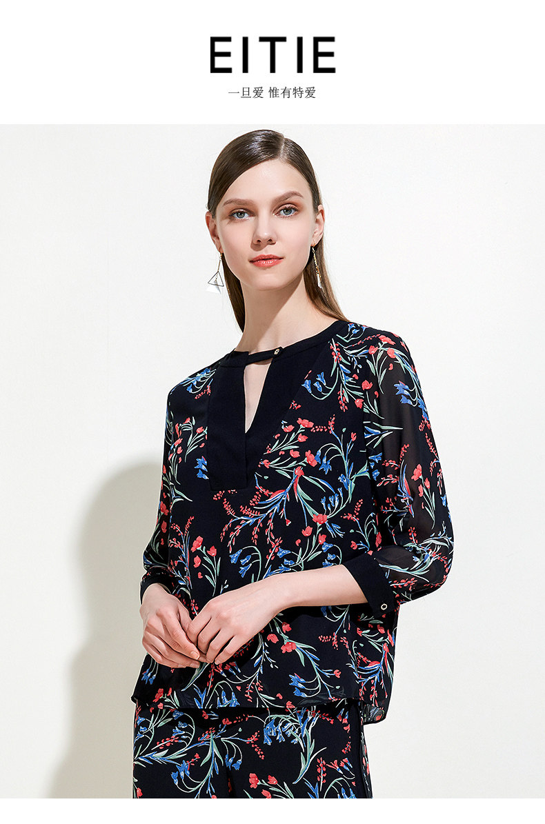 EITIE爱特爱女装春夏季V领七分袖很仙的文艺时尚印花小上衣5913609