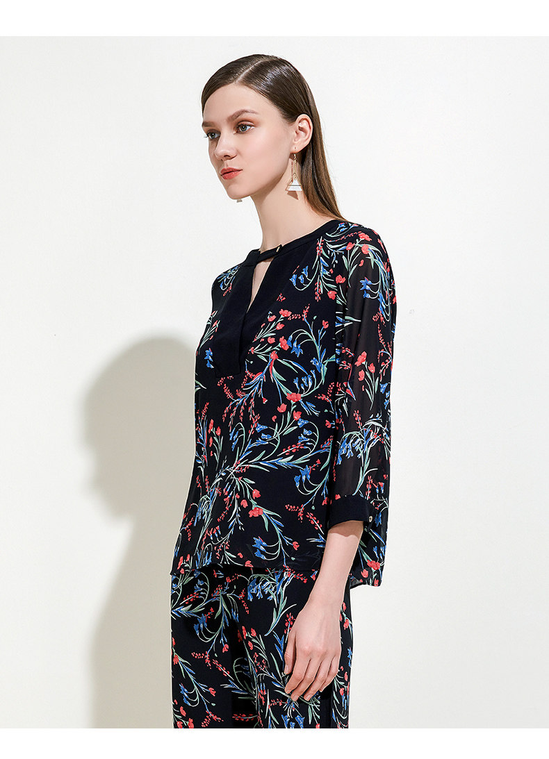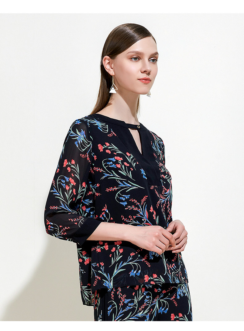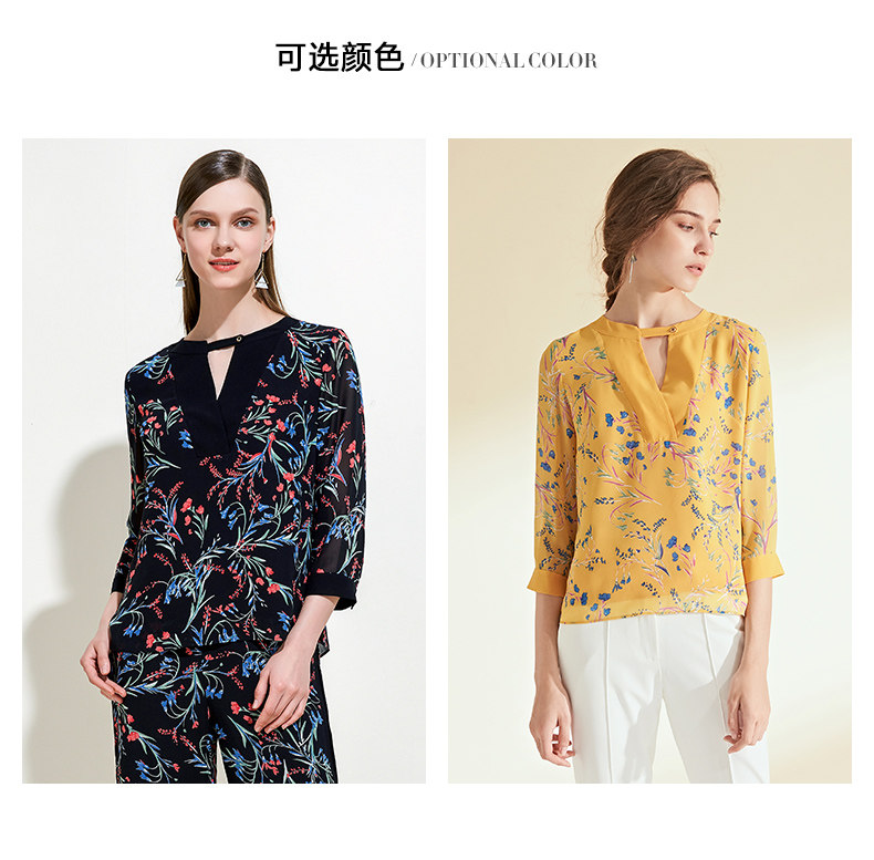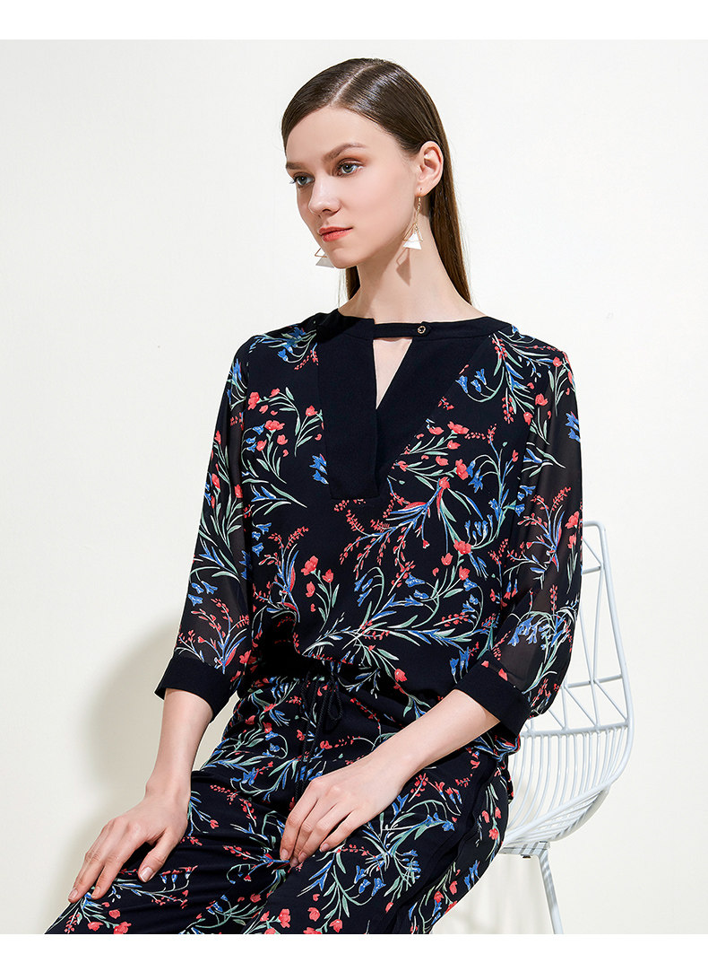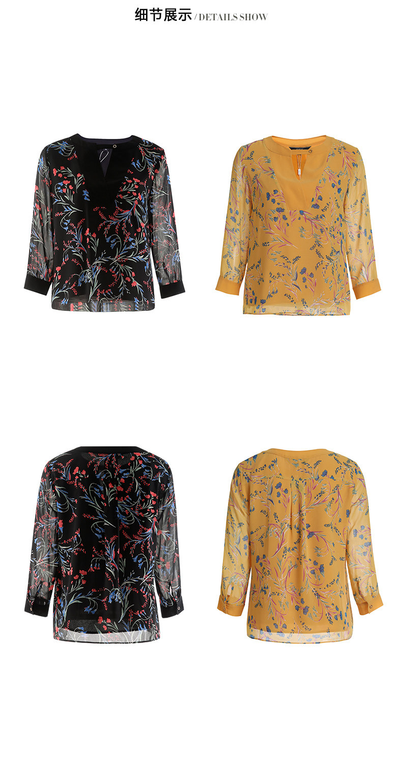 EITIE爱特爱女装春夏季V领七分袖很仙的文艺时尚印花小上衣5913609