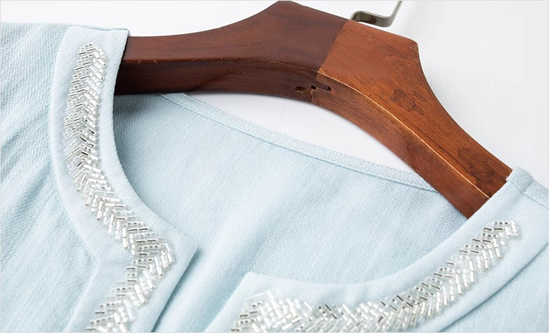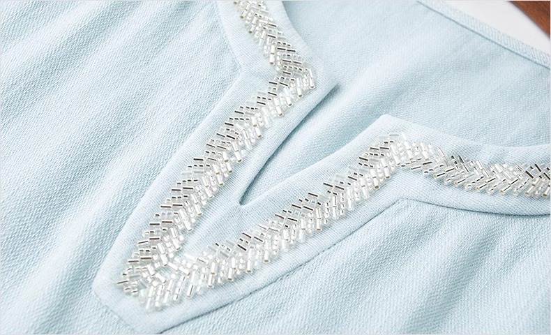 全新升级【铂金会员146/天猫199/差价53】(43046)洛诗琳重工钉珠蓝色衬衫女短袖夏季新款设计感小众时尚别致气质上衣薄
