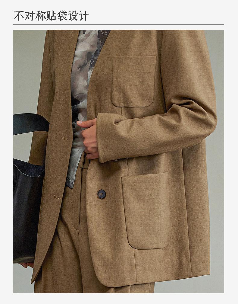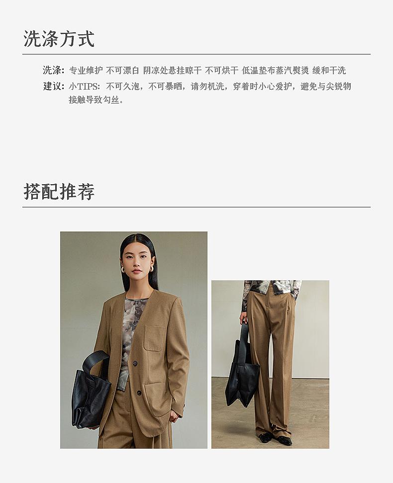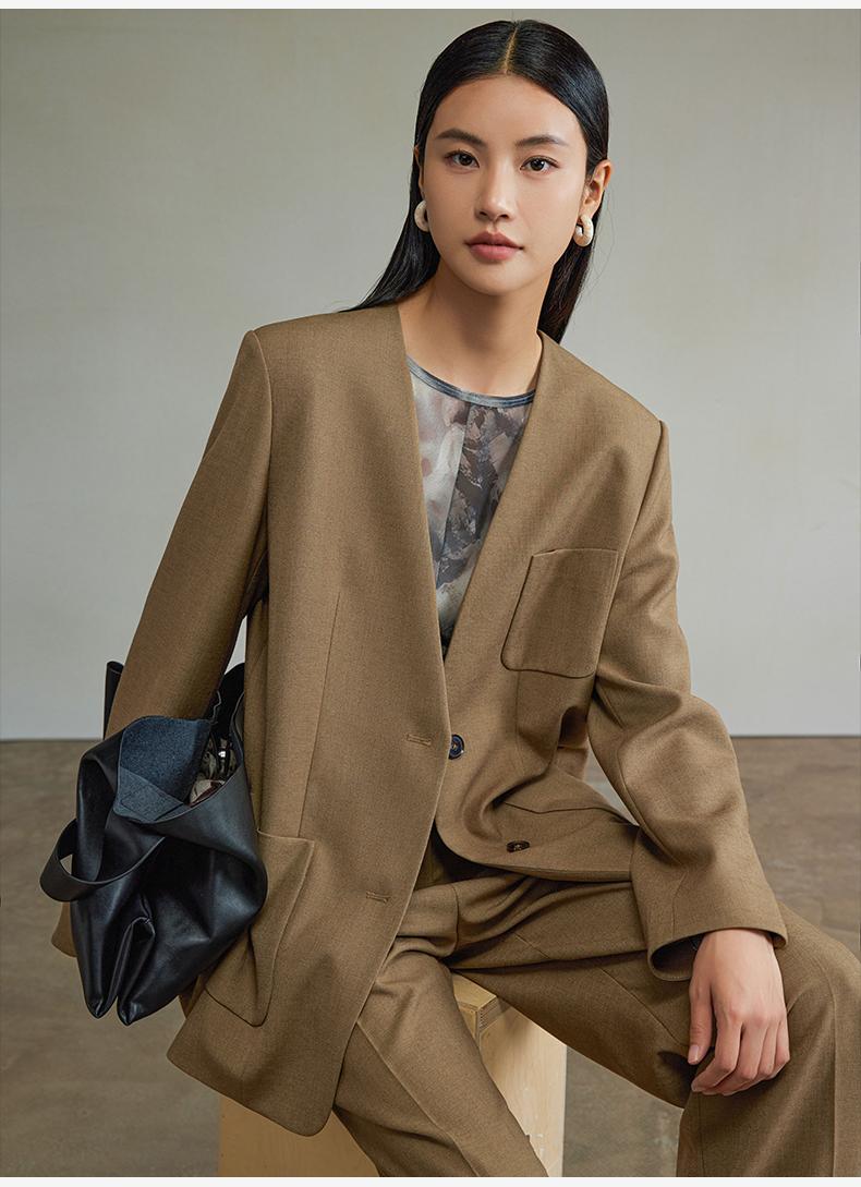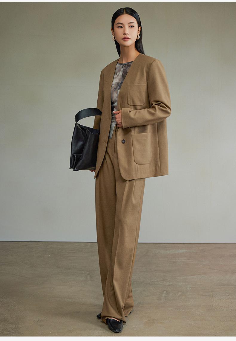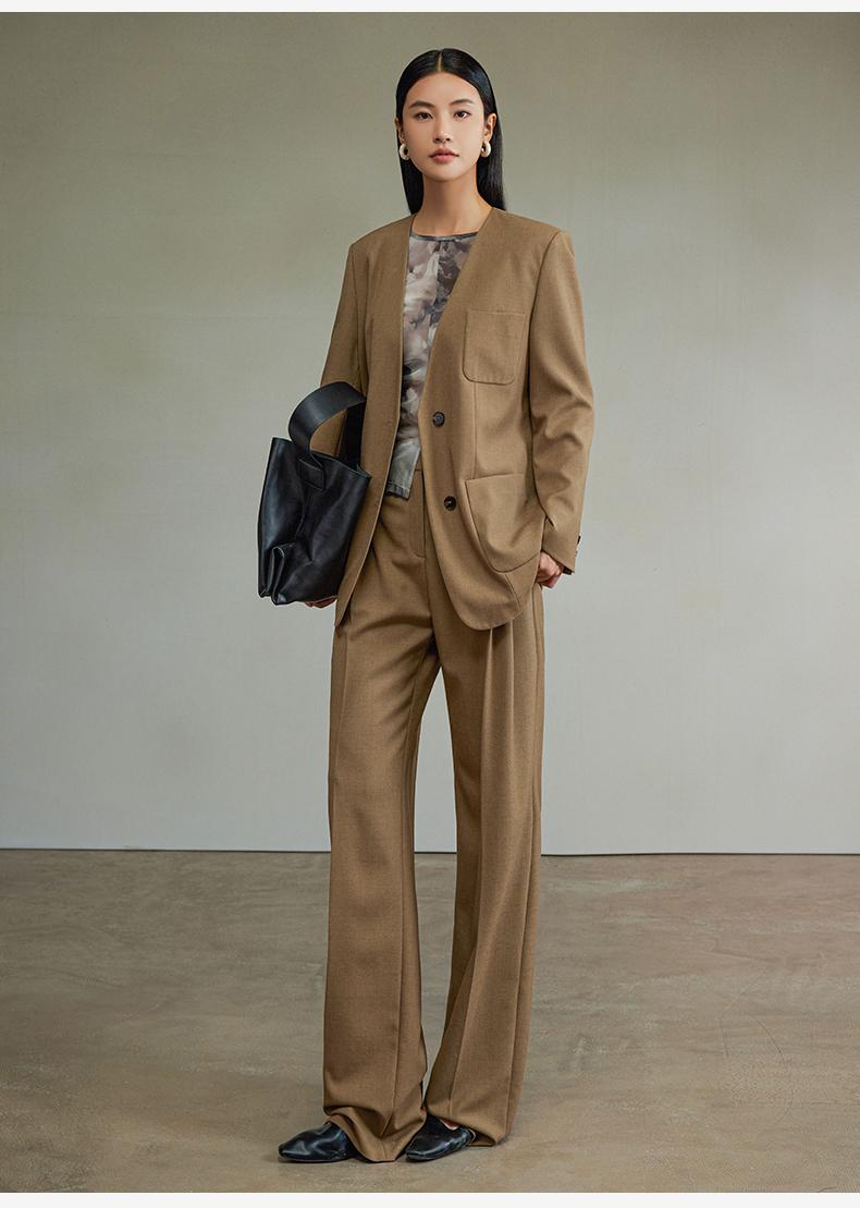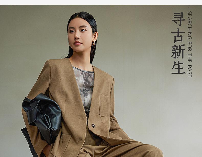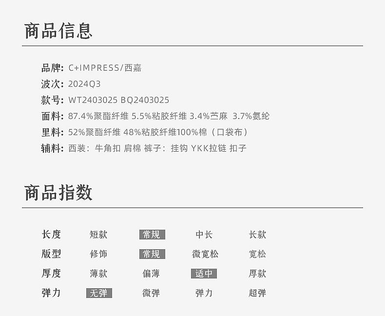 西嘉C+IMPRESS/西嘉苎麻竹节肌理老钱风无领设计女士西装职业女裤套装(货号:WT2403022)