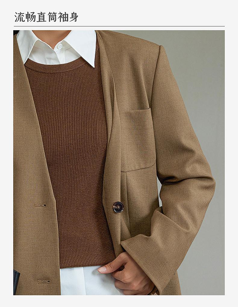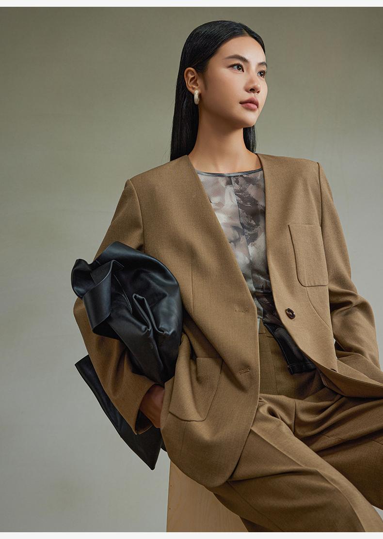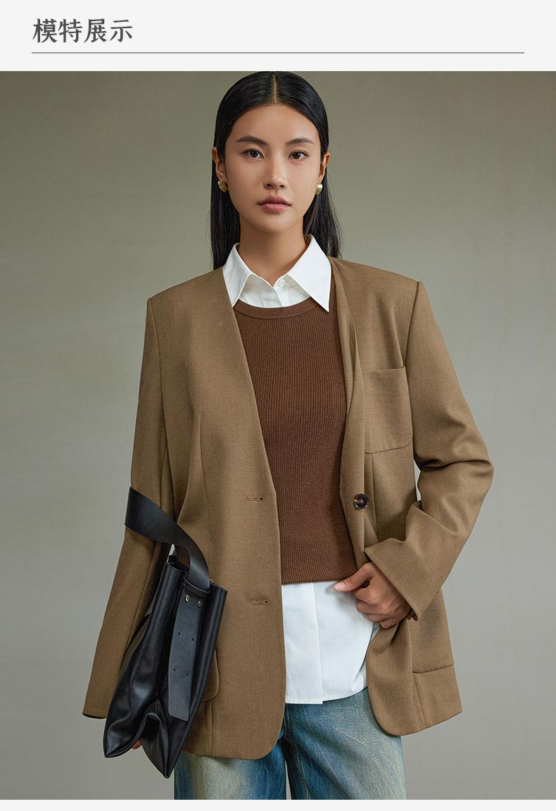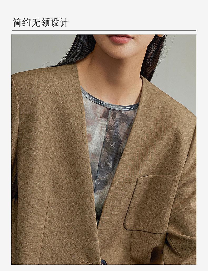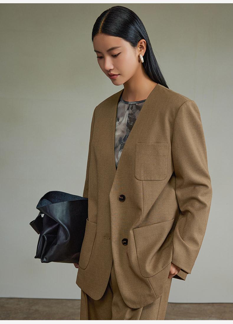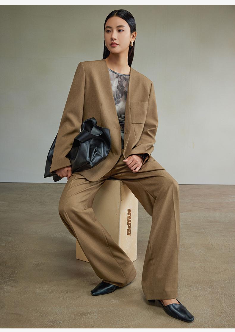西嘉C+IMPRESS/西嘉苎麻竹节肌理老钱风无领设计女士西装职业女裤套装(货号:WT2403022)