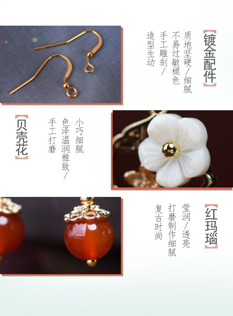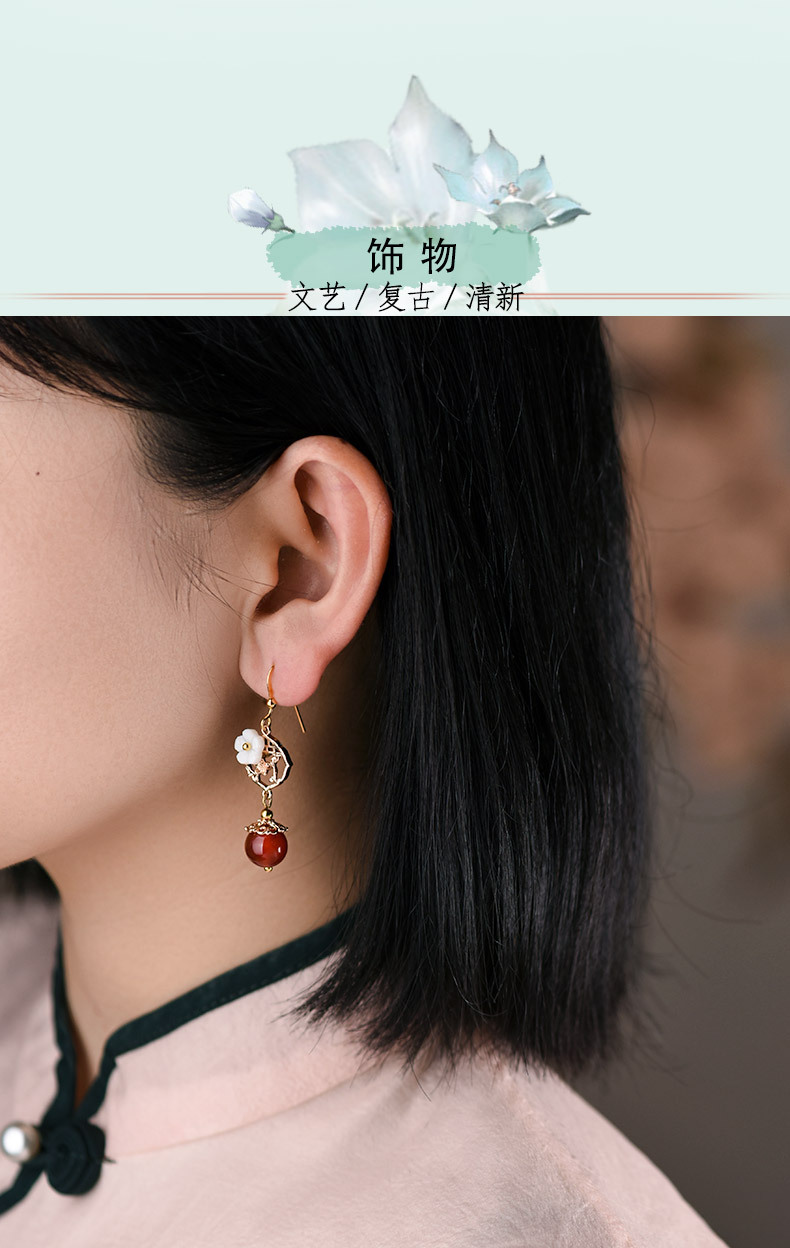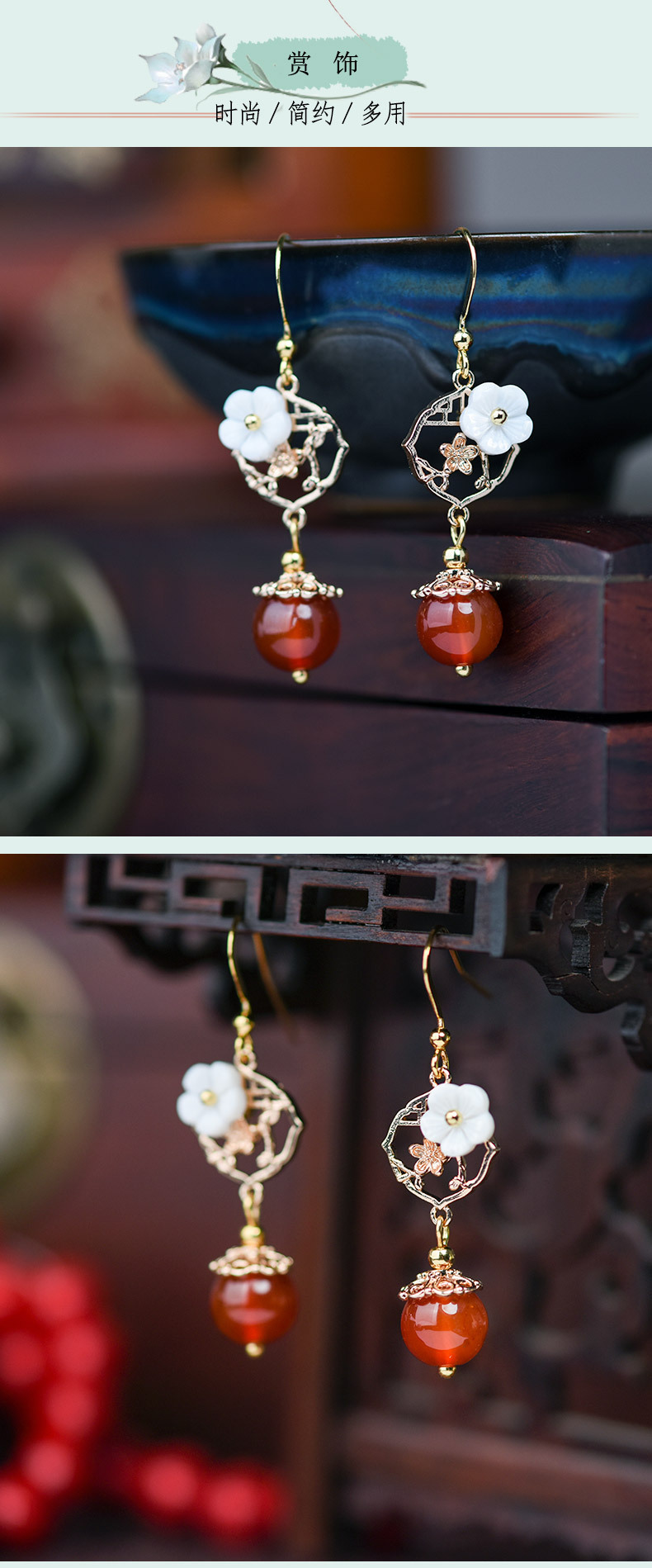 JGL-03220327古风耳环贝壳花手工耳坠红玛瑙简约日常耳环女耳环
