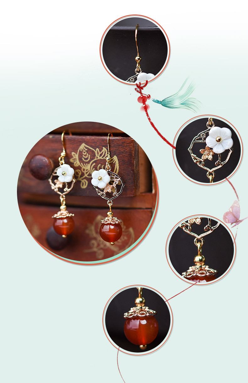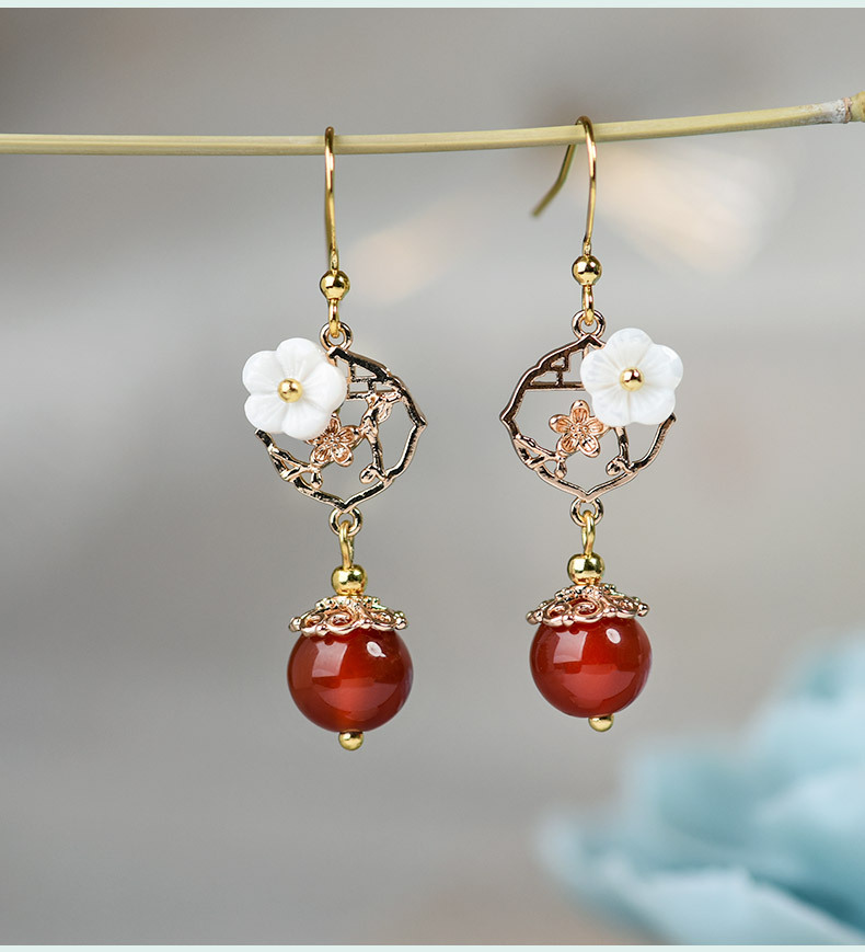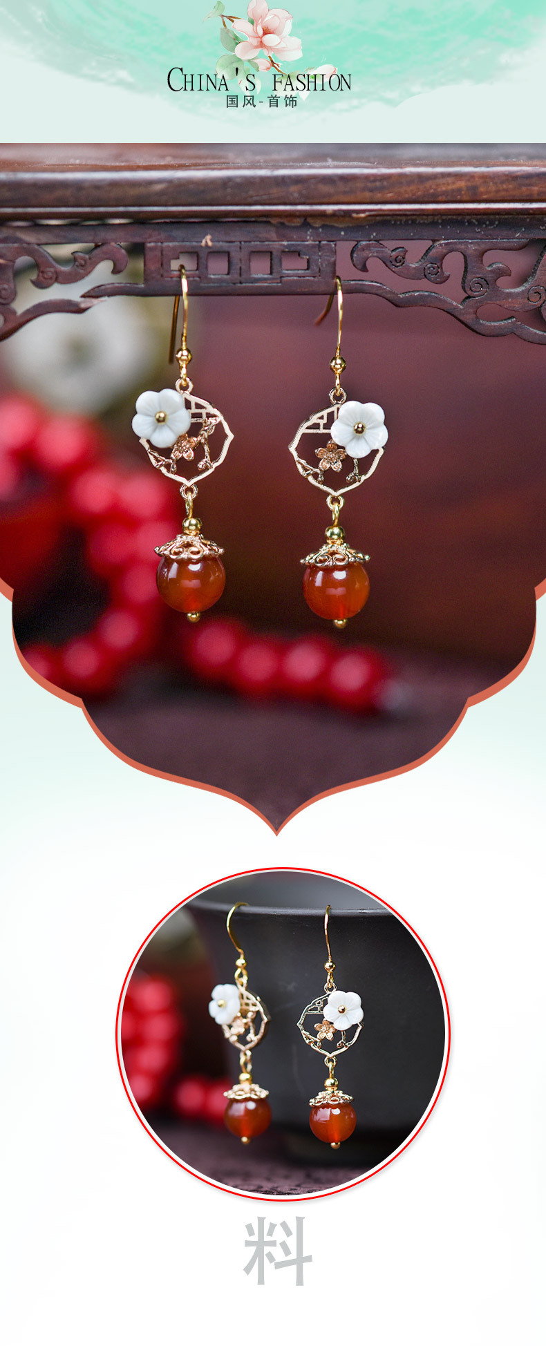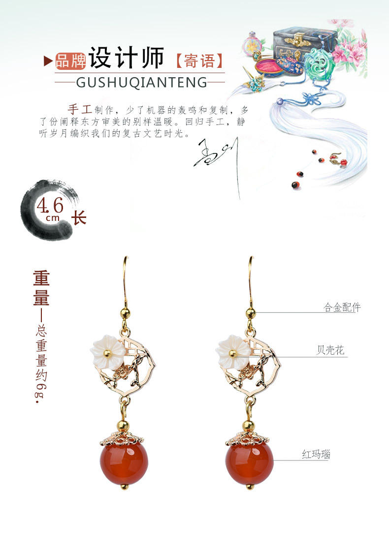 JGL-03220327古风耳环贝壳花手工耳坠红玛瑙简约日常耳环女耳环