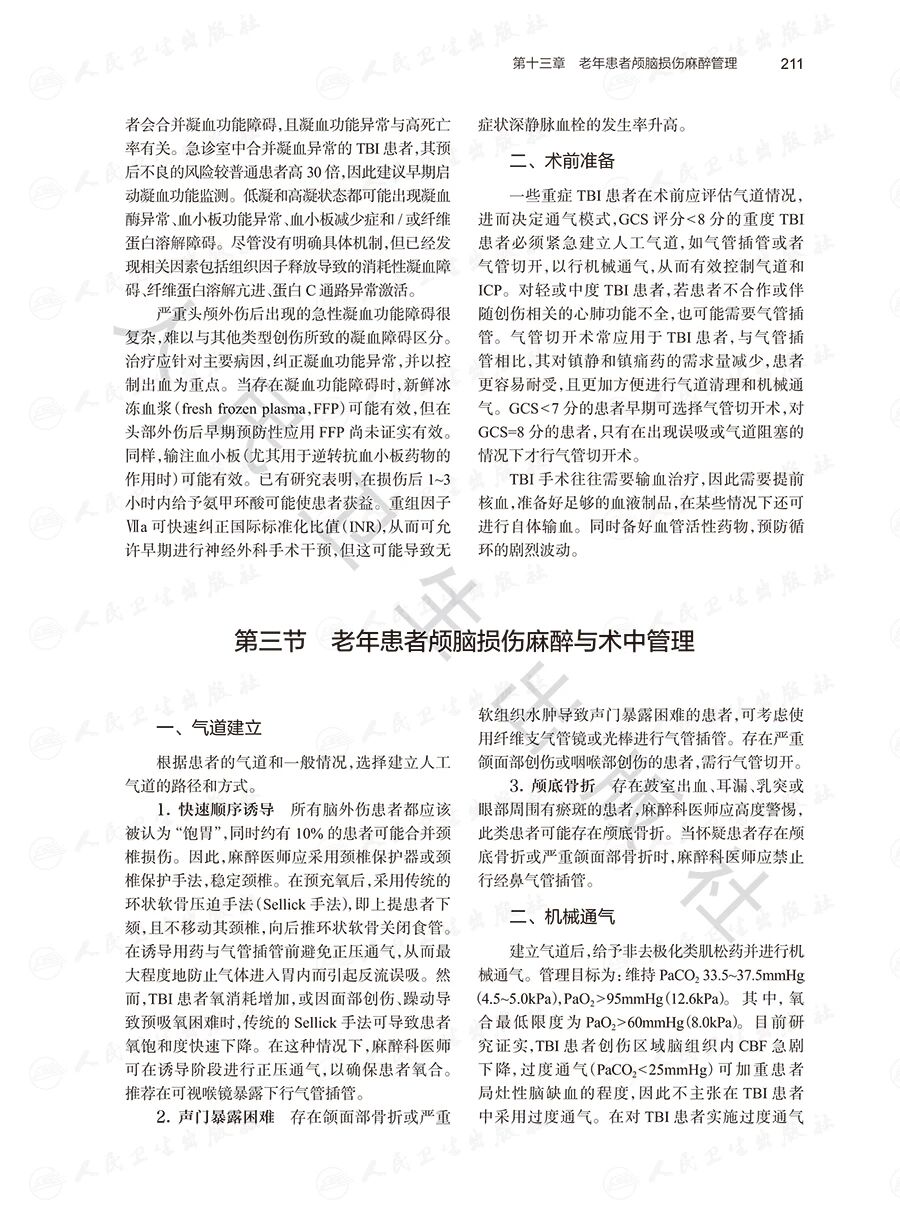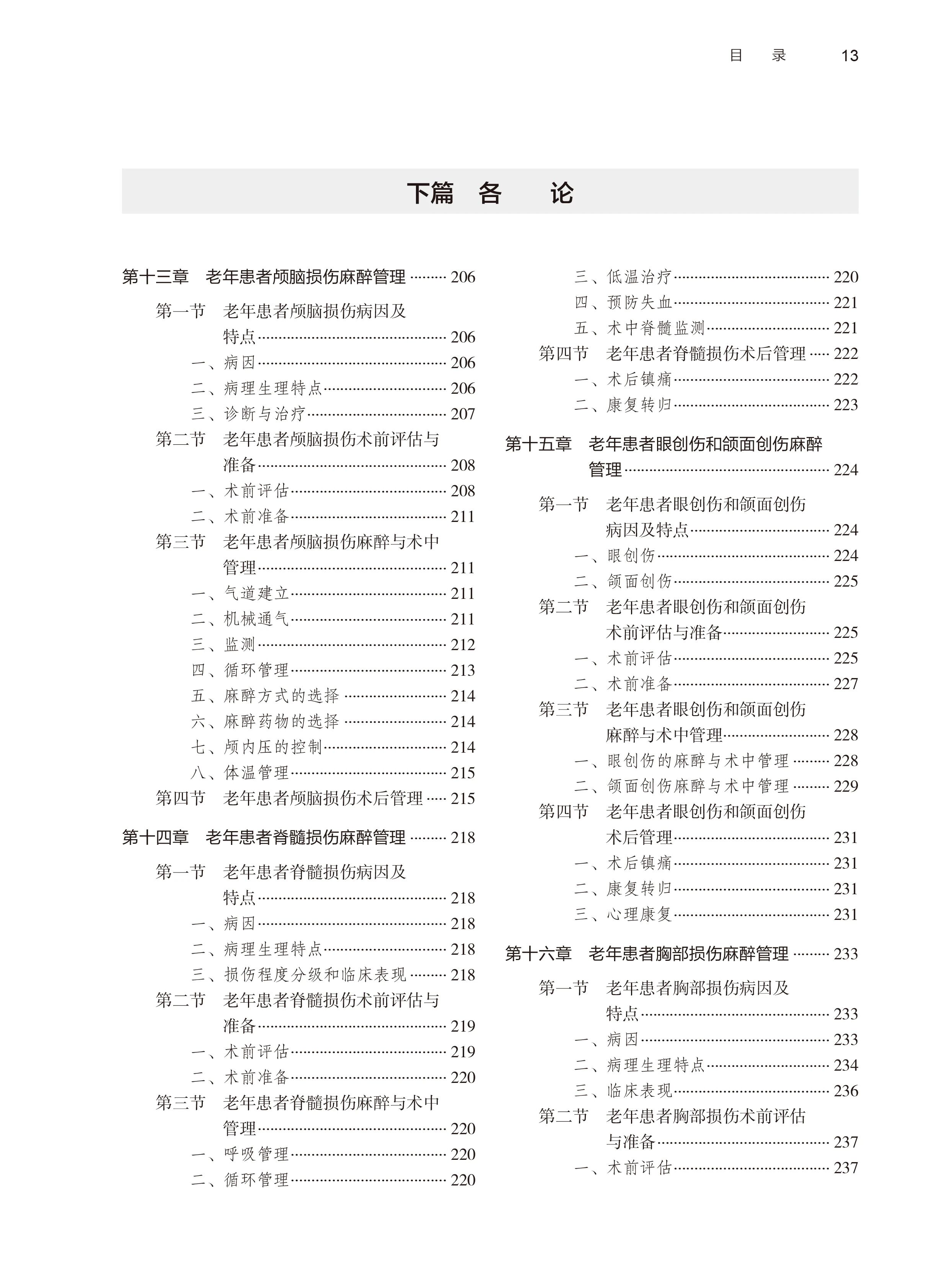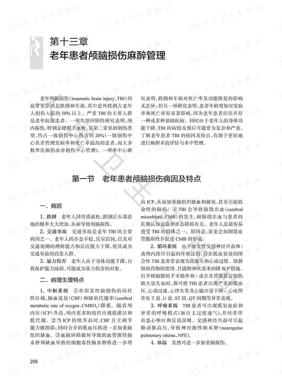 本书聚焦老年创伤患者麻醉的临床重难点,分总论与各论展开。总论结合老年患者病理生理、基础疾病等特点,系统讲解术前评估、各类麻醉方式、围手术期管理、术后并发症防治及合并传染性疾病的麻醉管理;各论针对颅脑、脊髓、眼、颌面、胸腹部、肌肉骨骼创伤及烧伤患者,从病因、特点、术前评估、术中麻醉管理到术后康复逐一阐述,并重视术后管理与并发症预防。全书图文并茂、编排清晰,为麻醉科医师提供从理论到实践的全方位指导,助力读者全面掌握老年创伤麻醉管理策略,提升患者术后康复质量与生活水平。