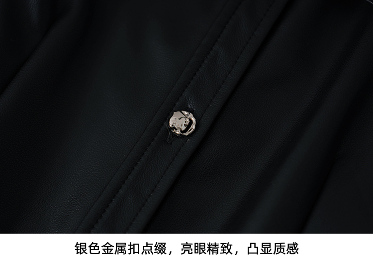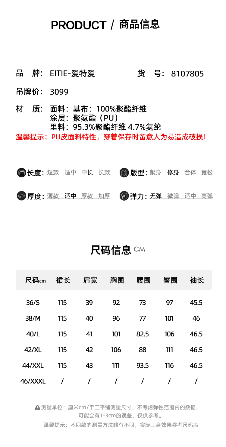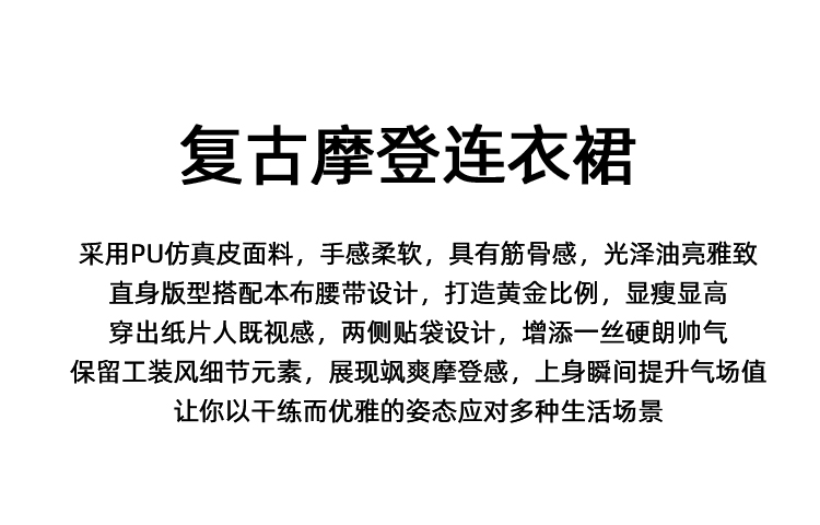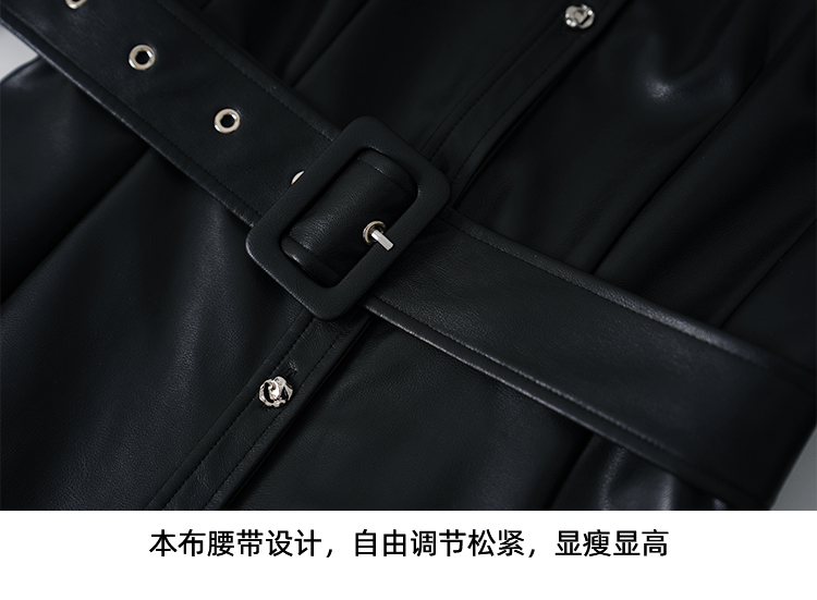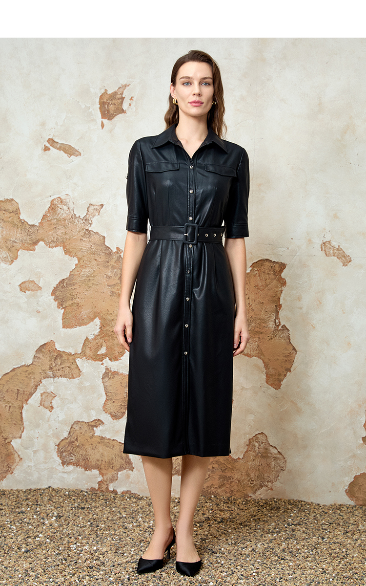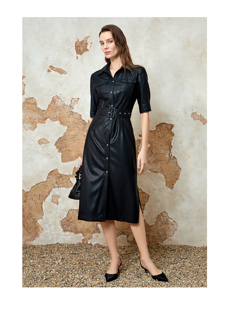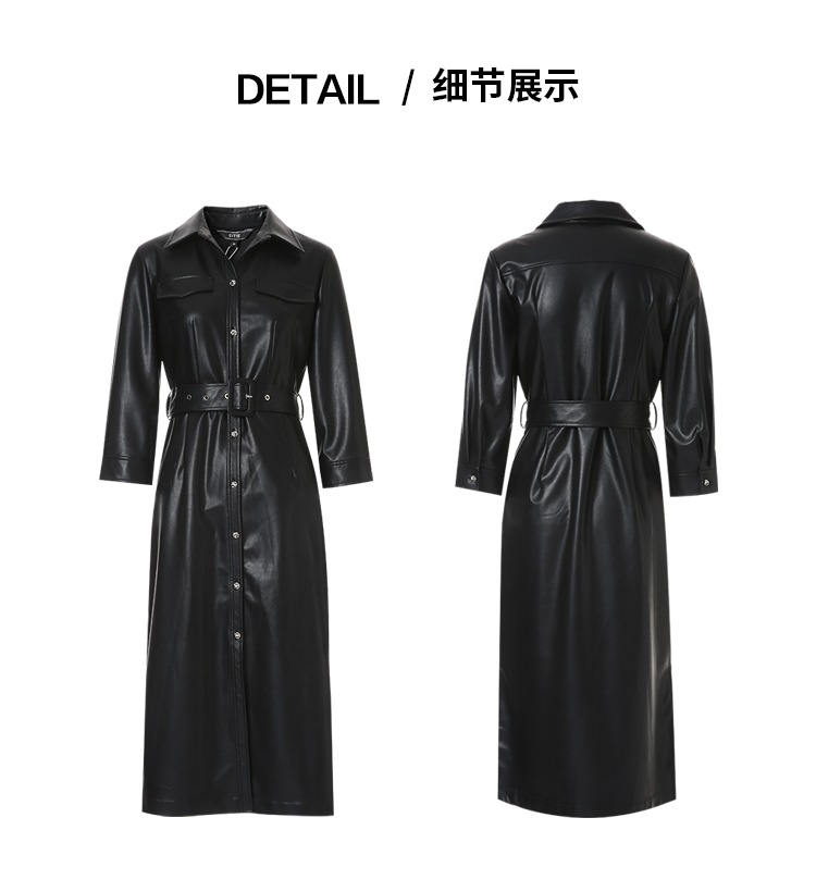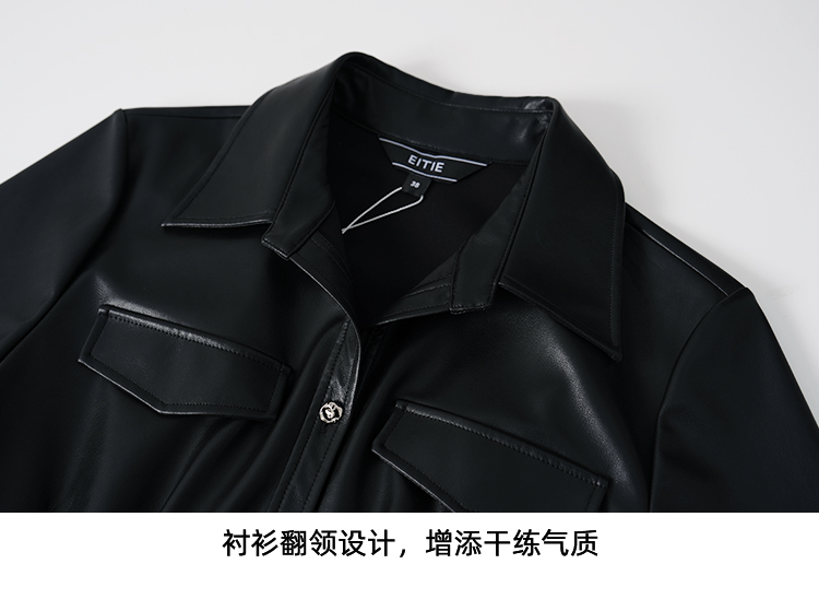 EITIE爱特爱春季新款复古时尚干练气质百搭衬衫式皮衣连衣裙8107805
