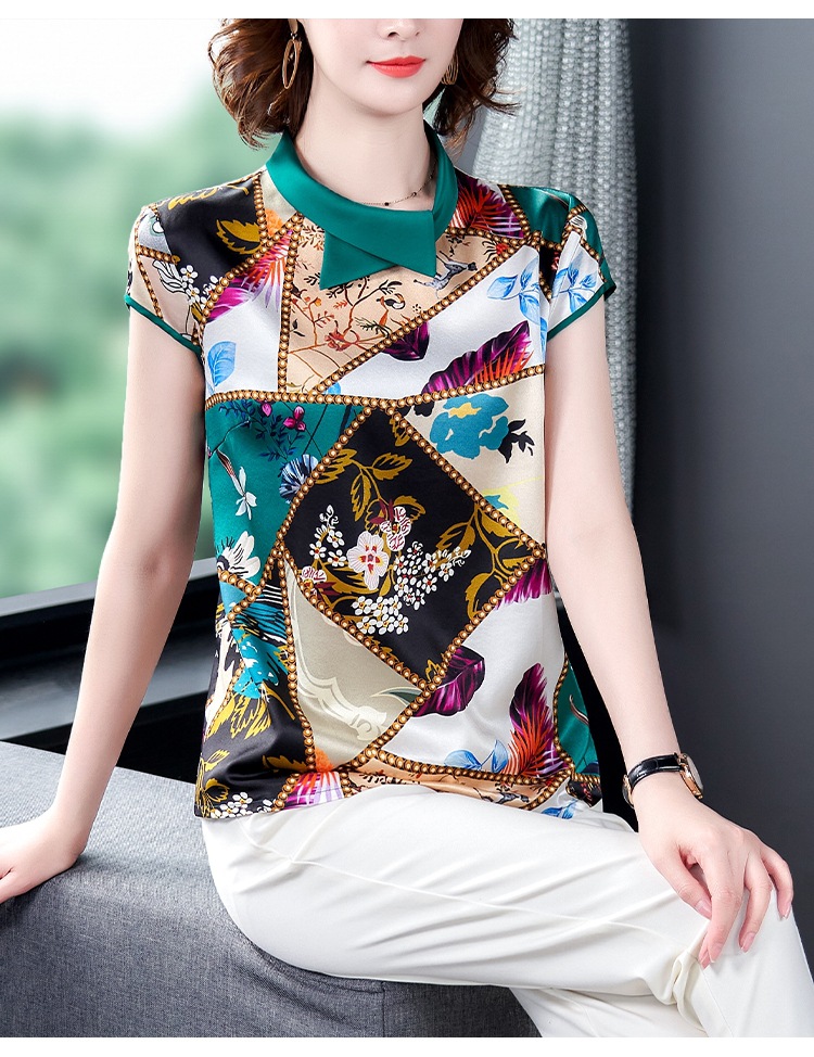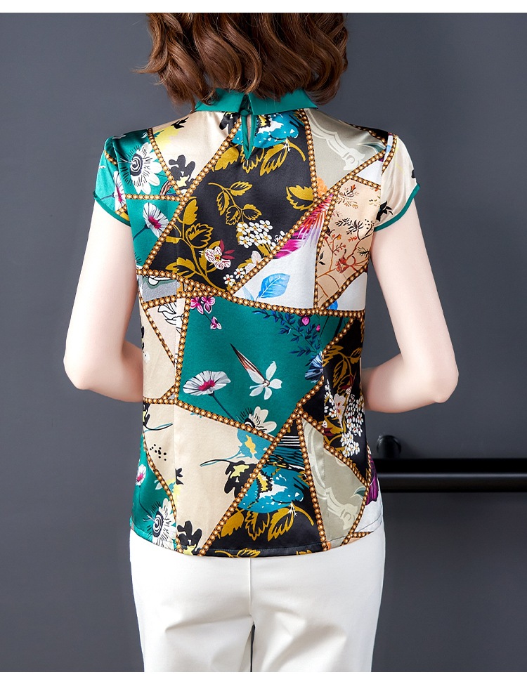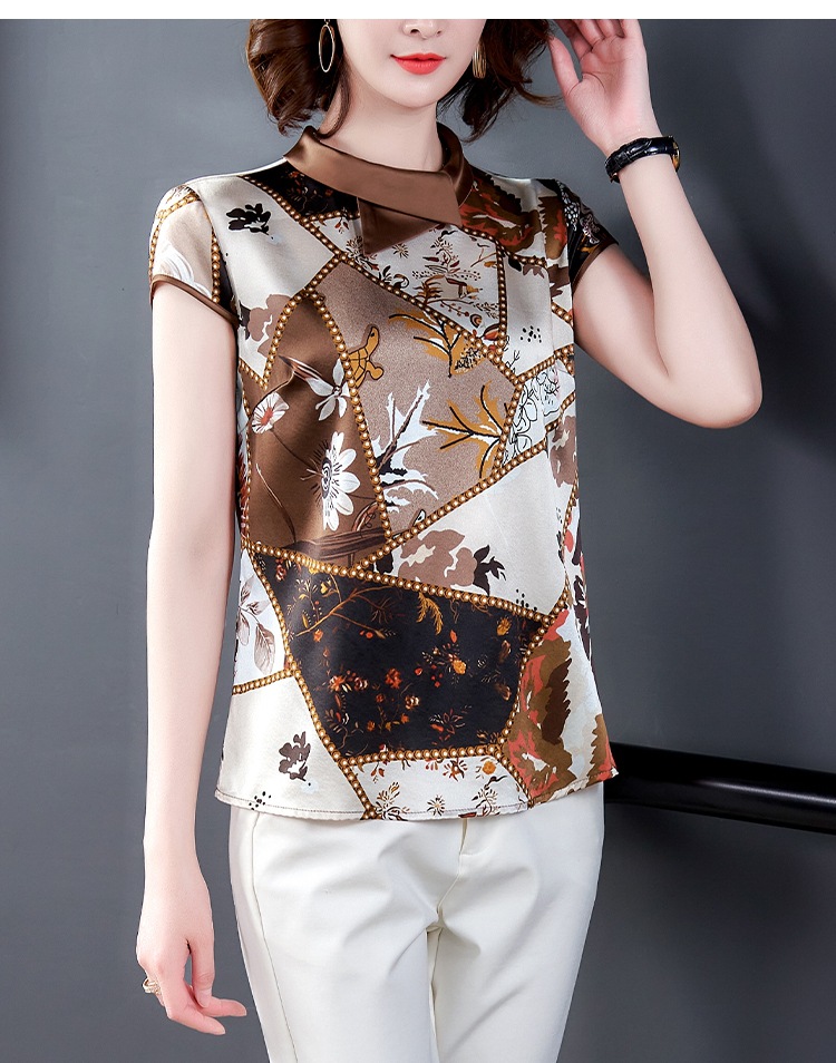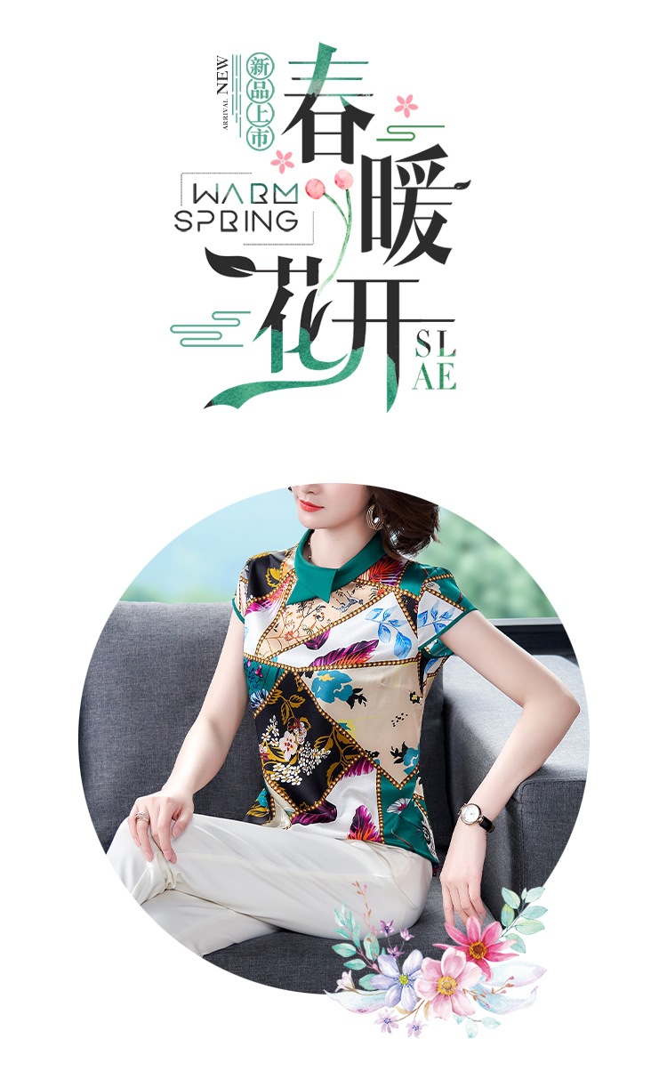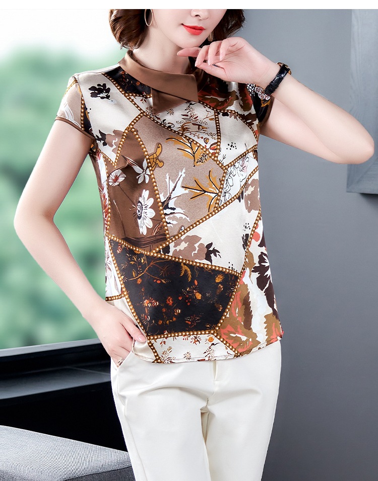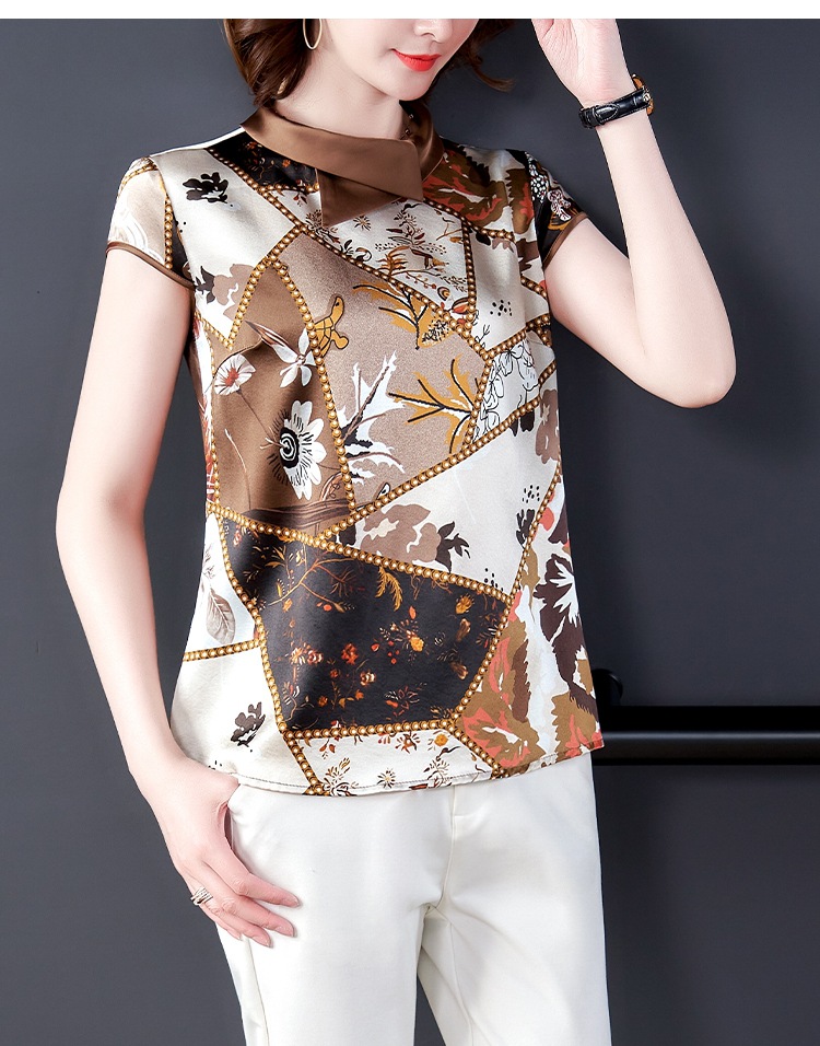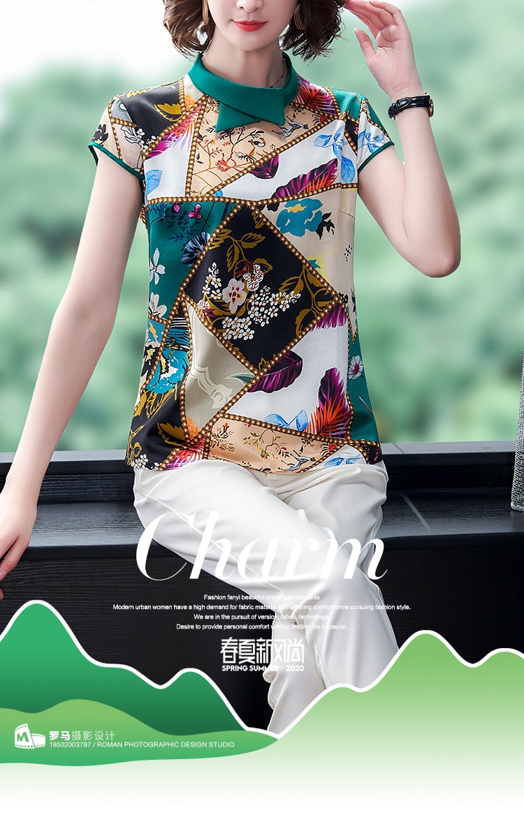 AHM-yme5256真丝上衣女士t恤2020夏季新款短袖优雅气质印花妈妈装雪纺衫