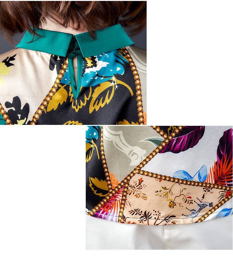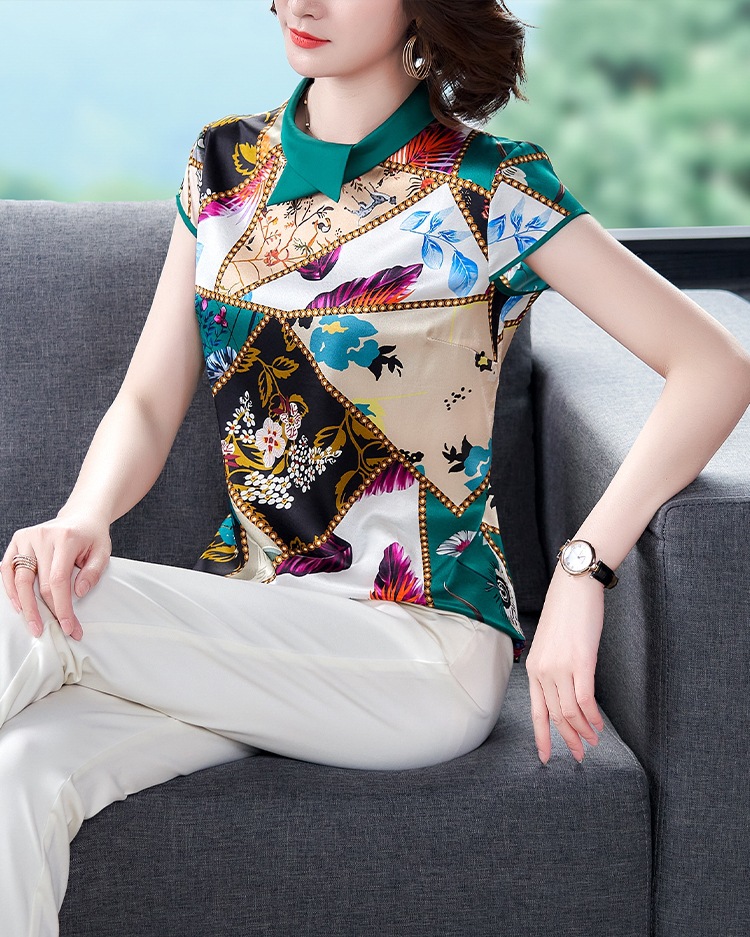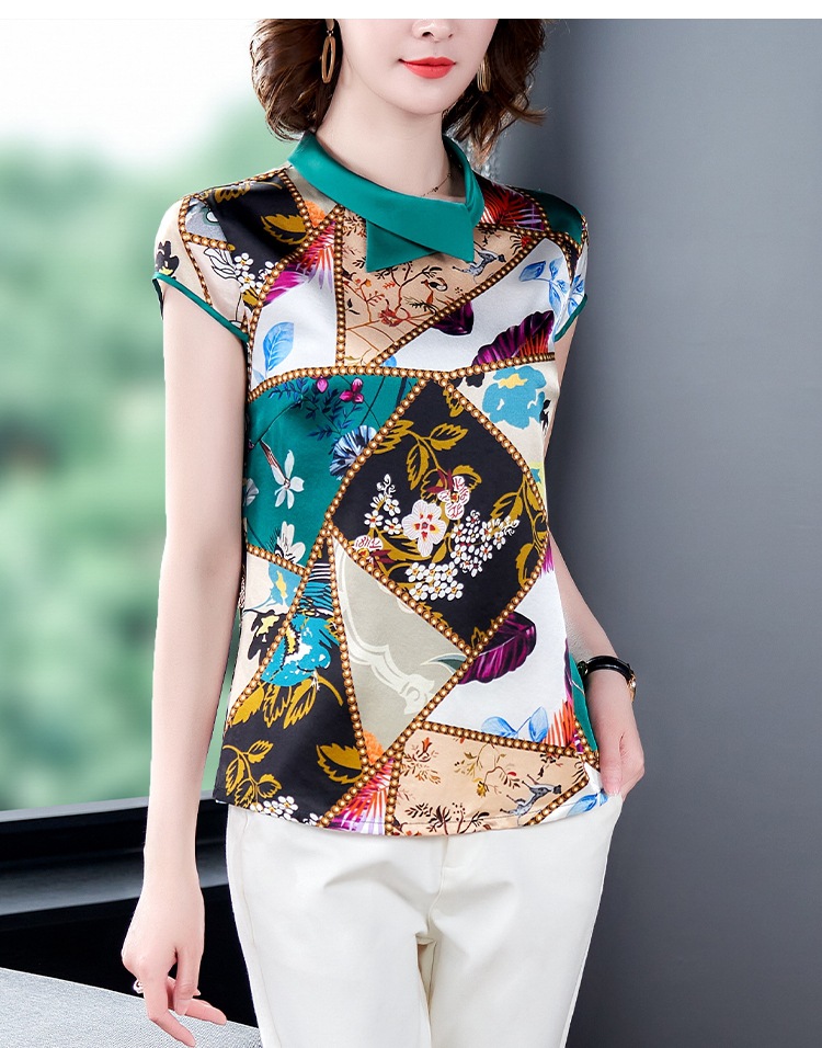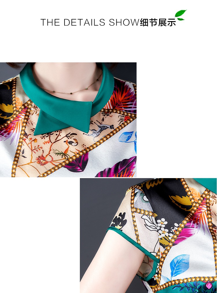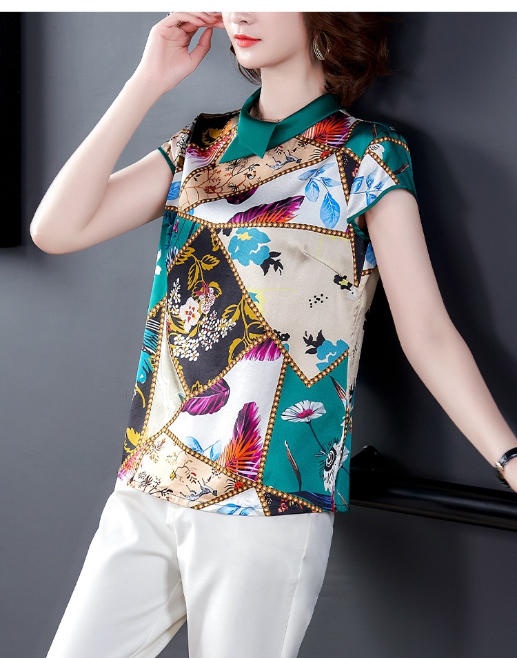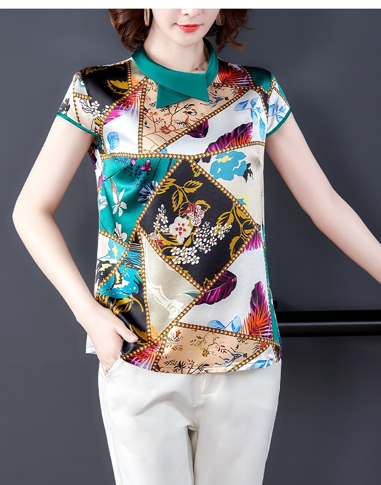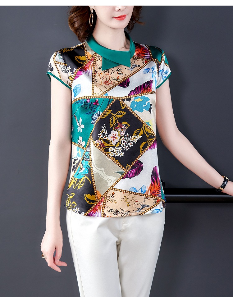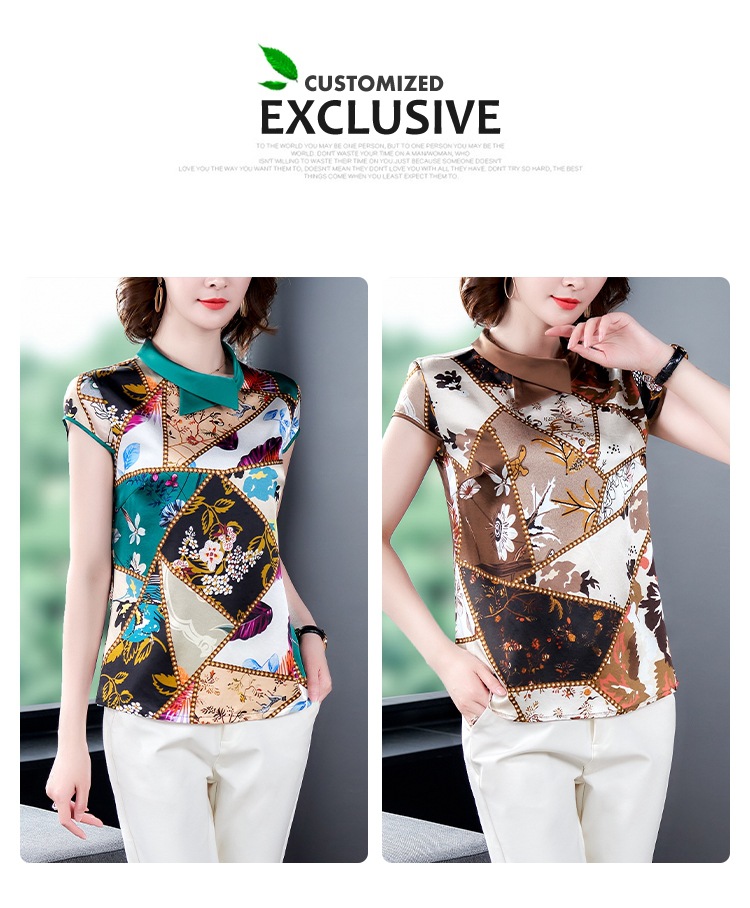 AHM-yme5256真丝上衣女士t恤2020夏季新款短袖优雅气质印花妈妈装雪纺衫
