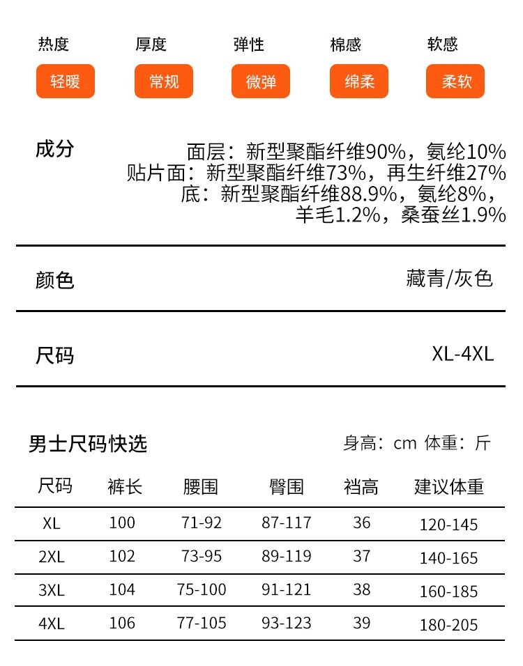 【内里羊毛+蚕丝 黑科技纤维锁温 云朵触感】耐尔加绒加厚高弹不臃肿抗寒保暖裤(W4100)