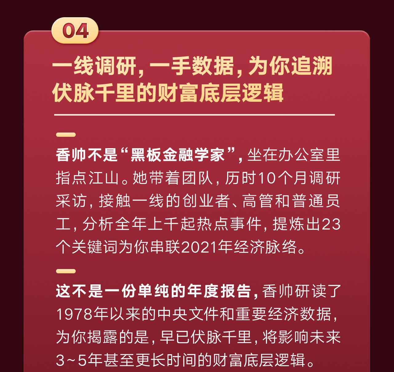 香帅从上千件热点事件里提炼了23个关键词,串联成经济发展的脉络,抽丝剥茧,为你呈现财富运行的规律。