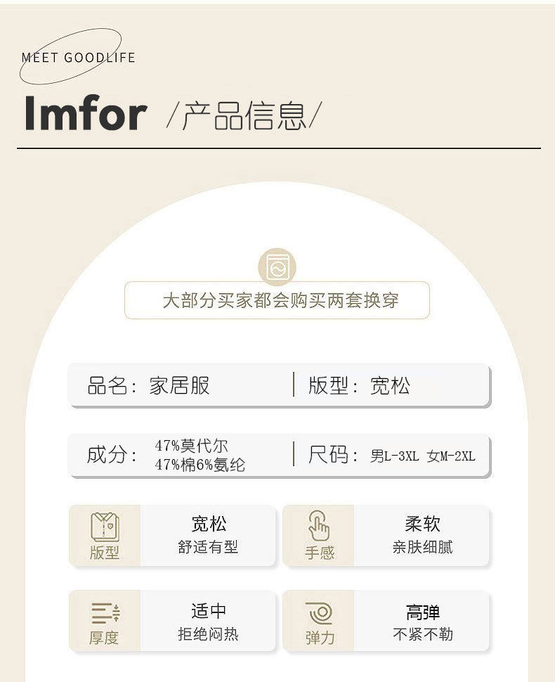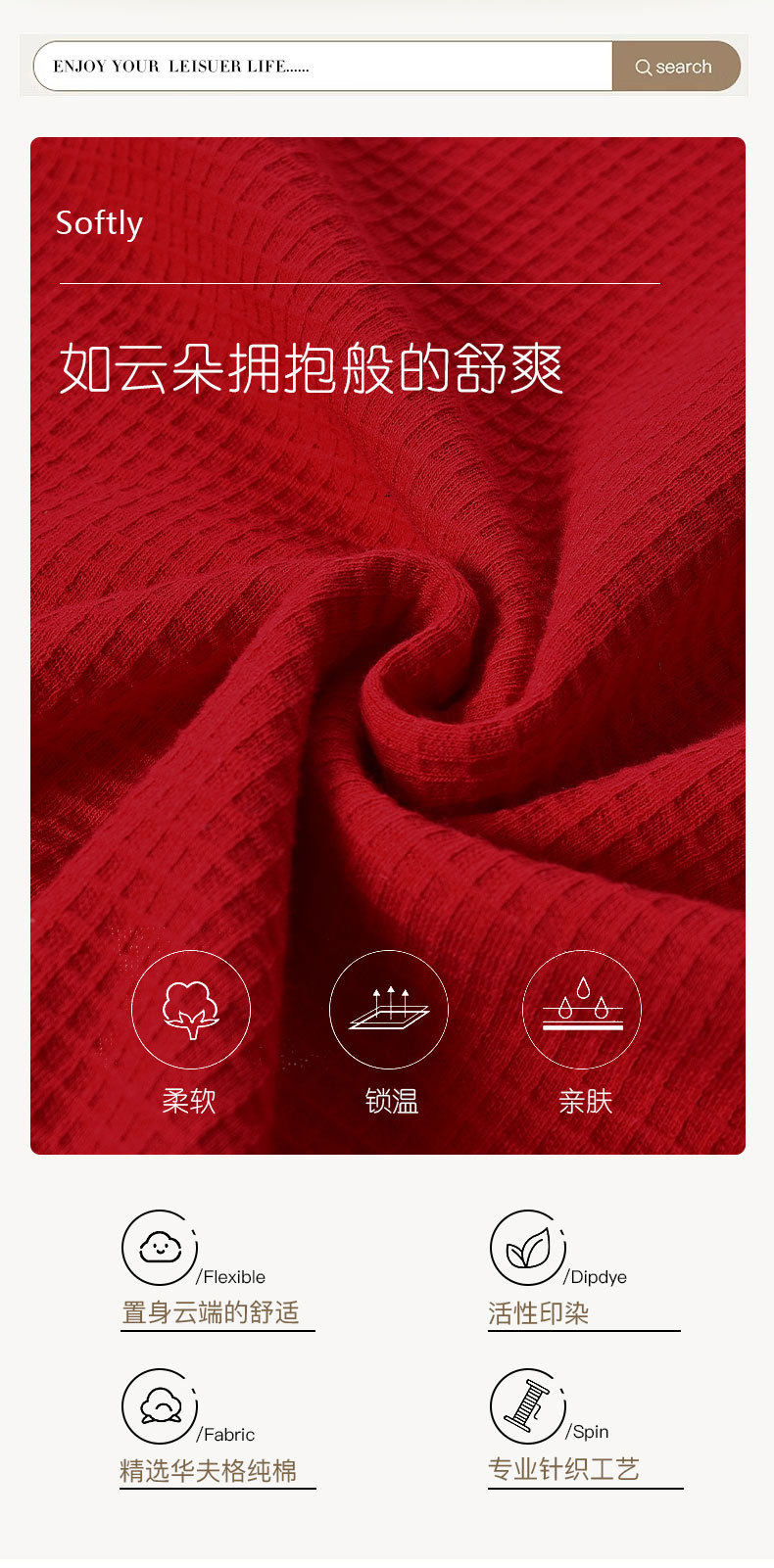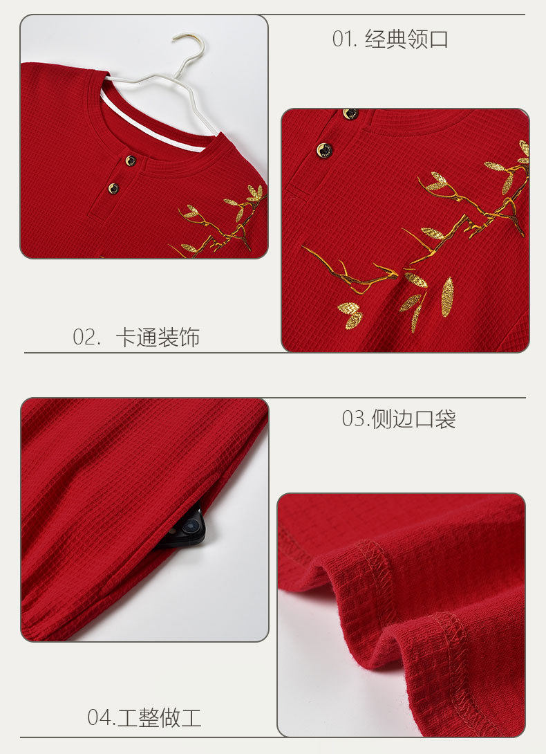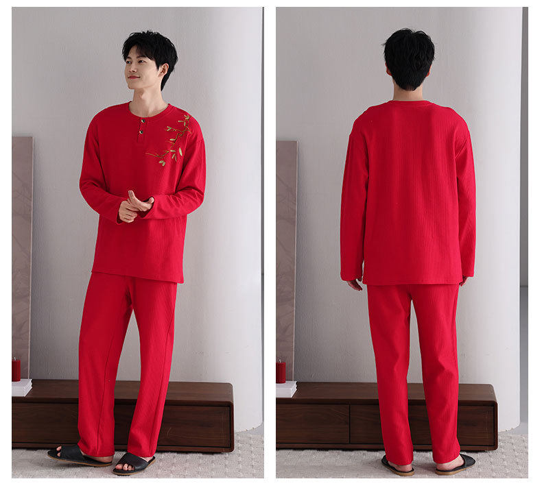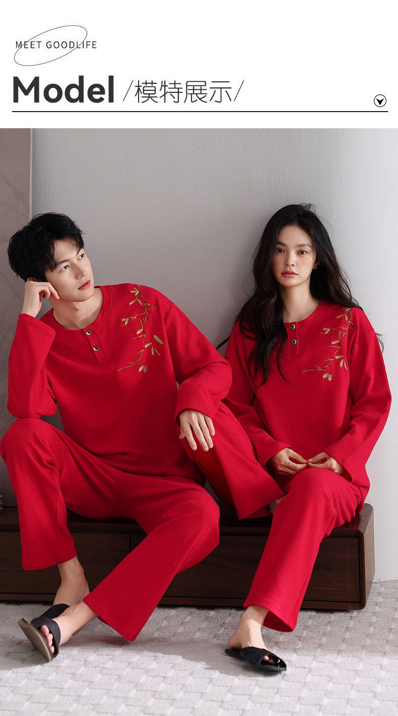 纯棉华夫格情侣睡衣女长袖长裤套装秋季简约风中青年可外穿家居服 JL-NQT9080/NQT8080