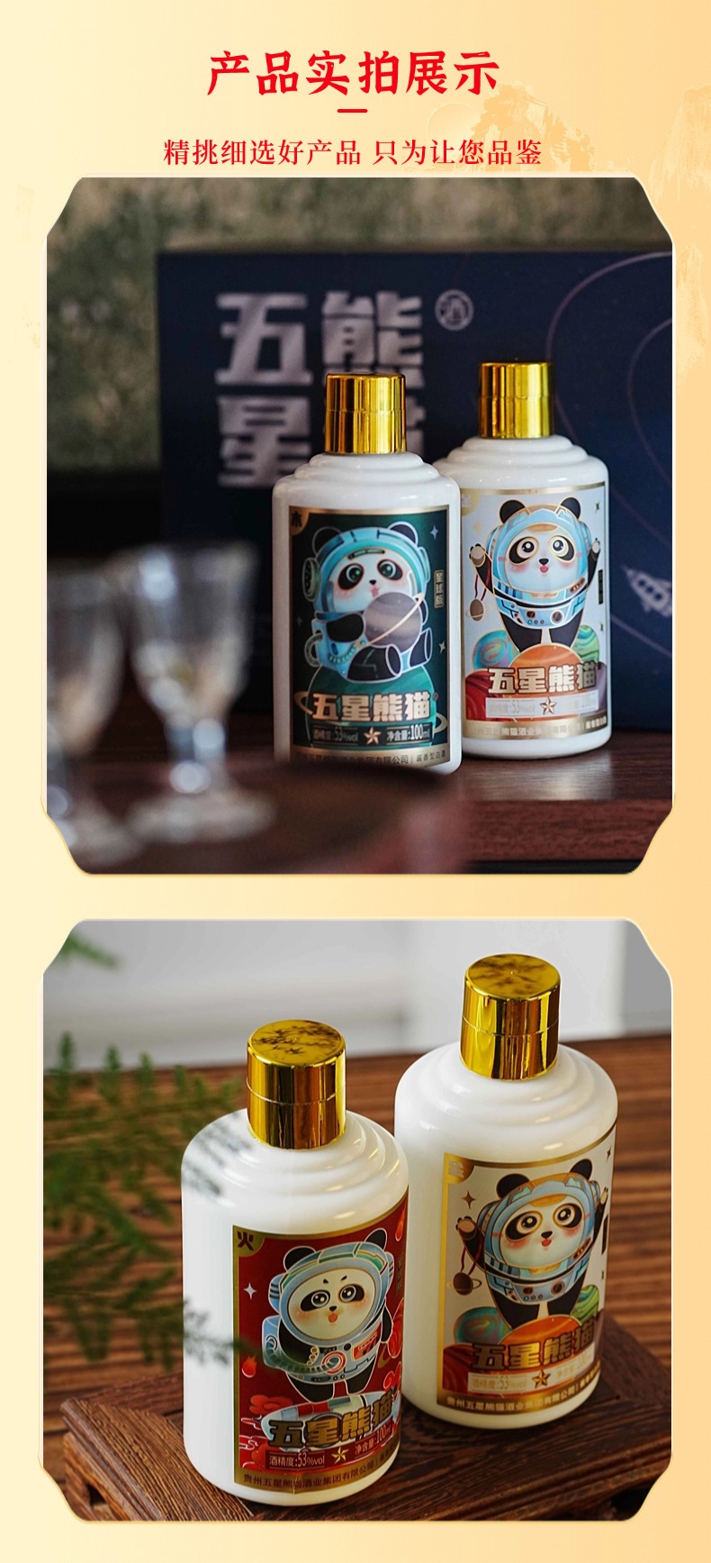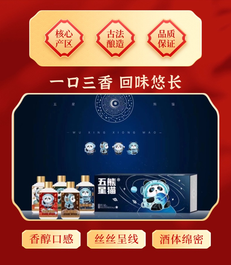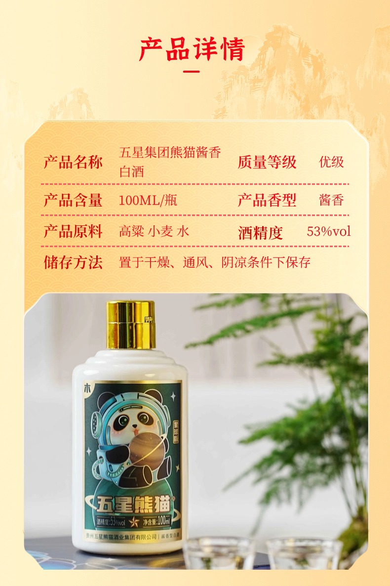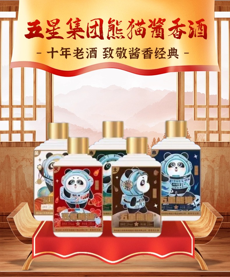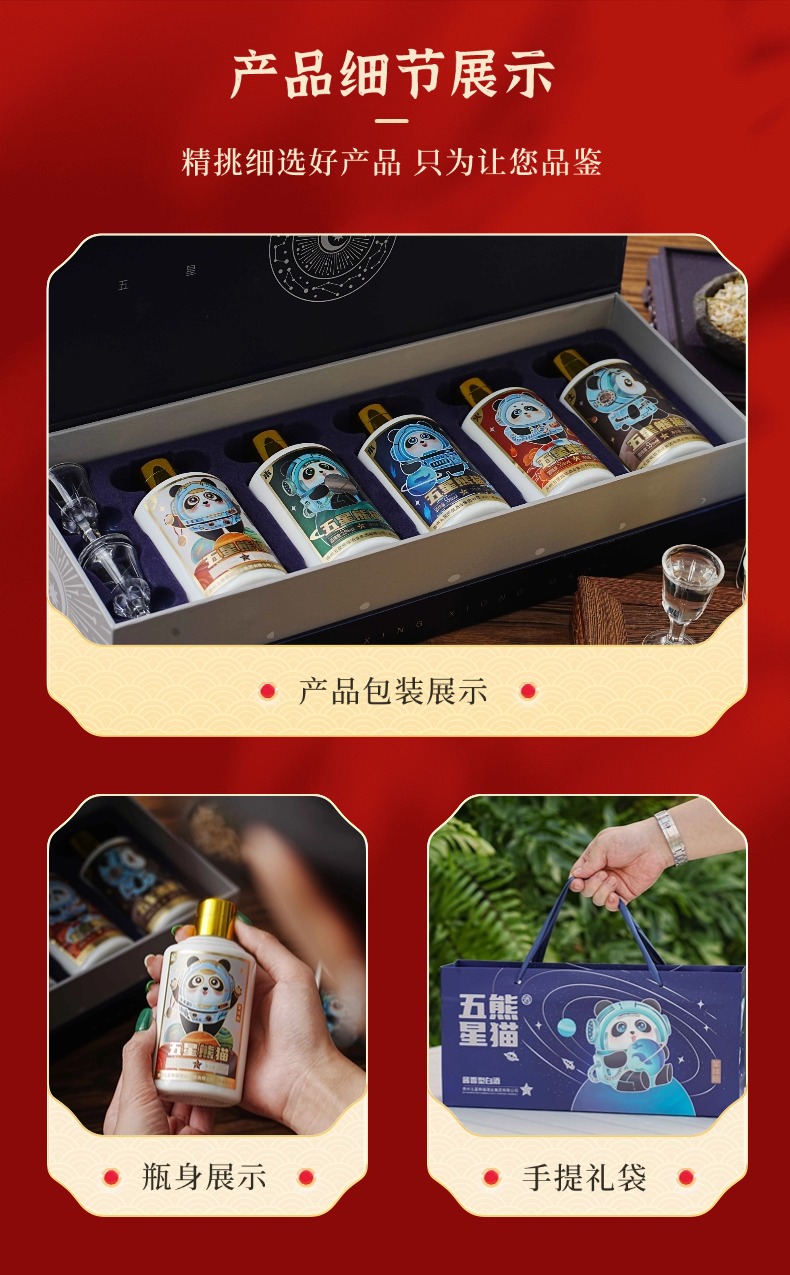 热卖中!!赠礼袋+2只定制酒杯!【贵州省酒 三台一星 五星集团】五星熊猫星球版酱香白酒礼盒 53°酱香型白酒 100ml*5瓶