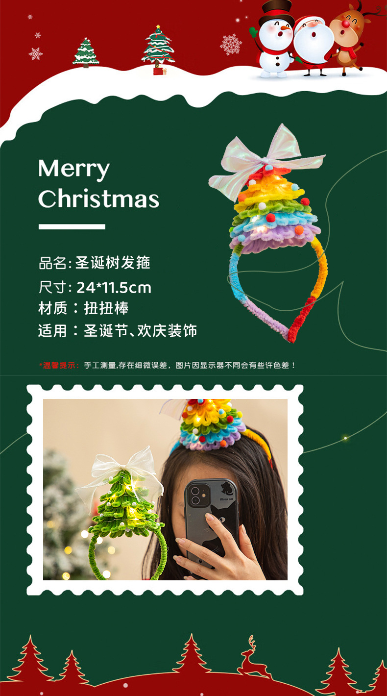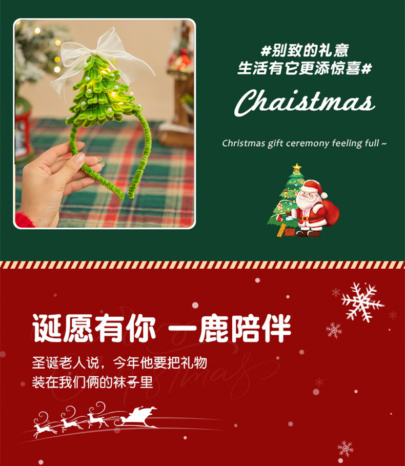 【圣诞快乐,暖冬圣诞礼】新款圣诞树扭扭棒diy材料包 头饰发箍圣诞节装饰 送女朋友闺蜜礼物-QQ