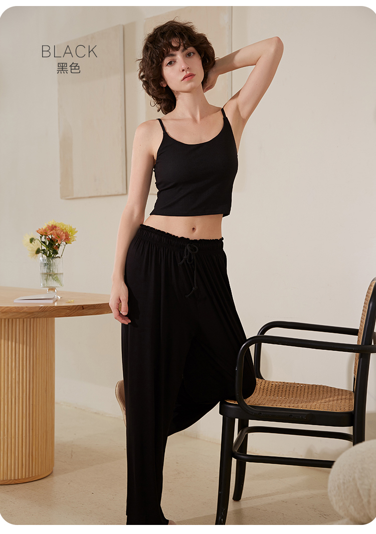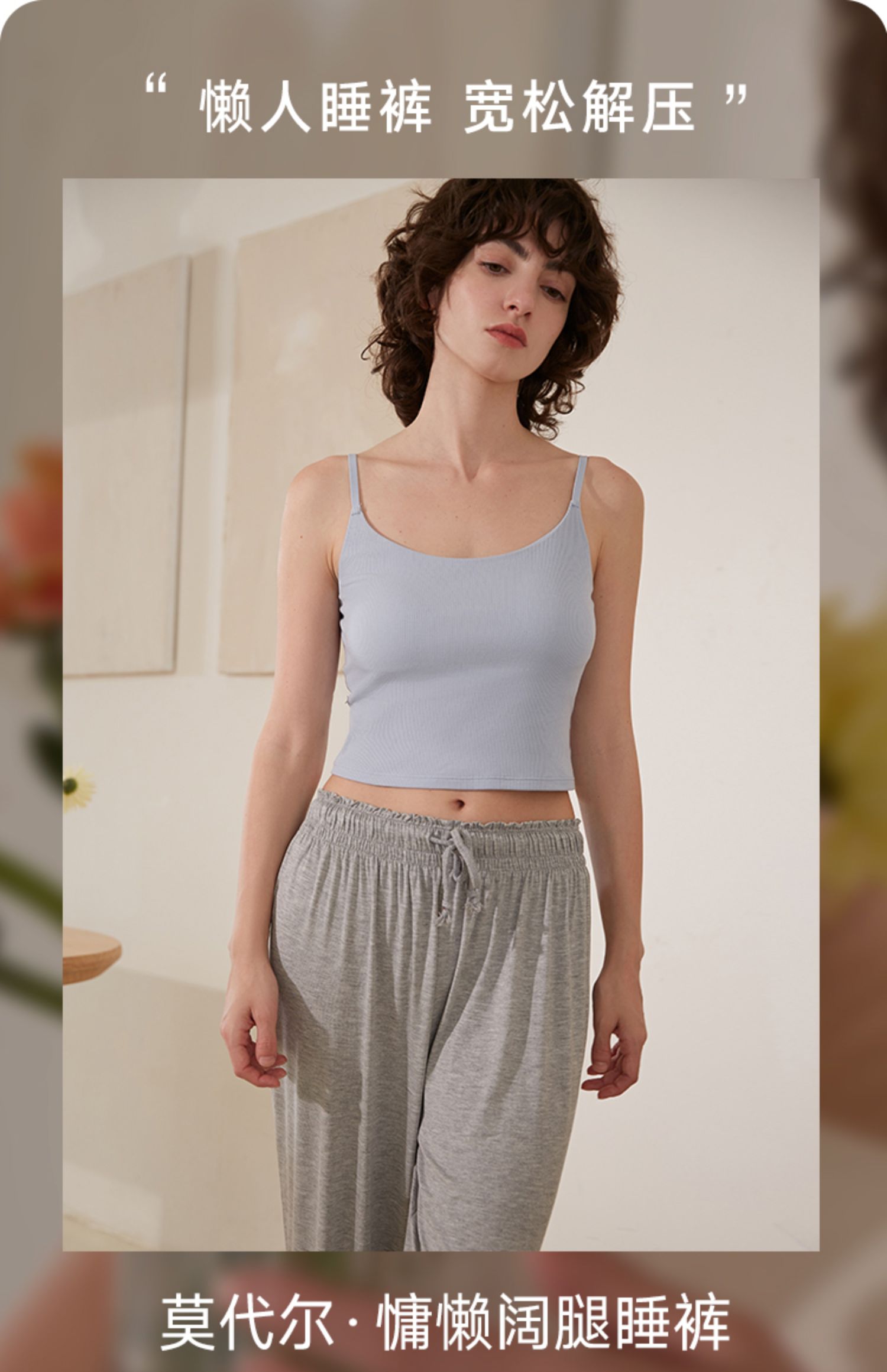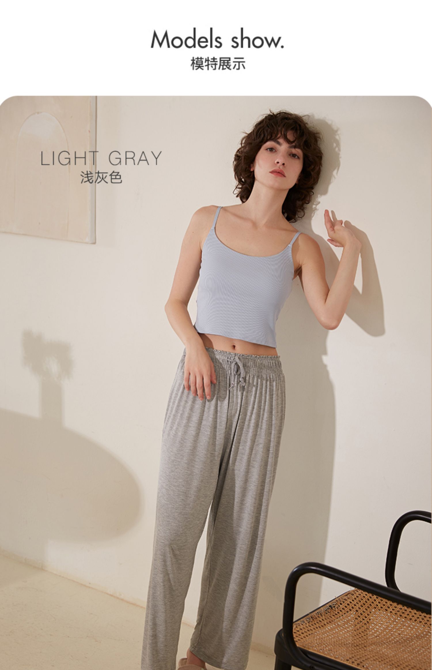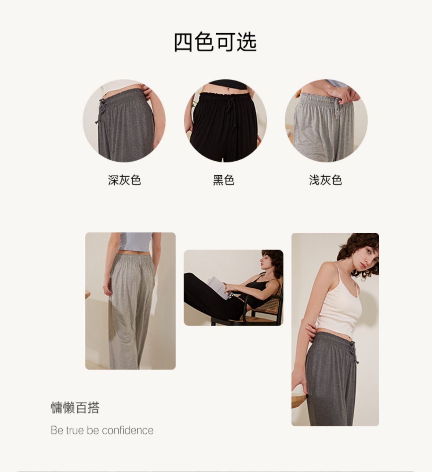 弗利少女屋阔腿裤女垂感宽松直筒长裤薄款莫代尔家居休闲运动睡裤