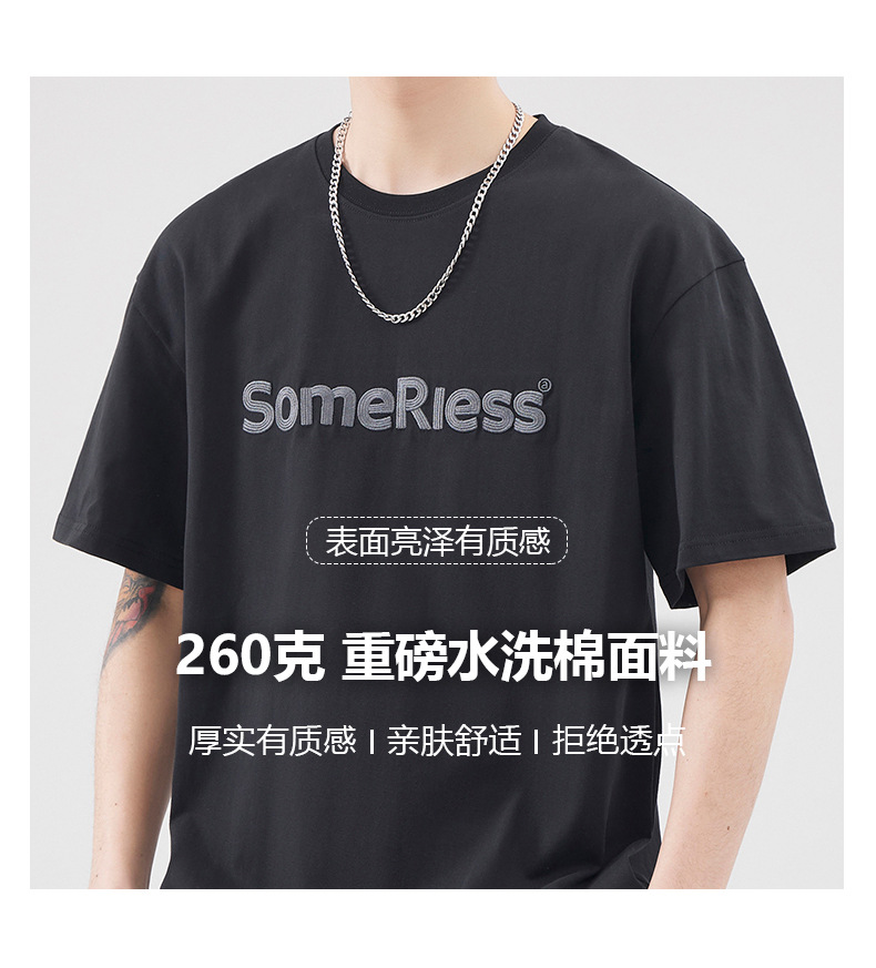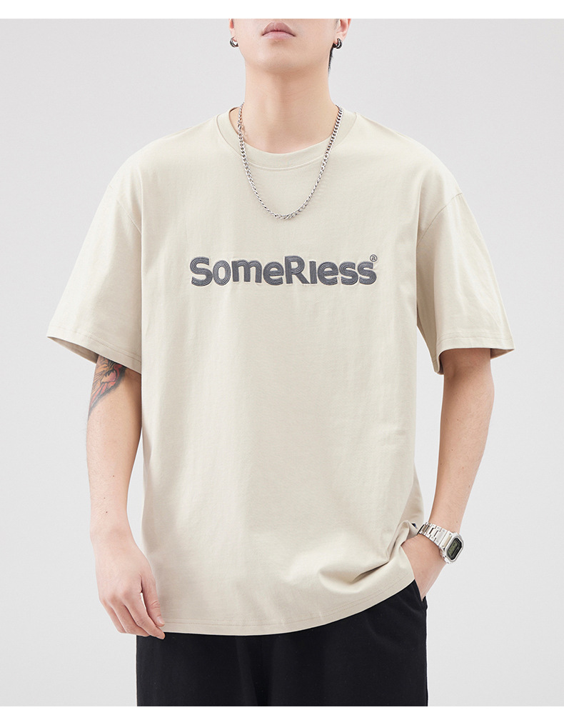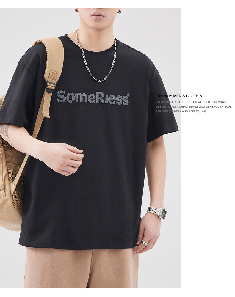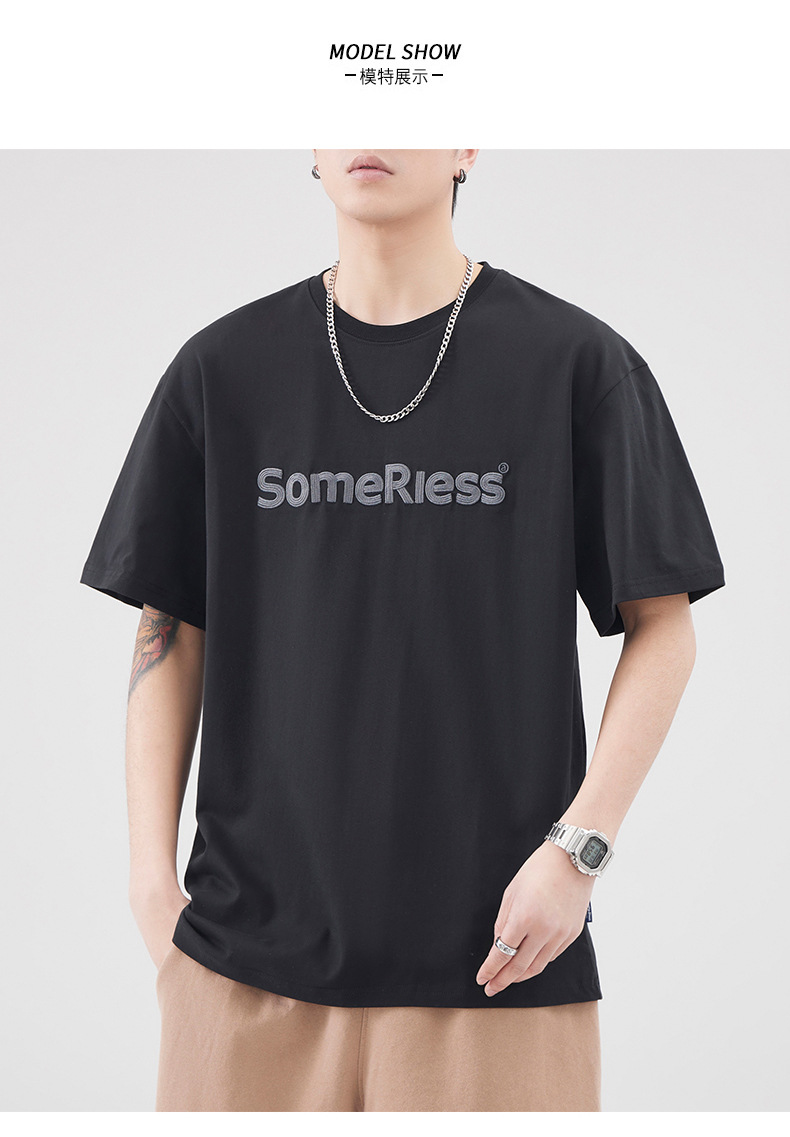 重磅纯棉短袖t恤男夏季宽松潮流刺绣半袖休闲体恤圆领打底衫 AY-az8058【Z8058】