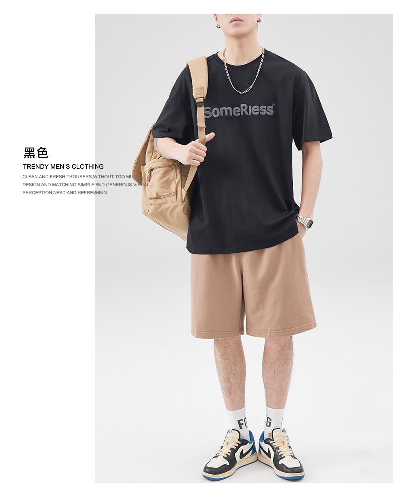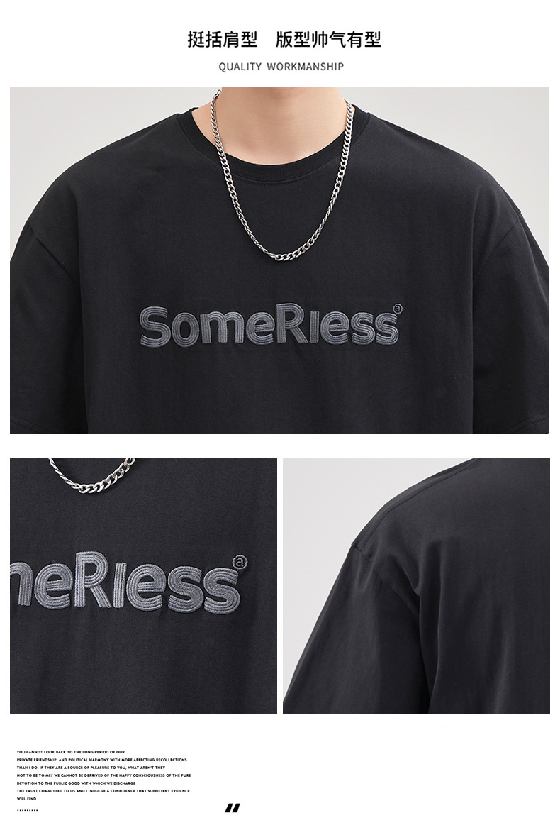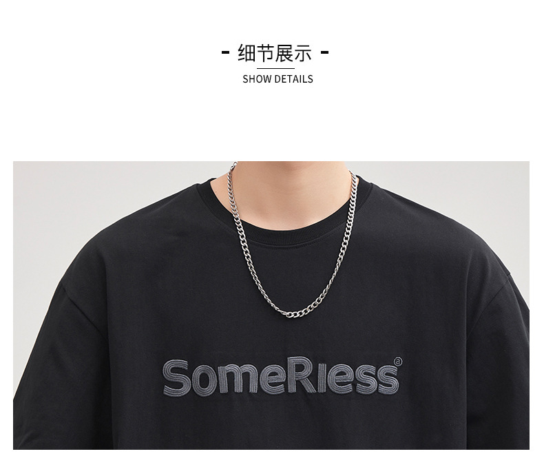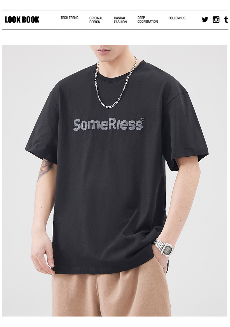重磅纯棉短袖t恤男夏季宽松潮流刺绣半袖休闲体恤圆领打底衫 AY-az8058【Z8058】