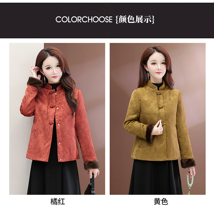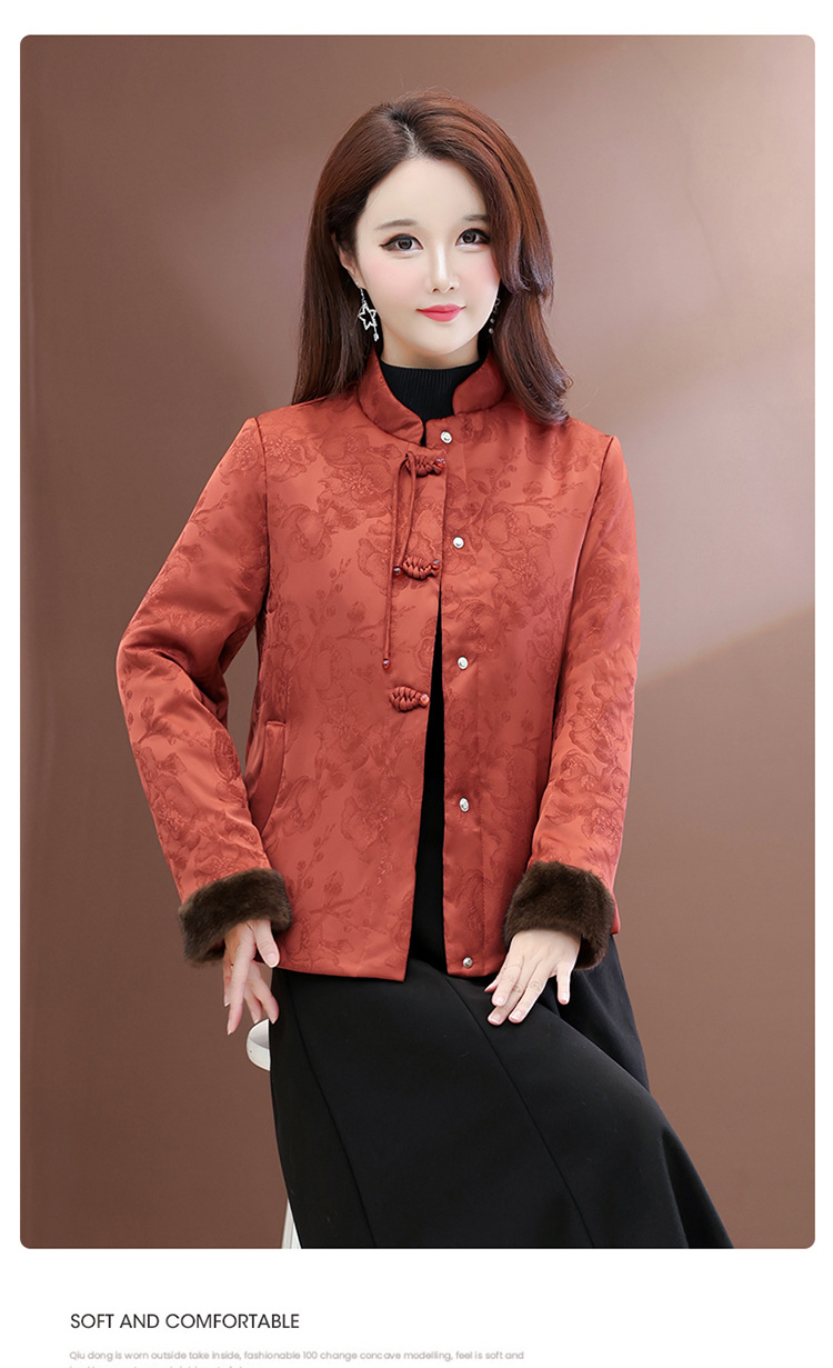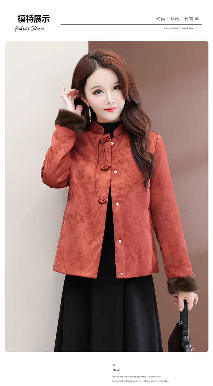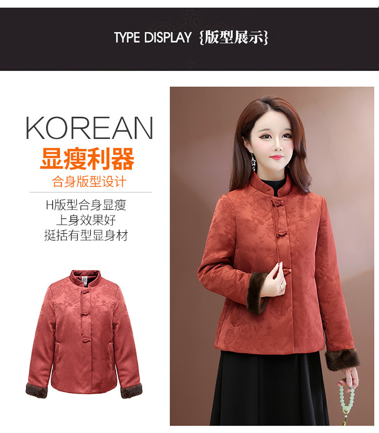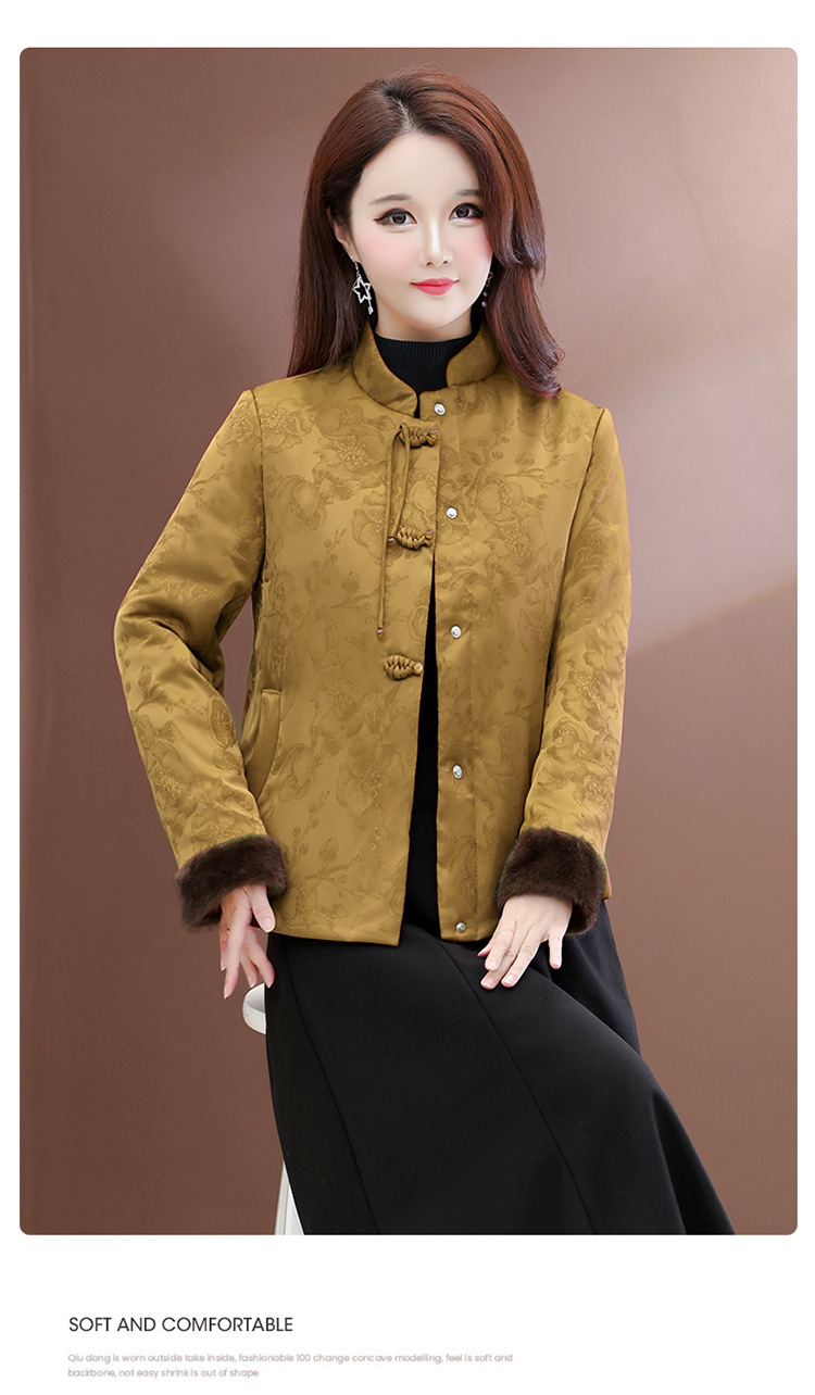 QYM 7258038-Y时尚棉衣印花国风复古盘扣棉服外套 商品图4
