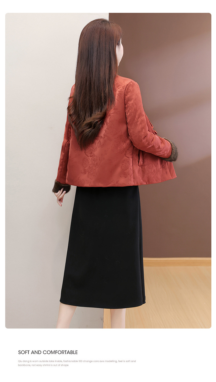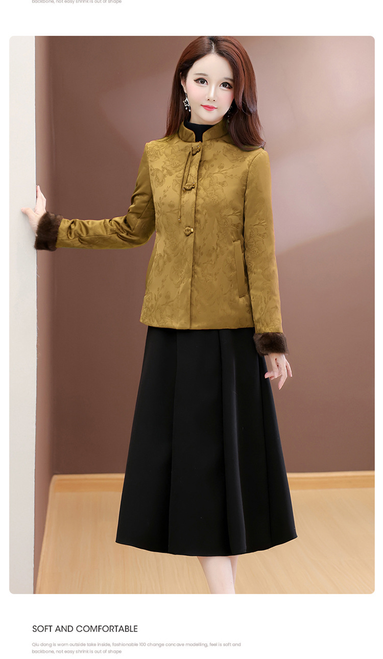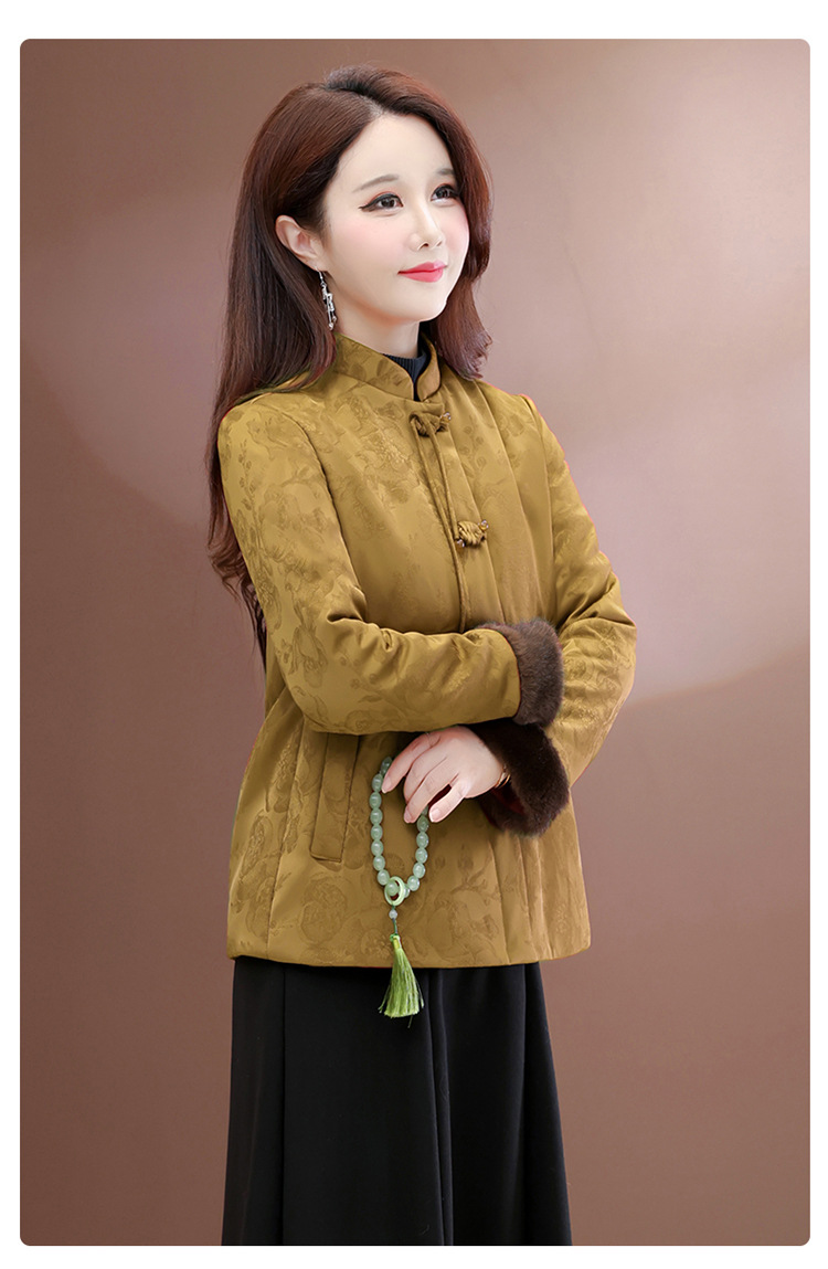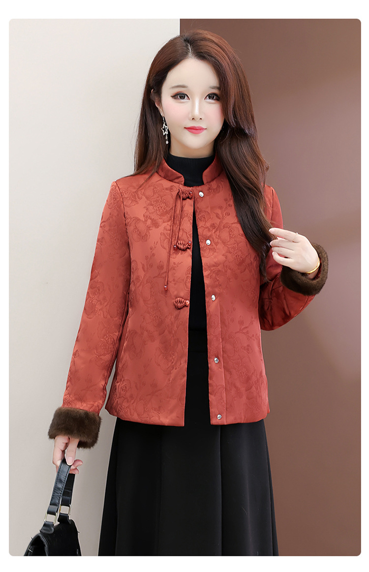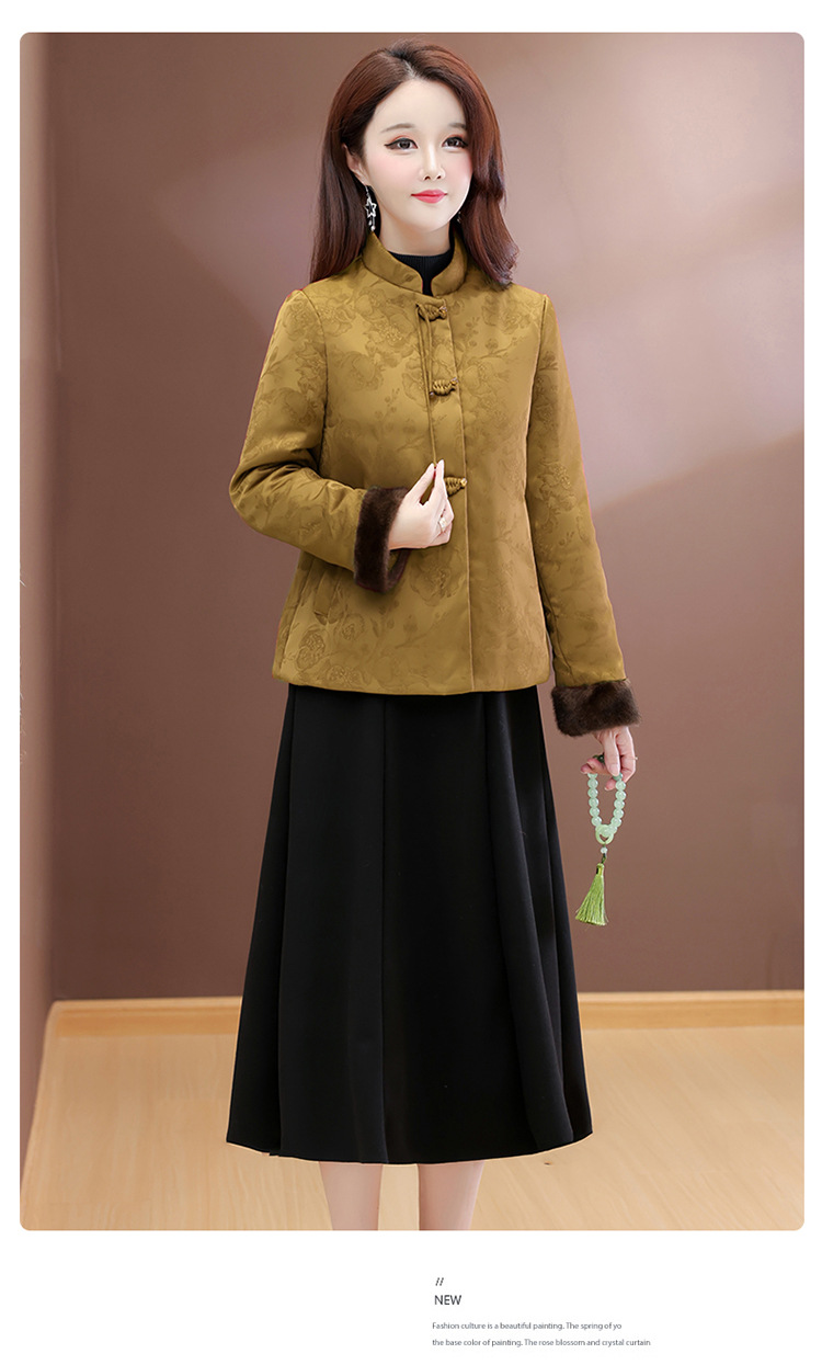 QYM 7258038-Y时尚棉衣印花国风复古盘扣棉服外套 商品图4