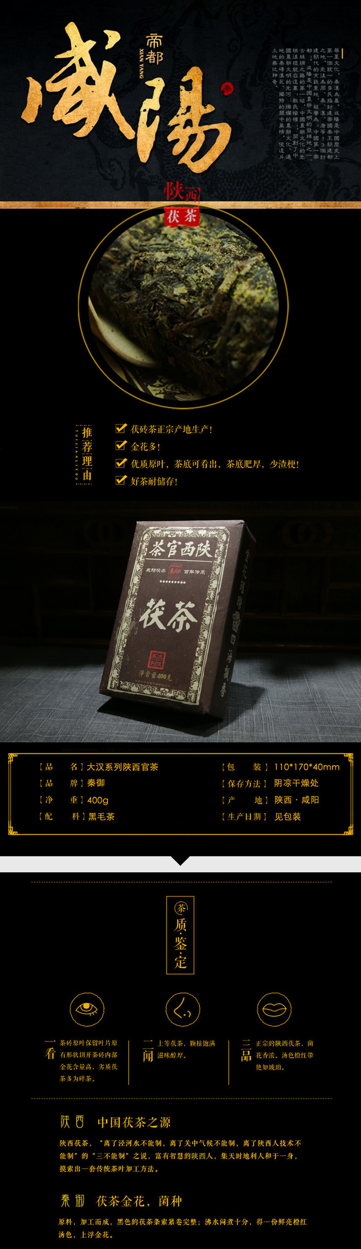 陕西官茶 (汉)秦御养生金花茯砖黑茶 400g