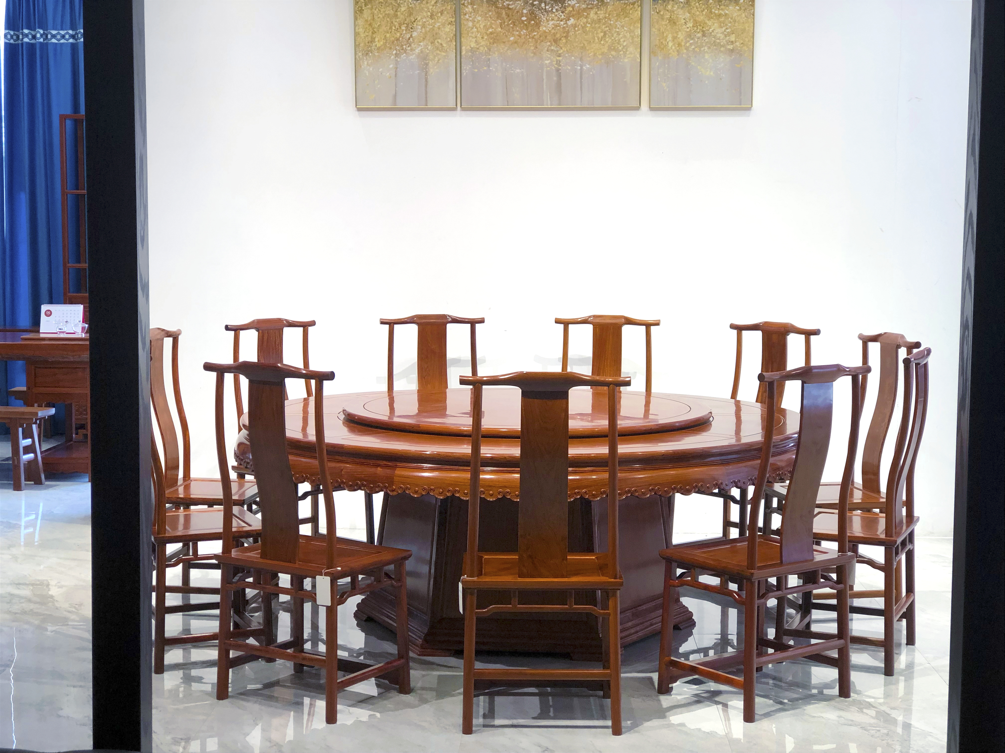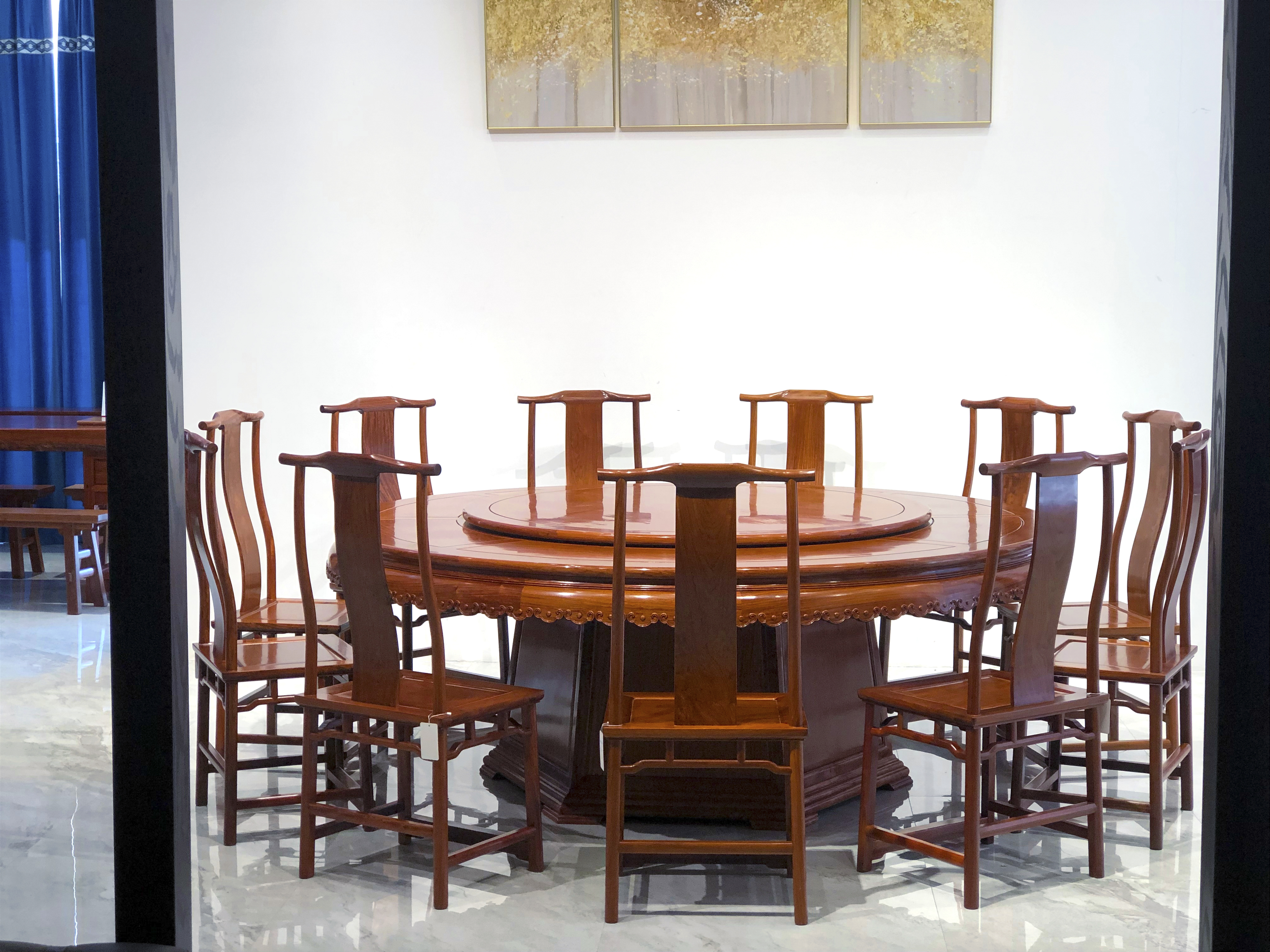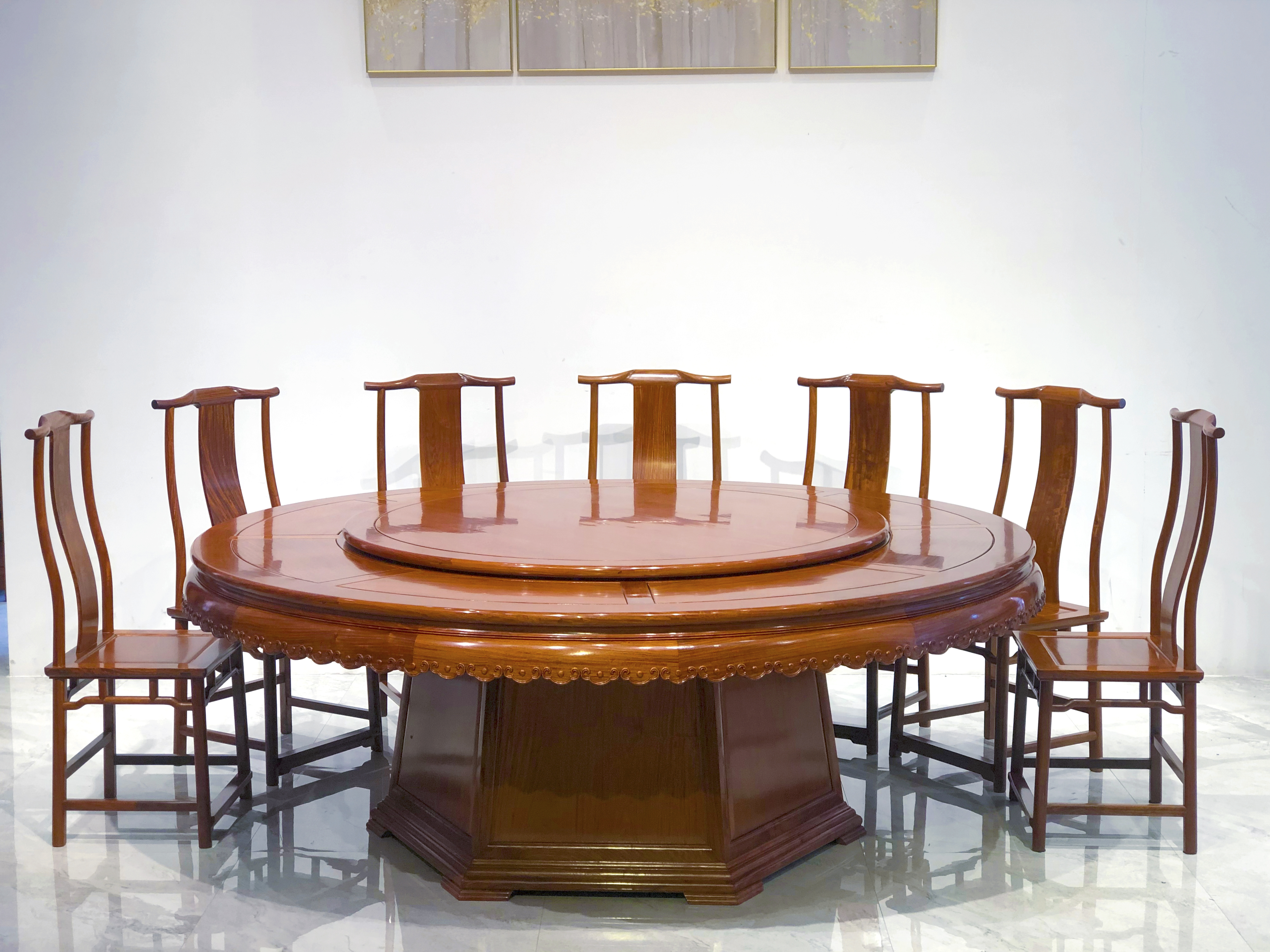 218雕花牙边圆餐桌