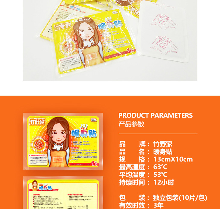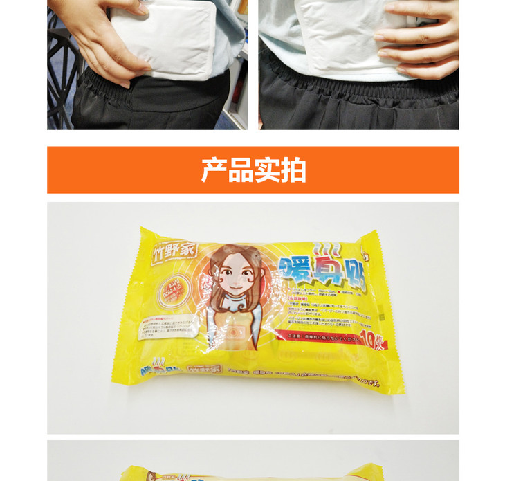 现货 日本竹野家暖身贴防寒自发热持久发热12小时暖宝宝贴保暖全身暖宫10片*3包