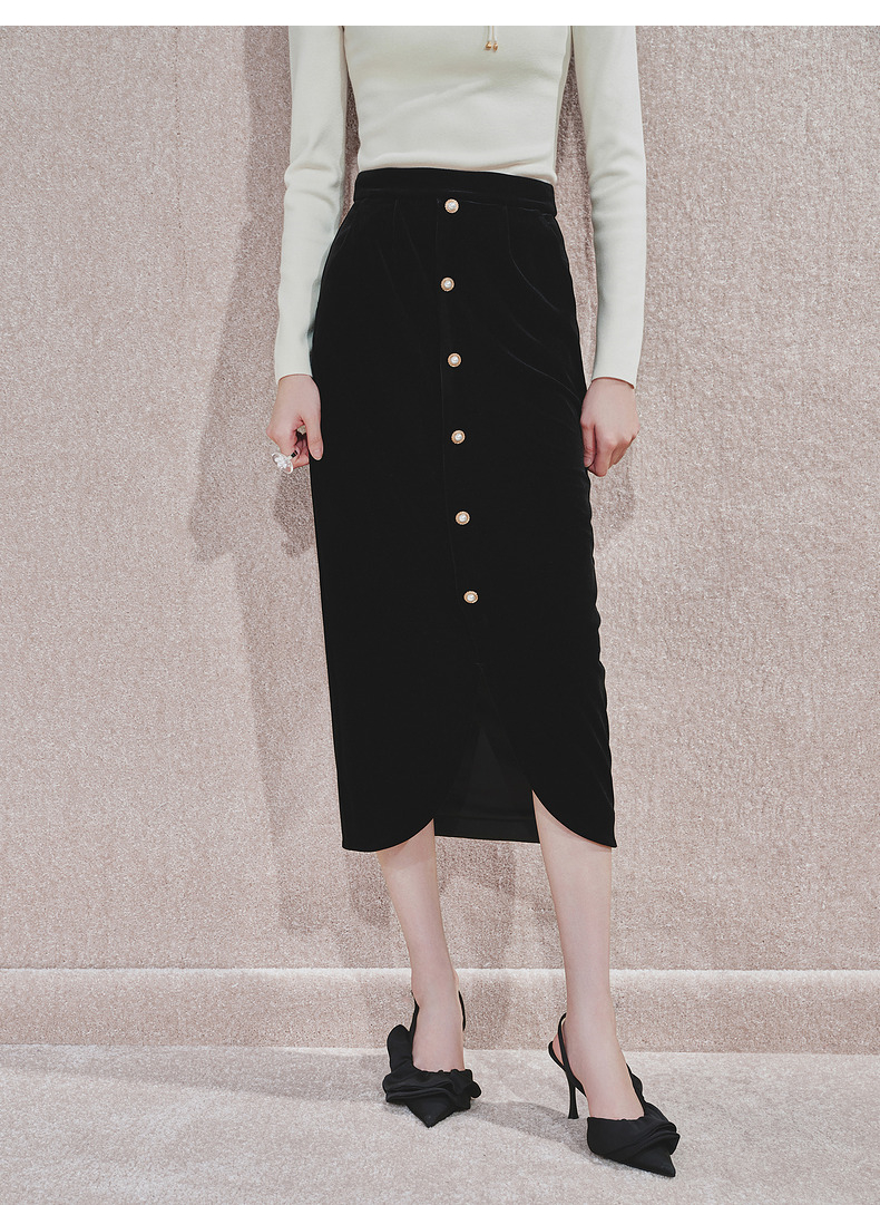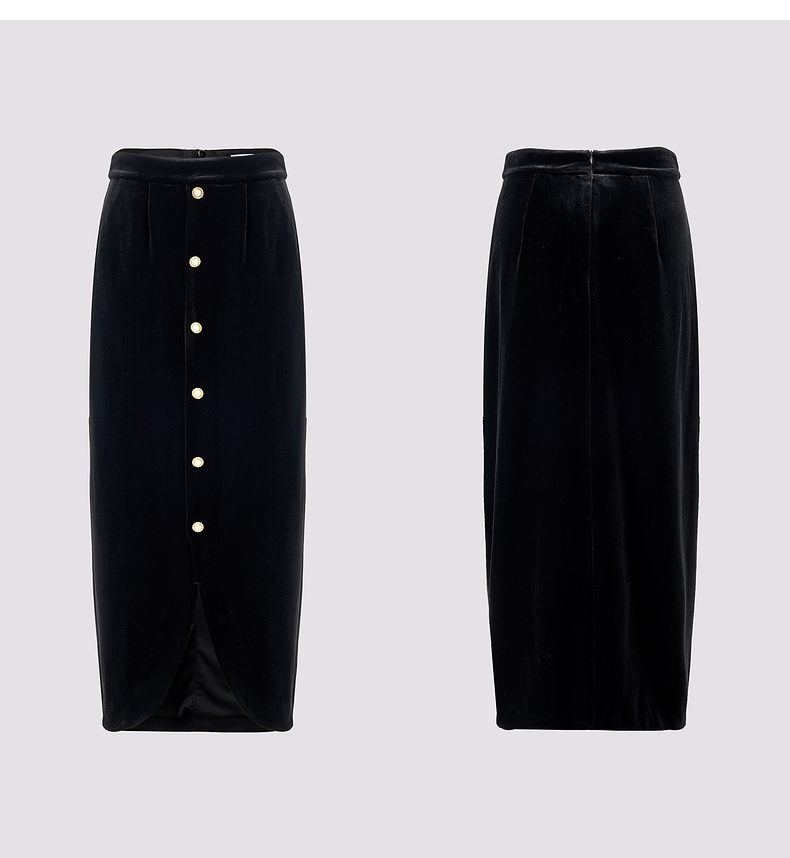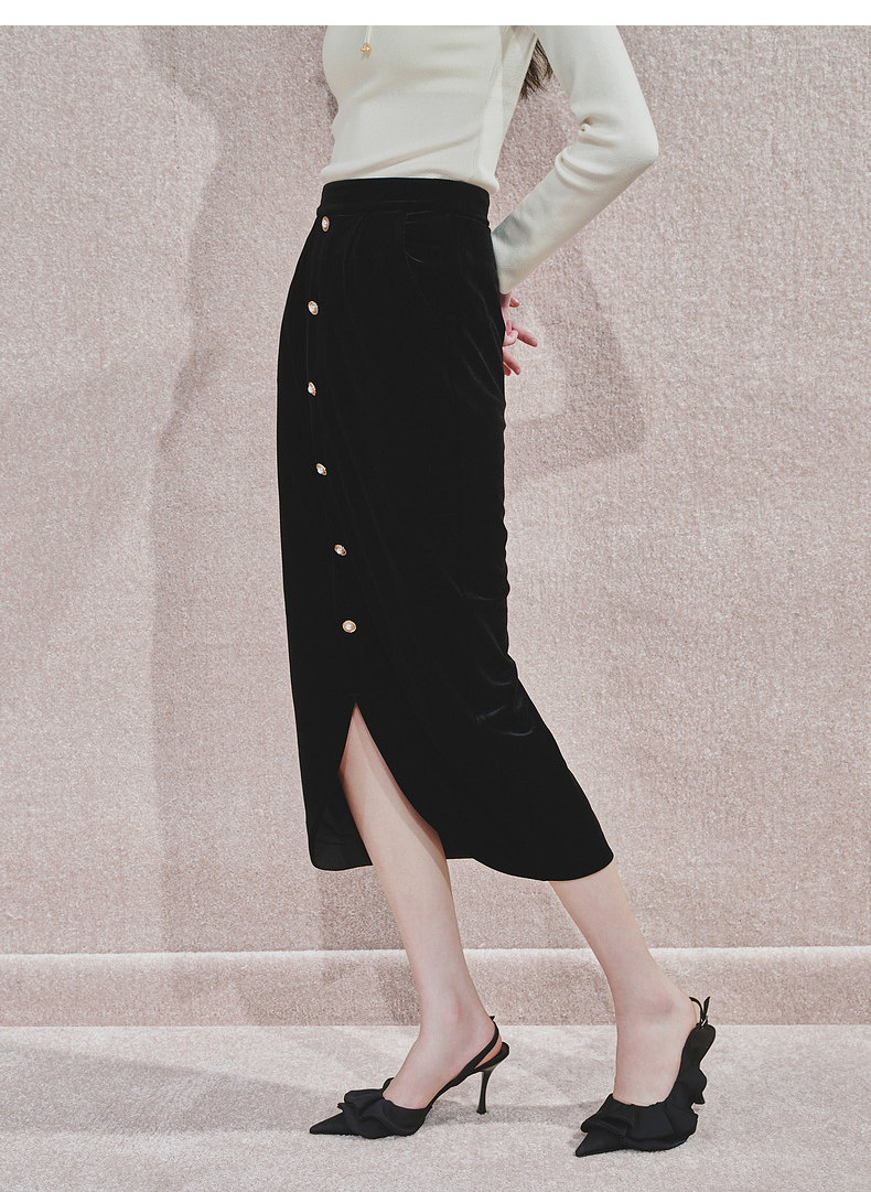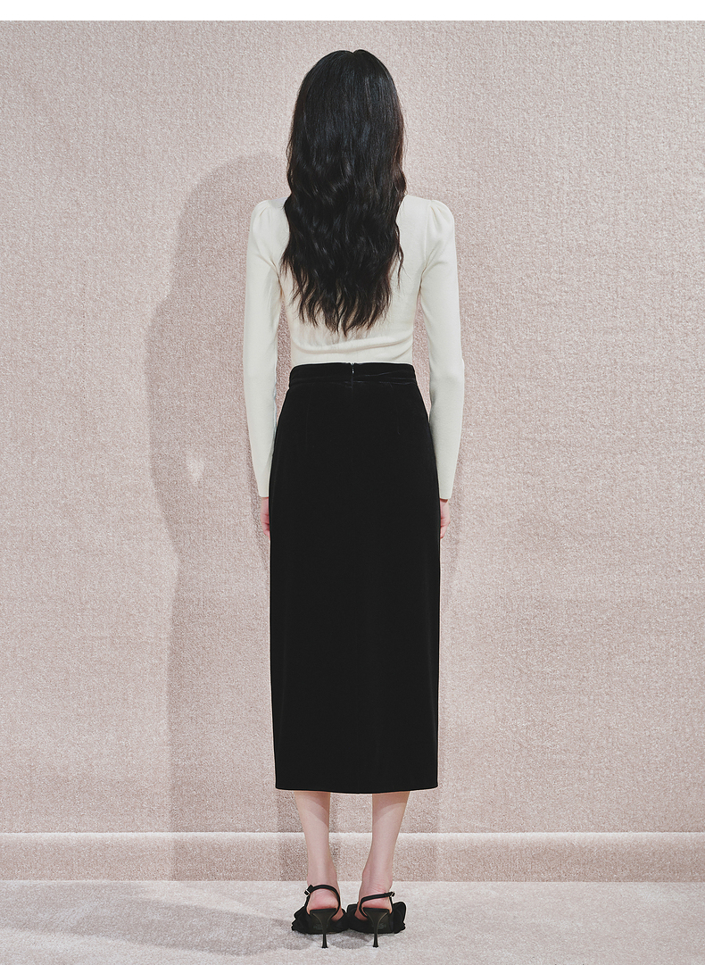 【商场同款】MAXRIENY精致复古感丝绒半裙24冬新款高腰修身开叉裙(货号:MS85SK761)