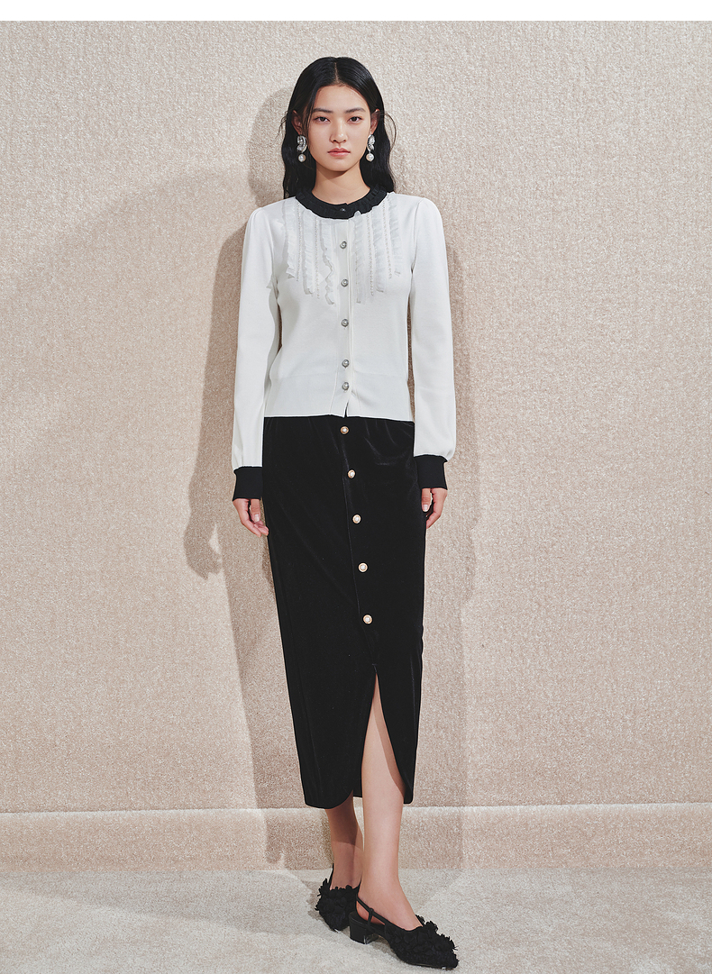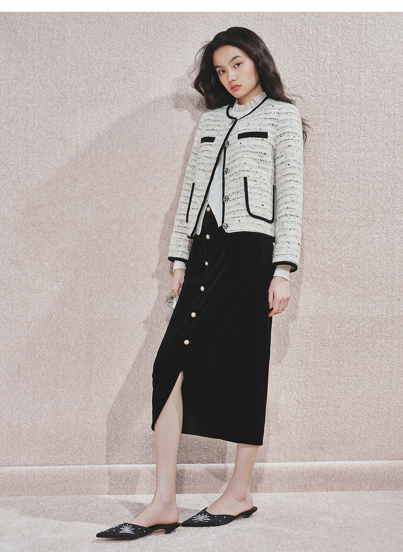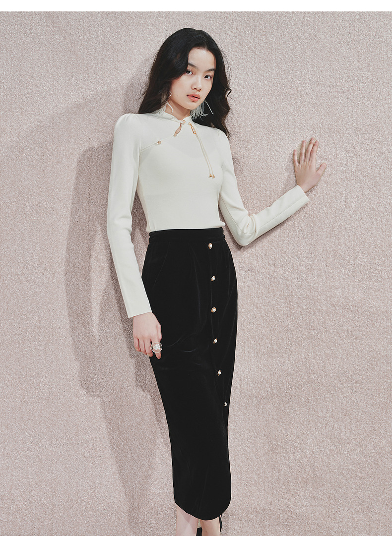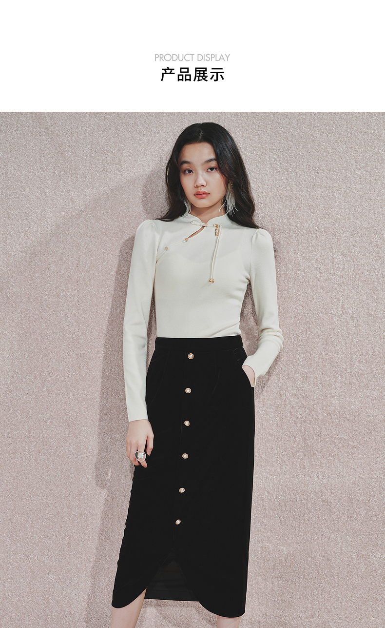 【商场同款】MAXRIENY精致复古感丝绒半裙24冬新款高腰修身开叉裙(货号:MS85SK761)