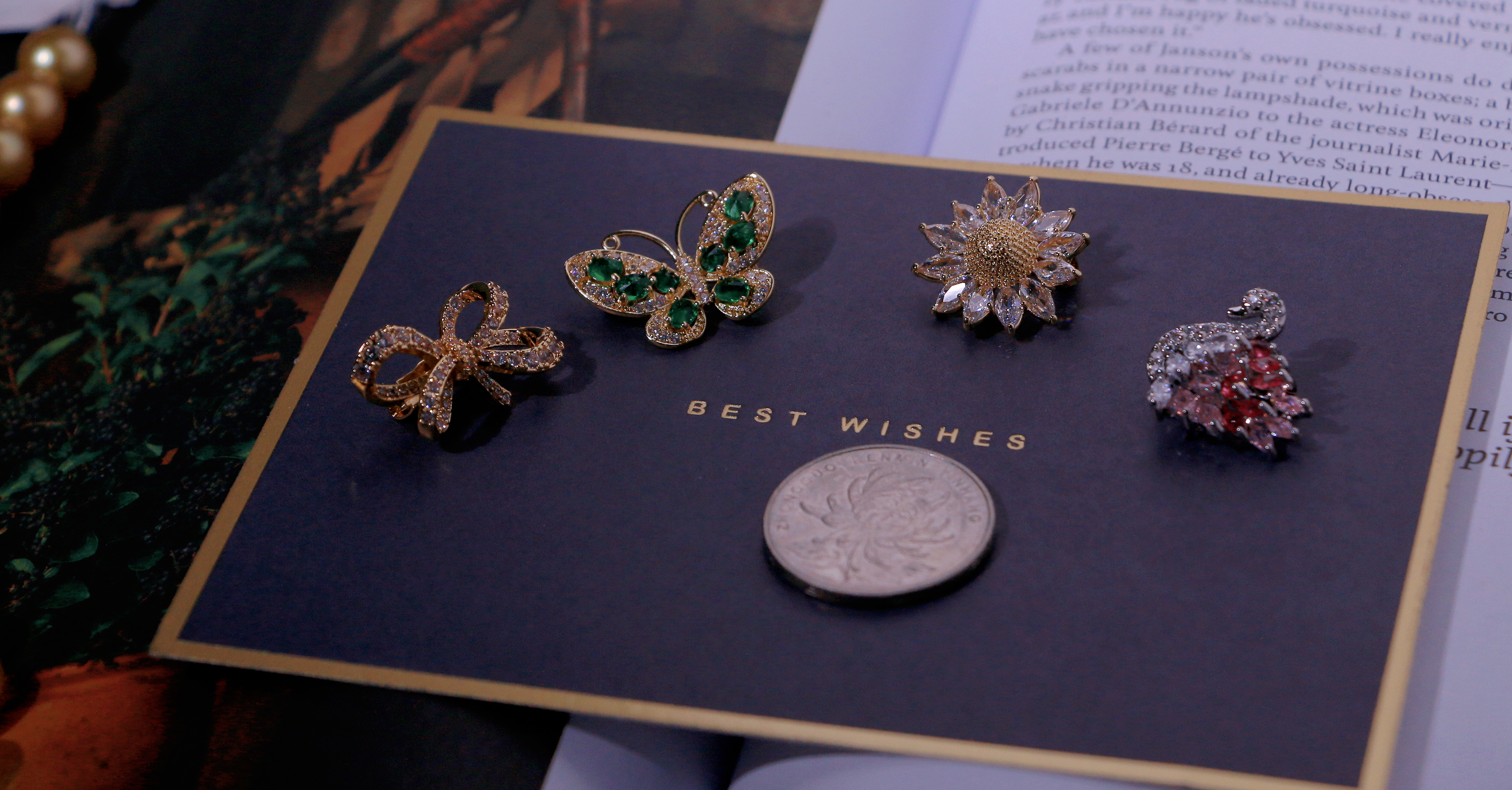 一共有4个款式可以选择,金色系的蝴蝶结和太阳花,绿色系的蝴蝶和粉色系的天鹅,蝴蝶结和太阳花是相对百搭不出错的,想要特别复古一点的推荐入手蝴蝶和天鹅哦!