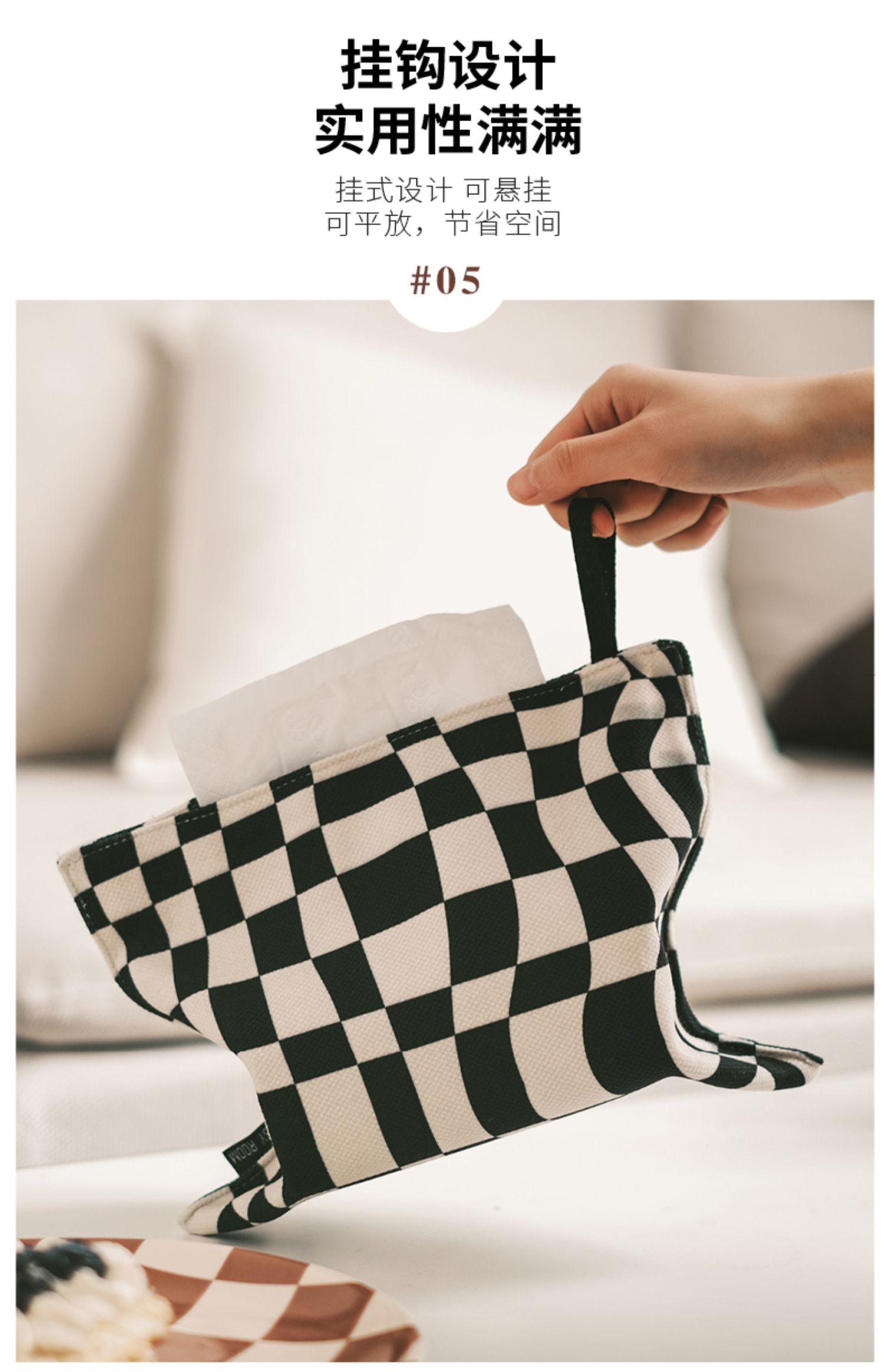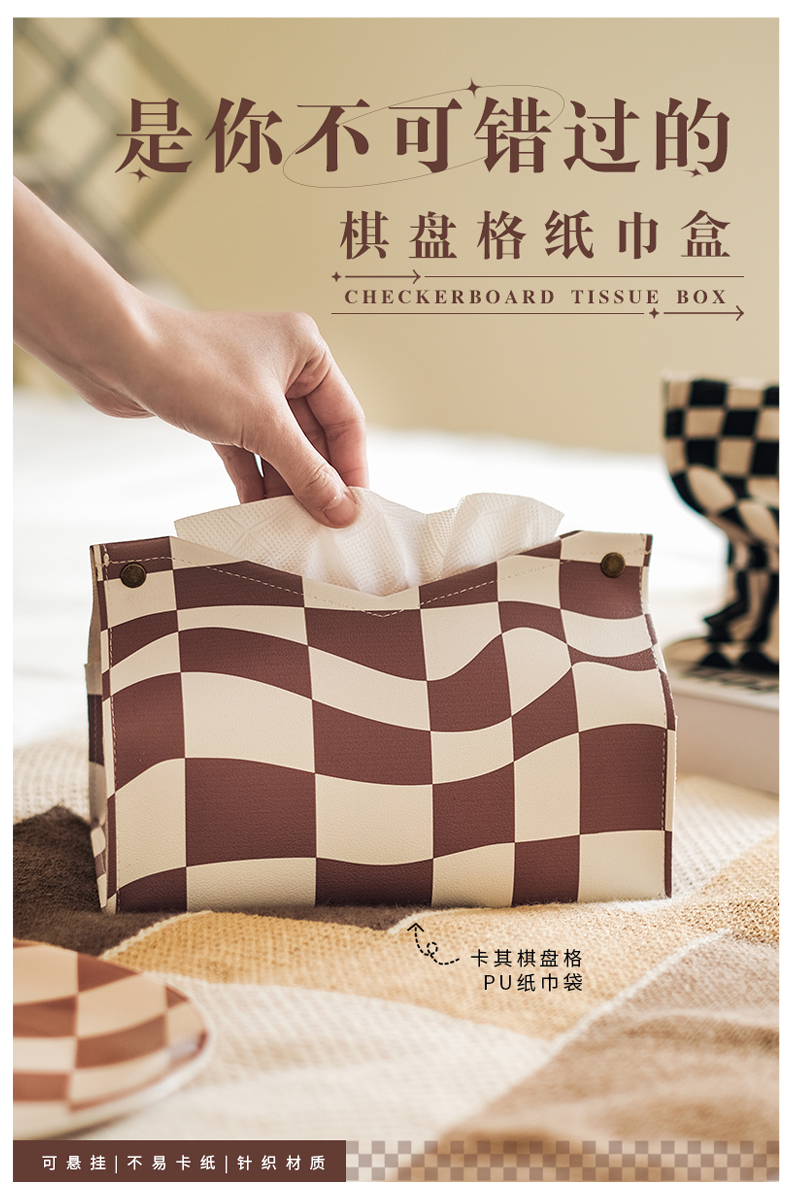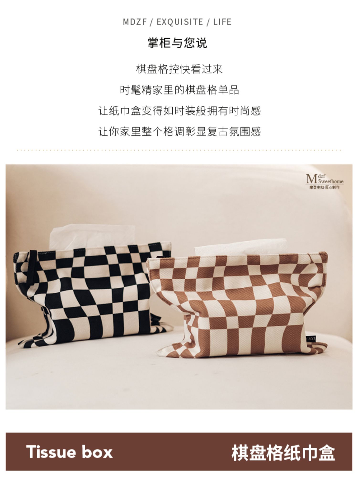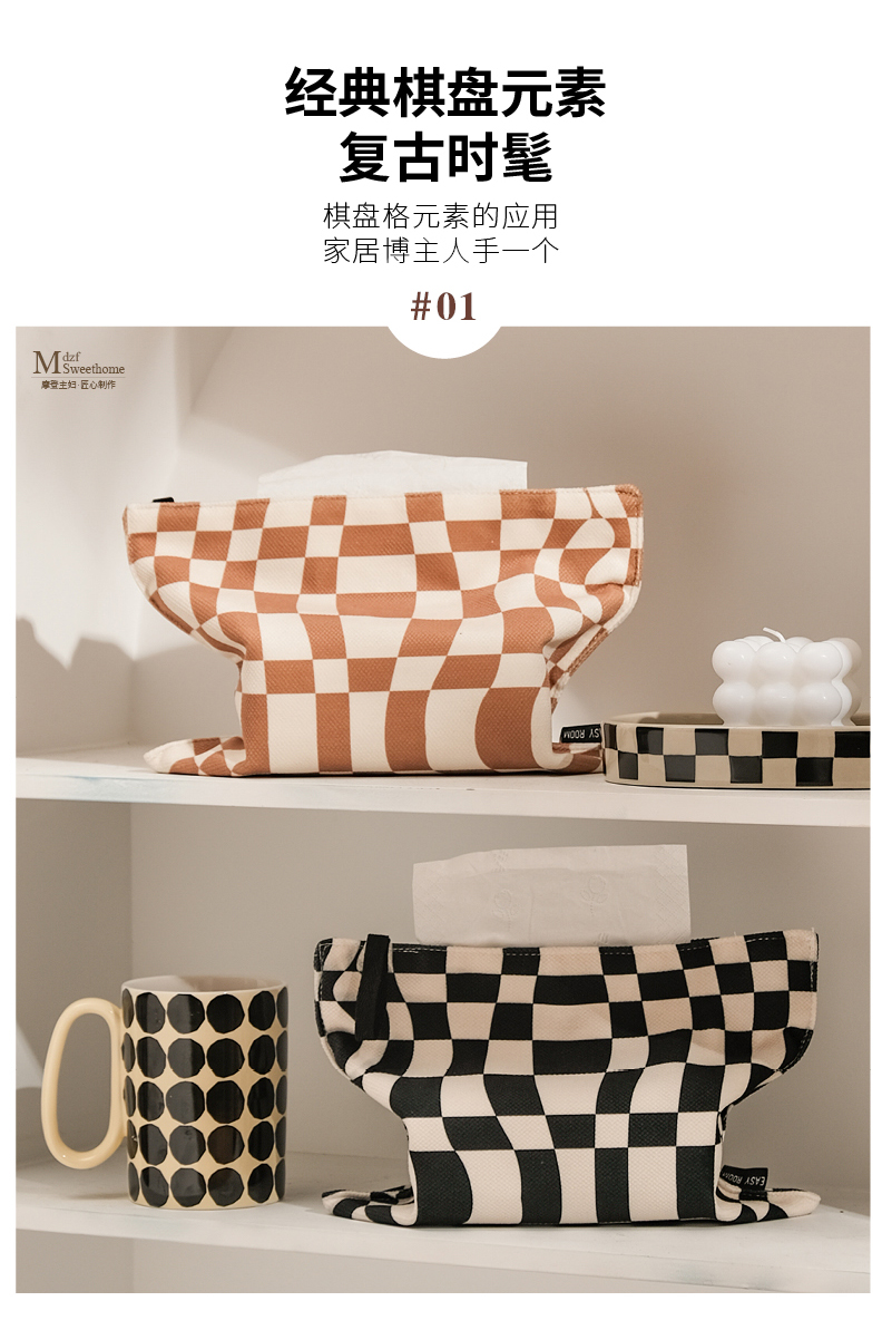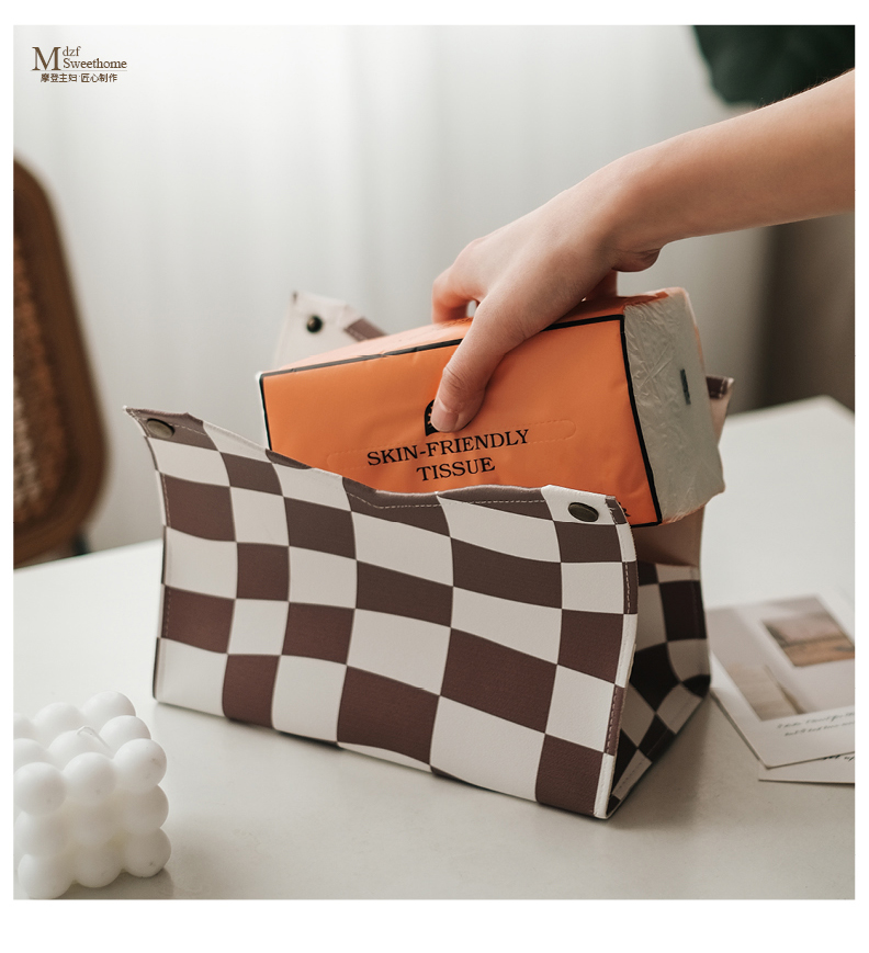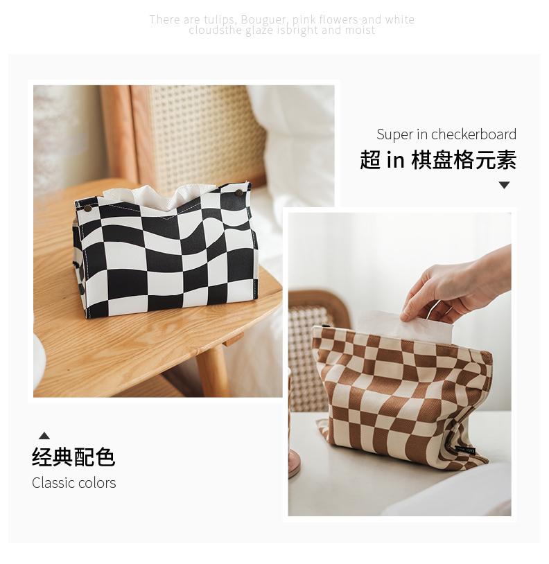 摩登主妇棋盘格纸巾盒客厅餐桌轻奢高档新款纸巾袋创意车载抽纸盒