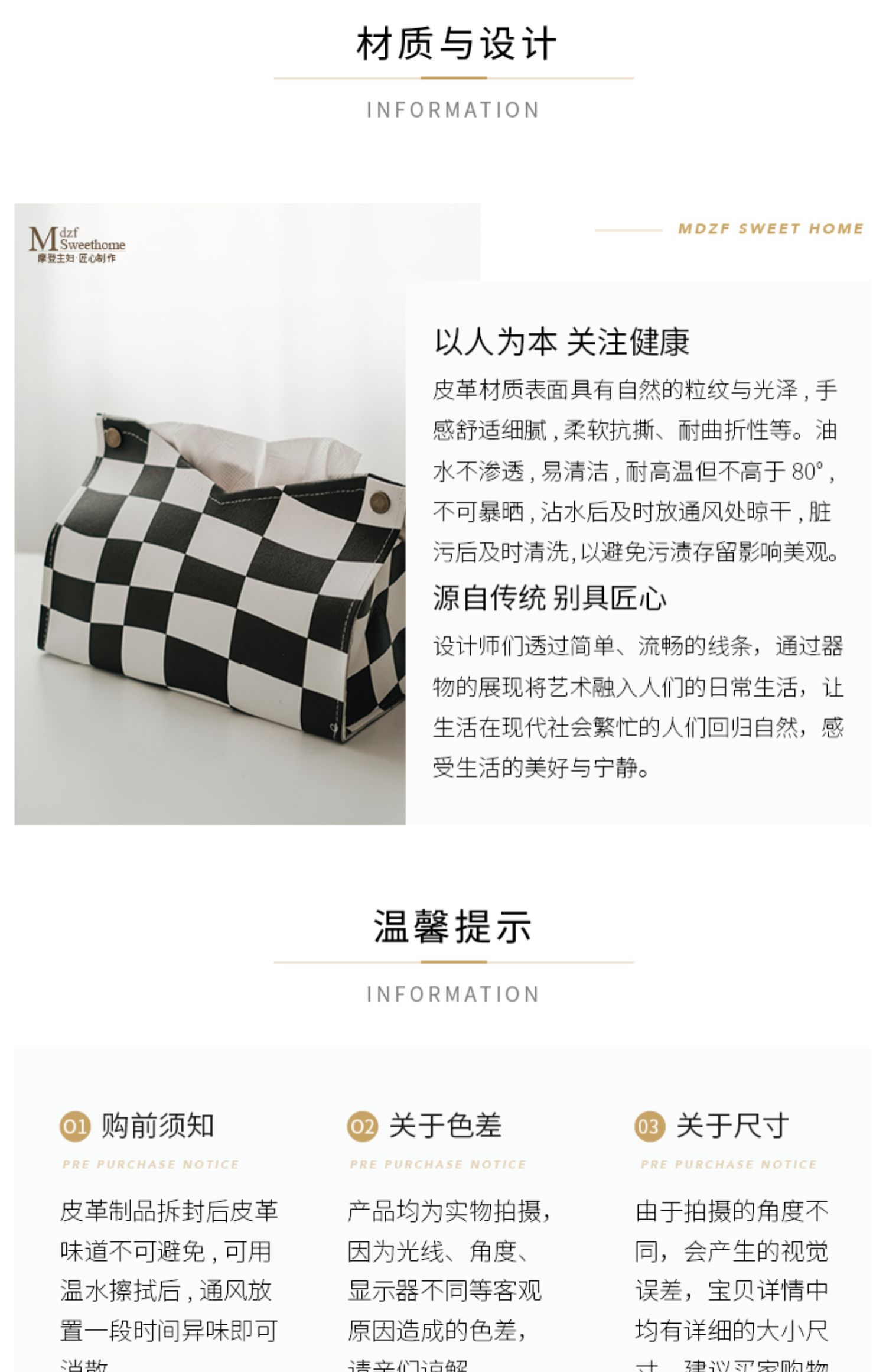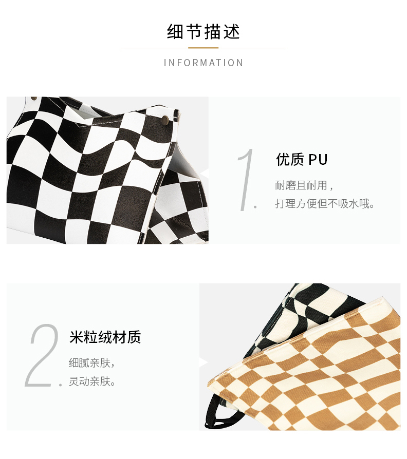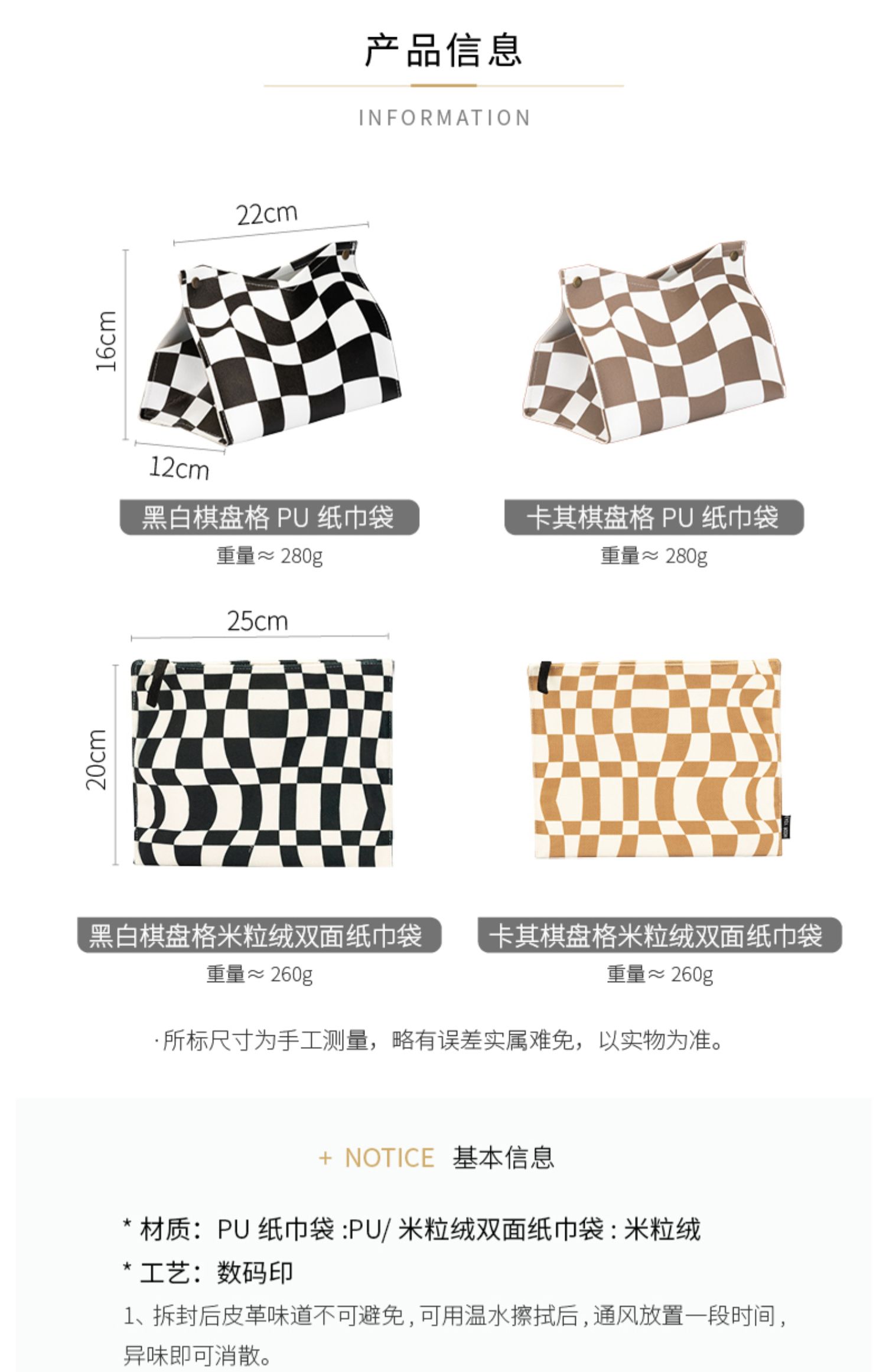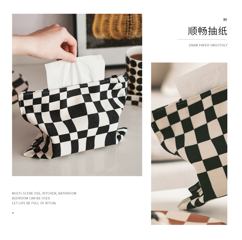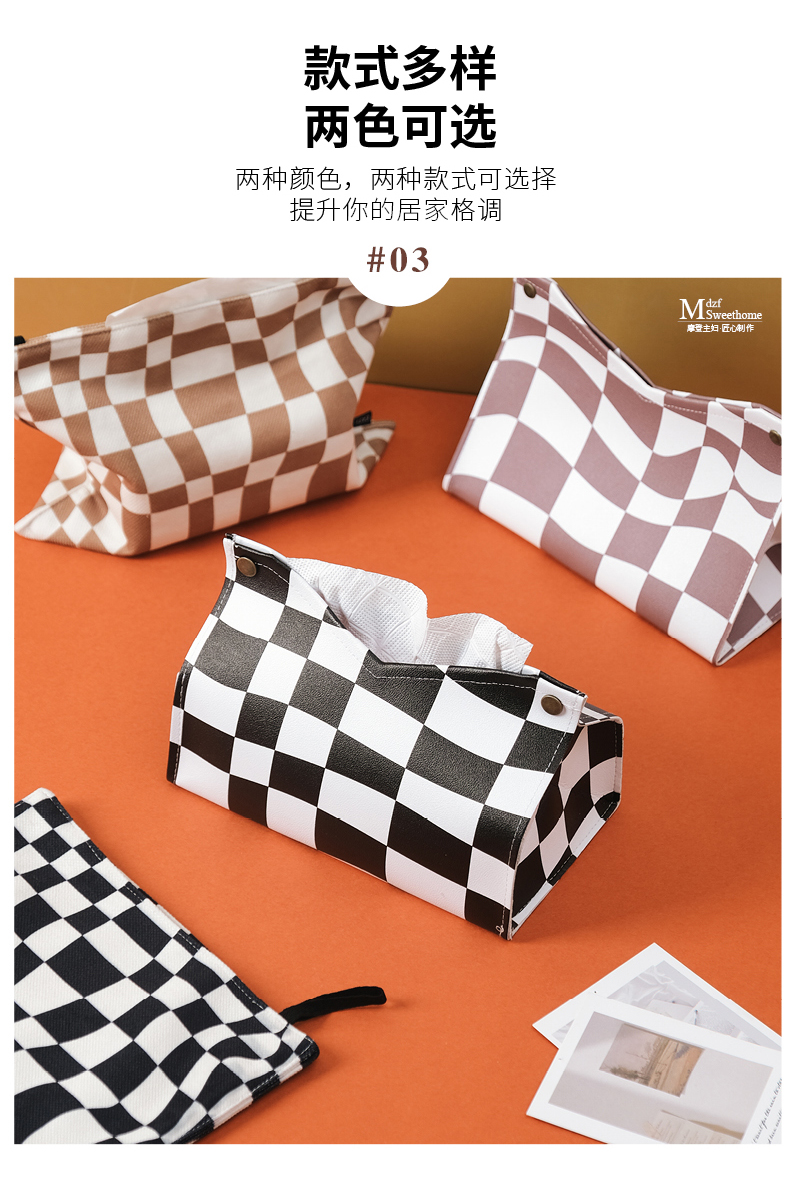 摩登主妇棋盘格纸巾盒客厅餐桌轻奢高档新款纸巾袋创意车载抽纸盒