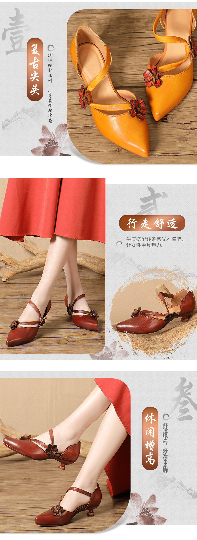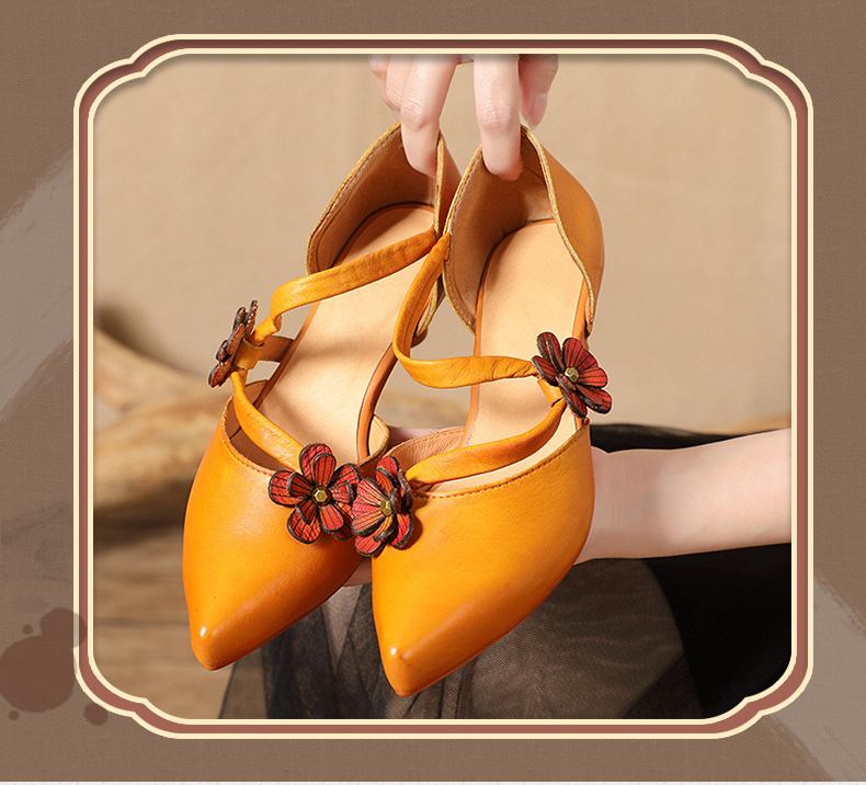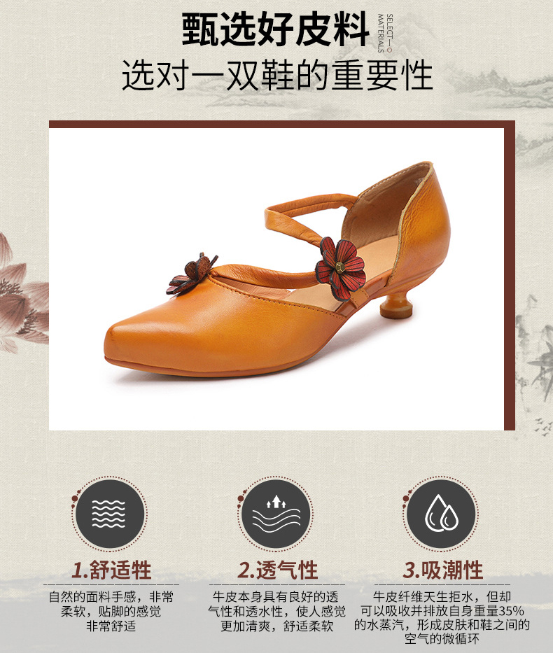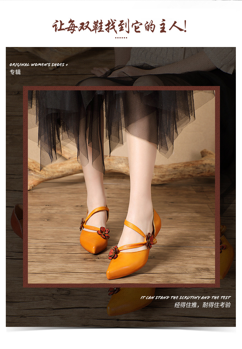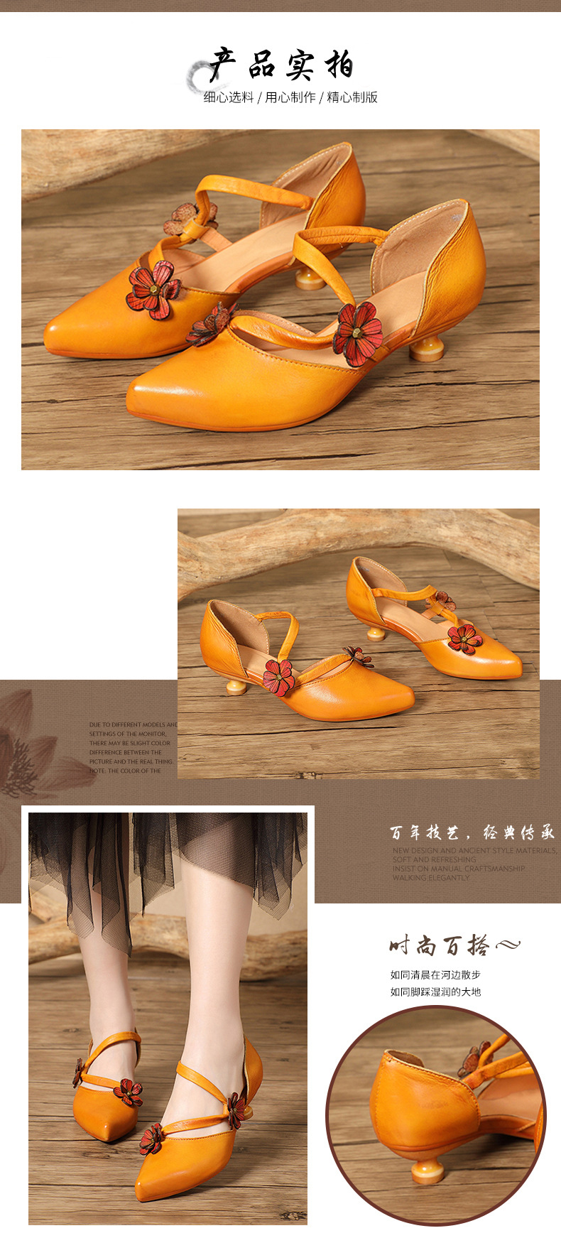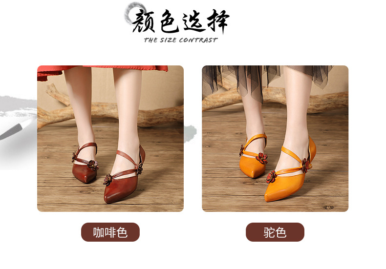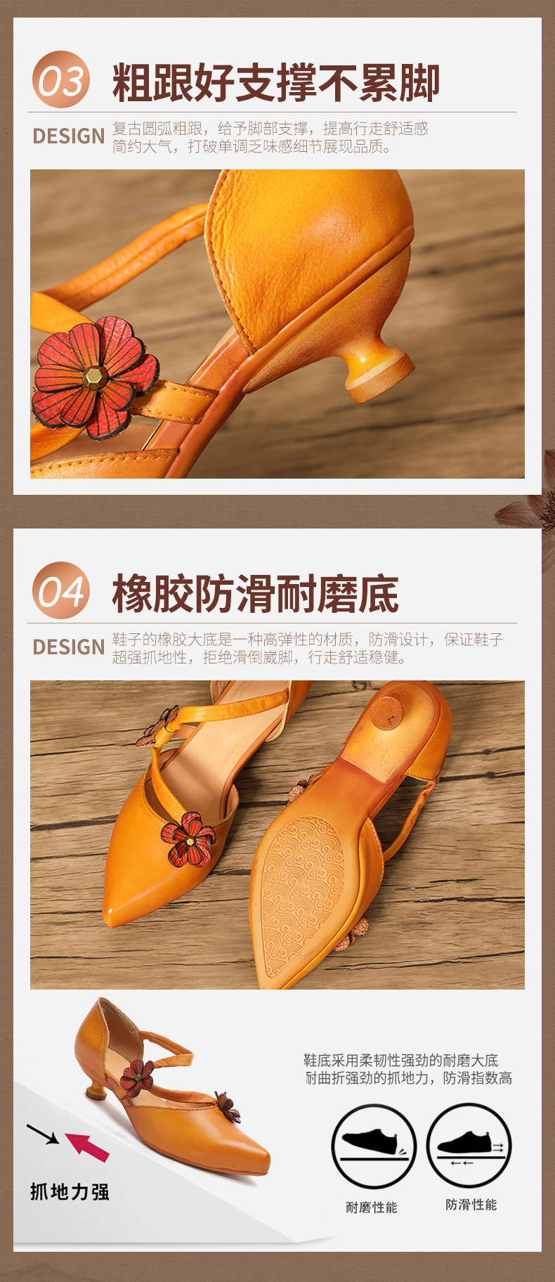 春夏新款,手工女鞋低跟尖头女鞋花朵文艺系中空凉鞋BC-011
