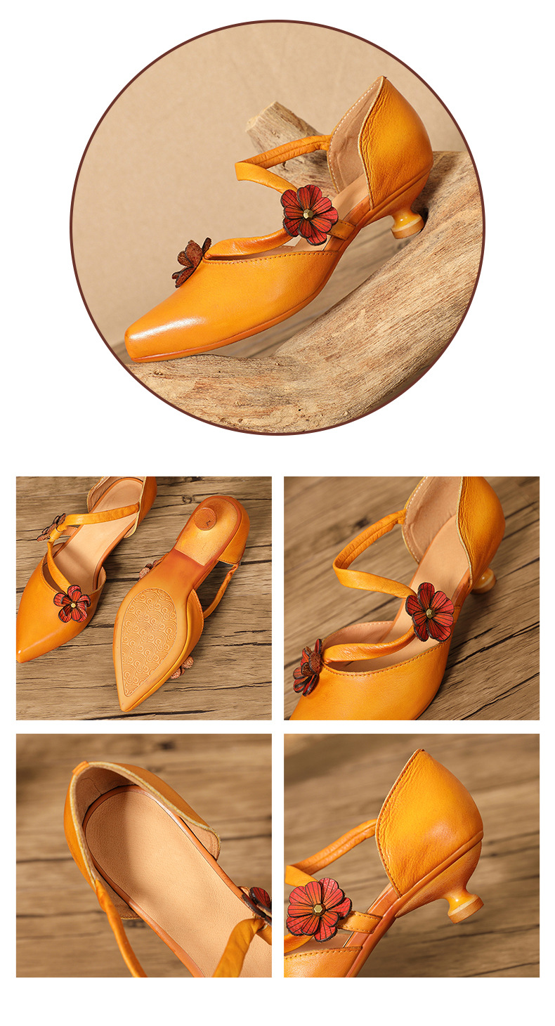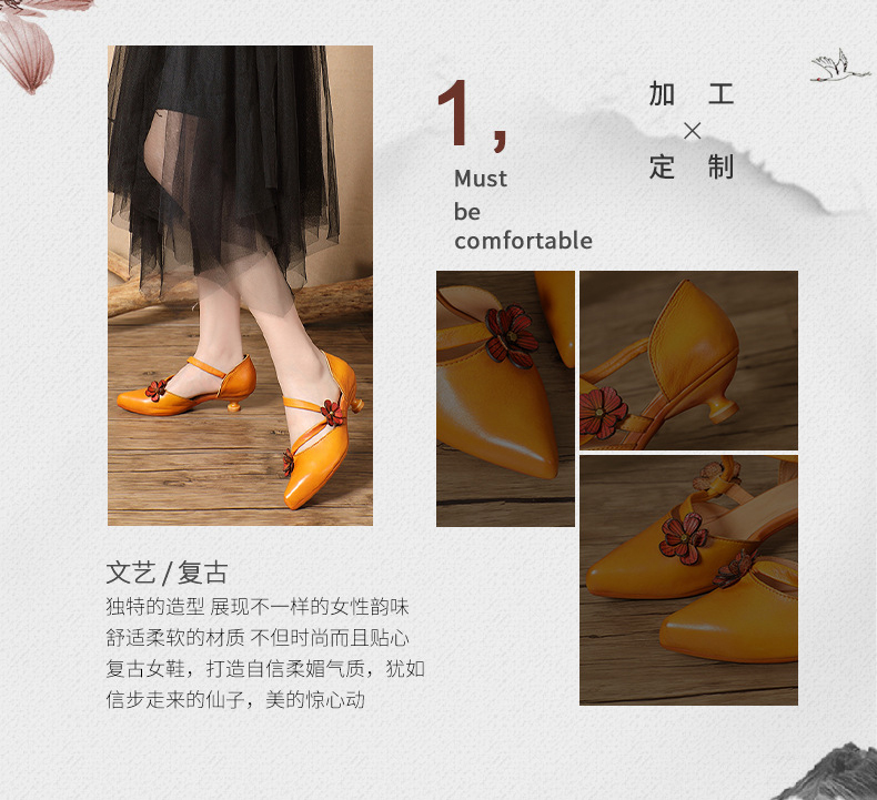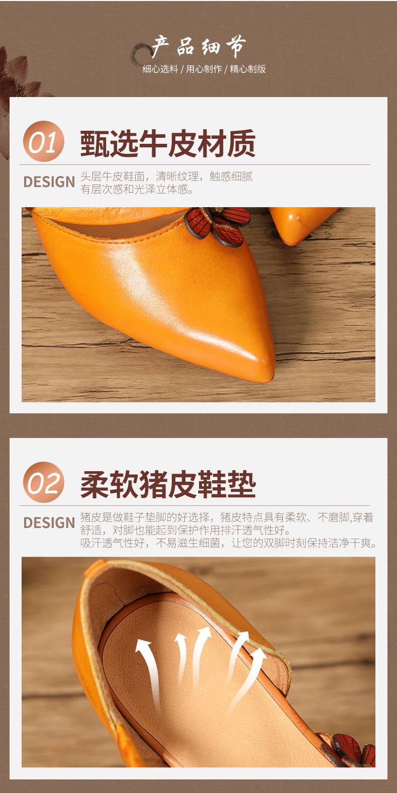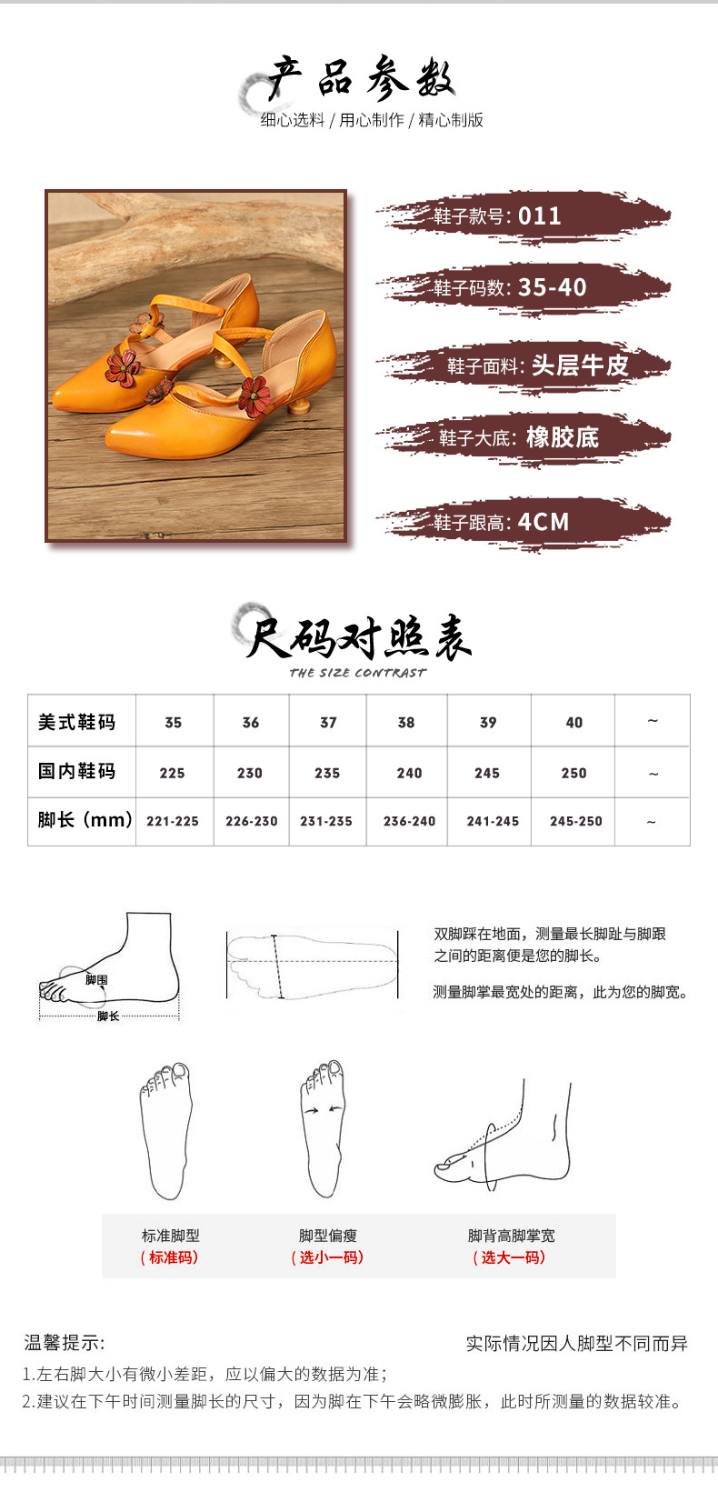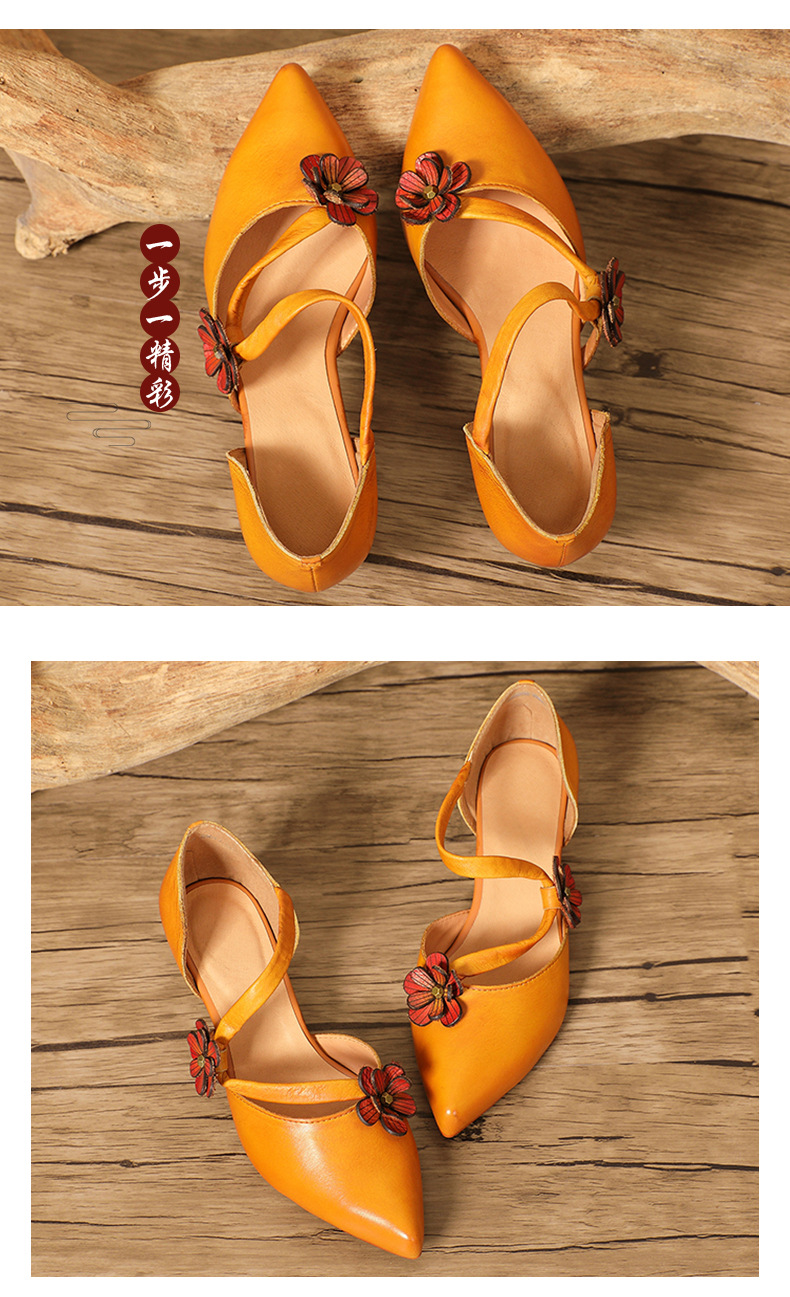 春夏新款,手工女鞋低跟尖头女鞋花朵文艺系中空凉鞋BC-011