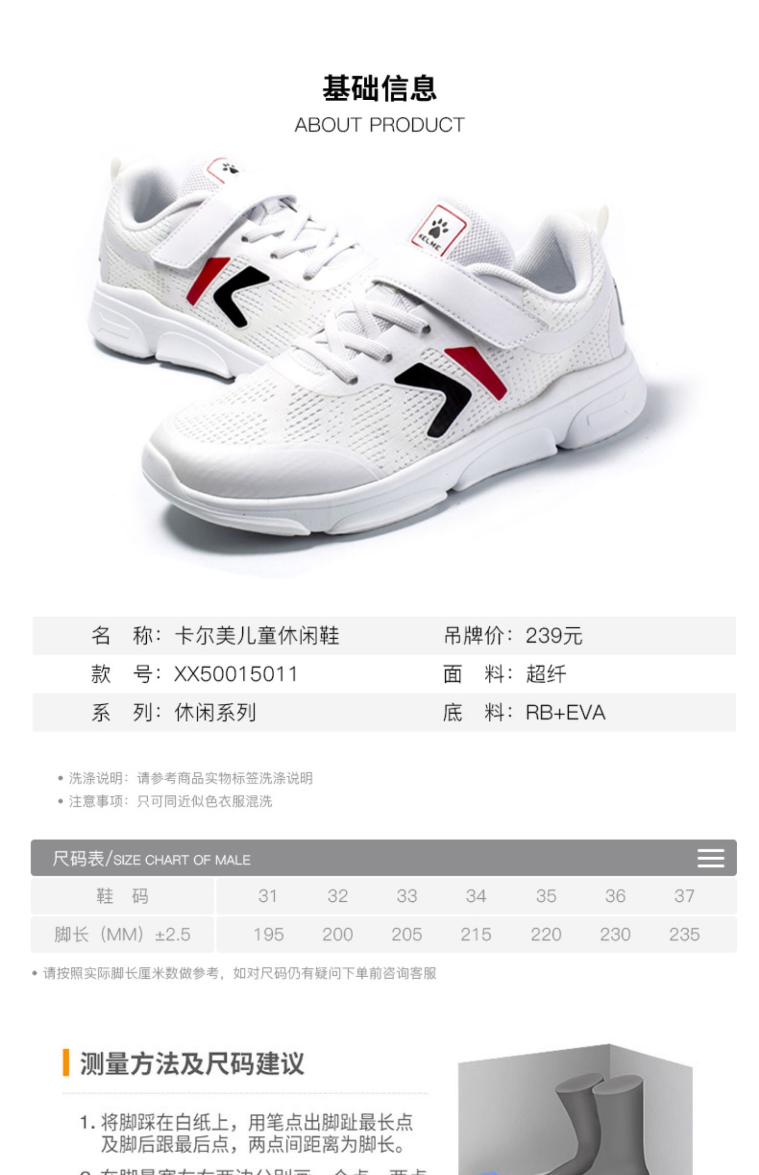 KIDS卡尔美童鞋运动鞋男童夏季新款休闲鞋儿童女跑步鞋