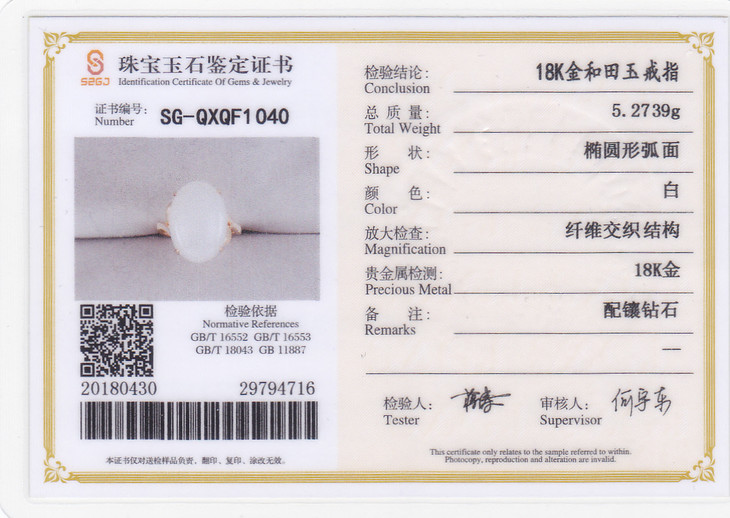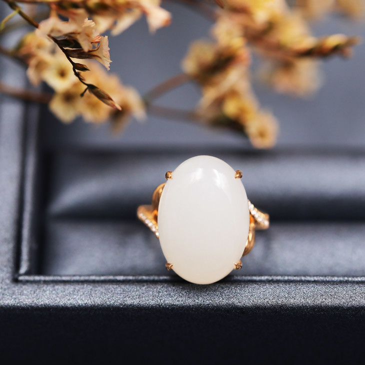 18K玫瑰金和田玉(白玉)镶钻戒指