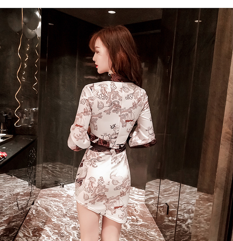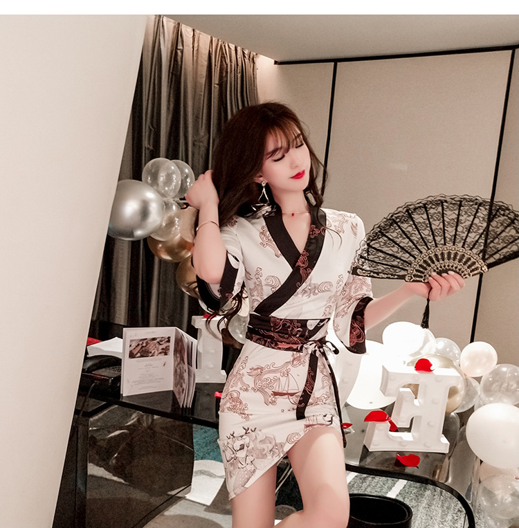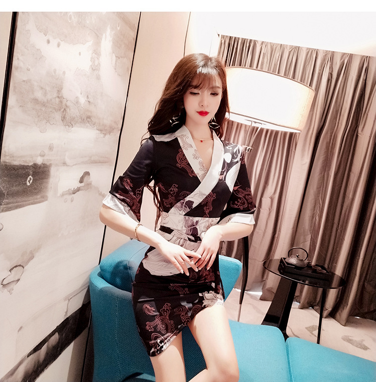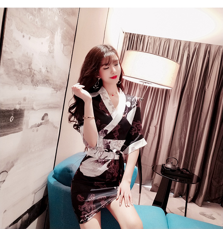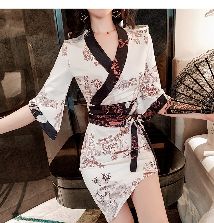 GY-3832(送腰封)实拍性感美人鱼花型不规则改良和服连衣裙新品WY