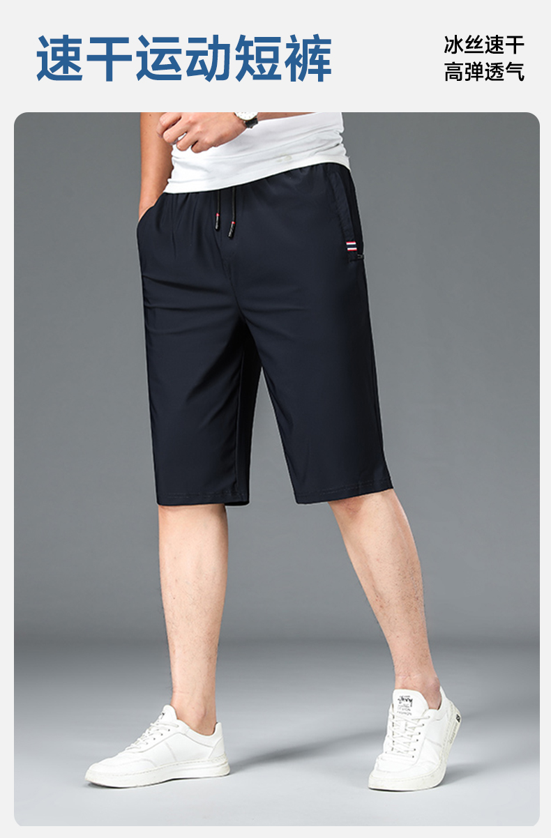 【新款DZP】大依优型休闲五分裤冰丝速干短裤大号裤子弹力透气加肥加大夏季松紧腰宽松运动短裤沙滩裤