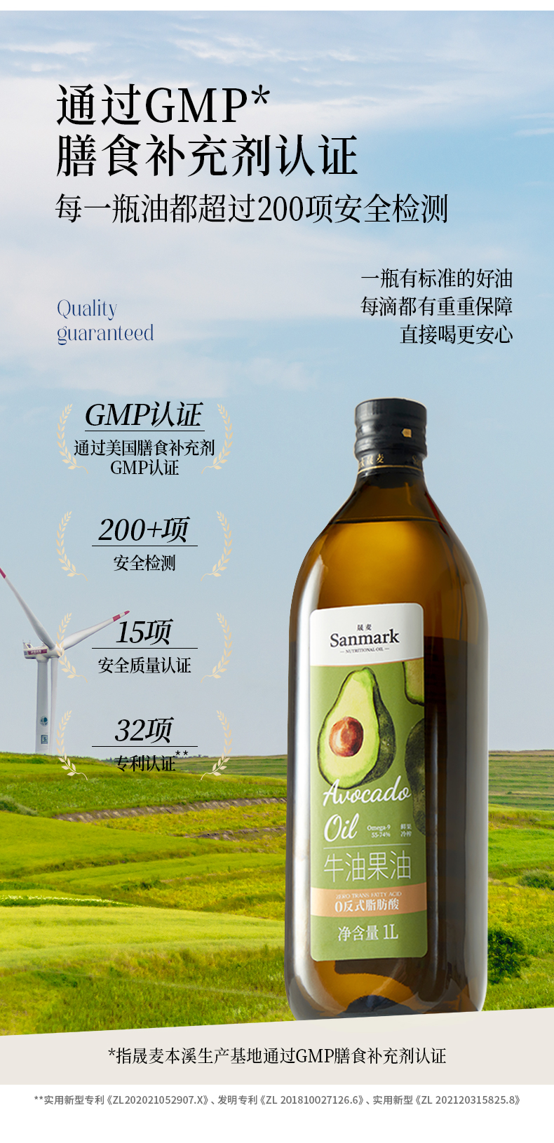 晟麦0反式牛油果油 1L装 低温冷榨食用油 鳄梨油 家庭装【热炒油】