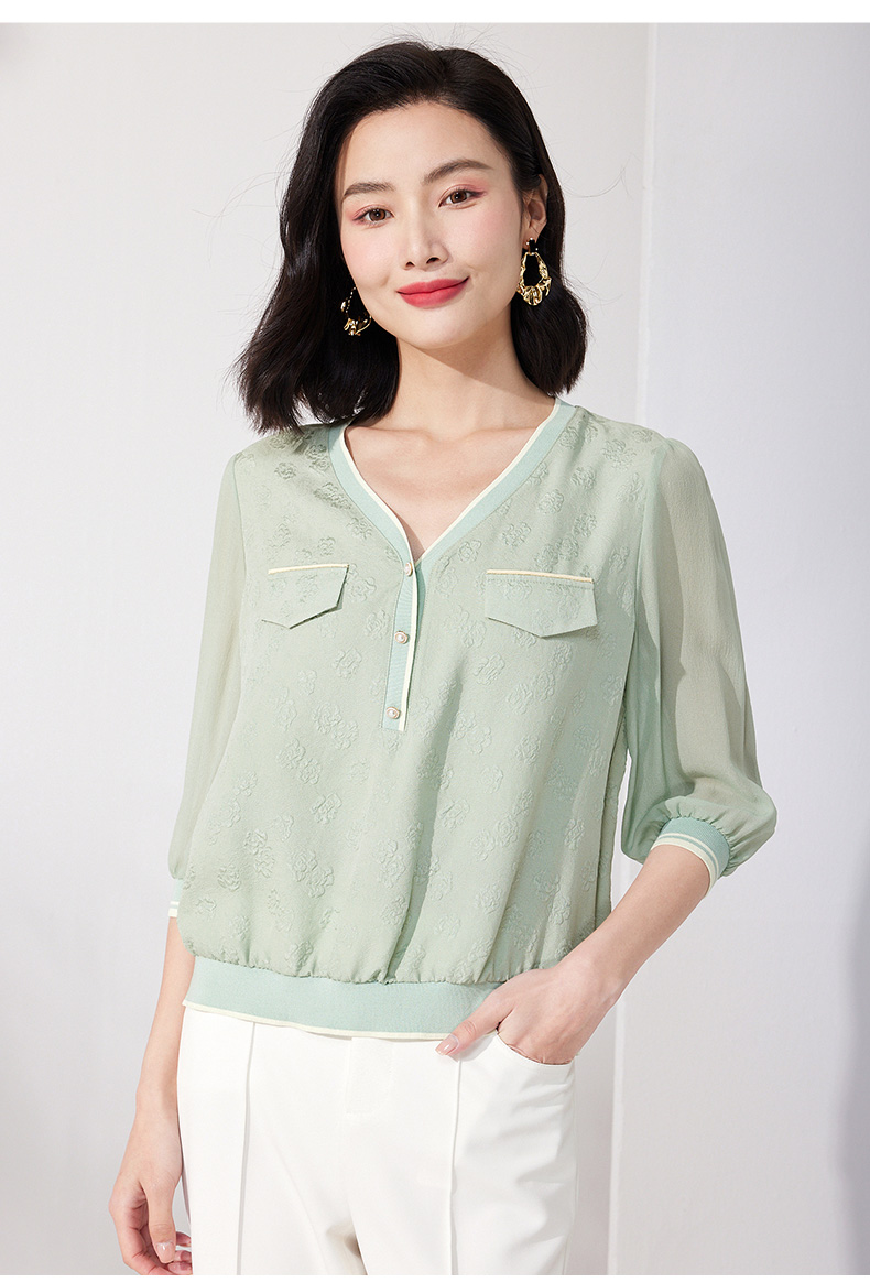 乔万尼真丝上衣18mm桑蚕丝提花设计感减龄显瘦ET2C266